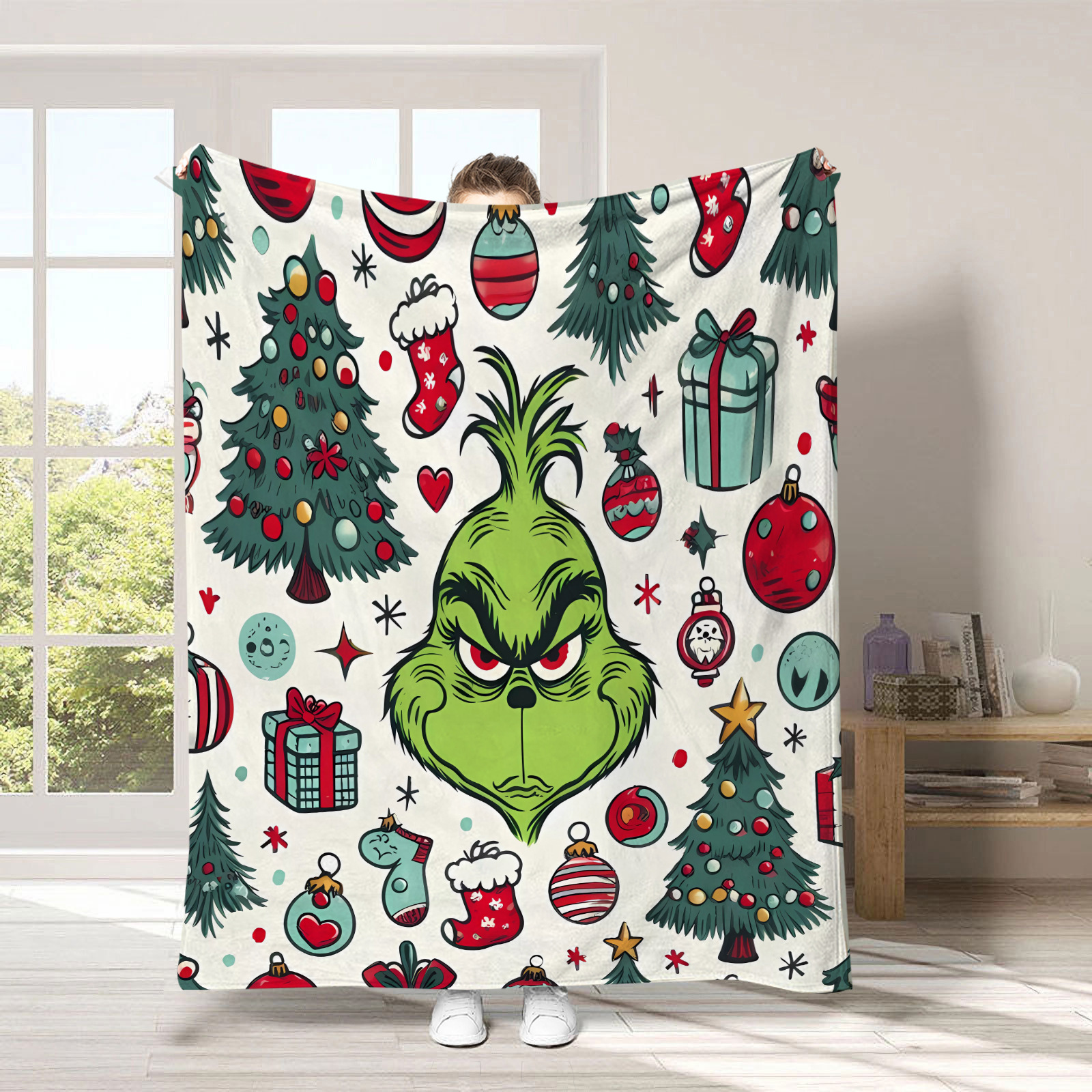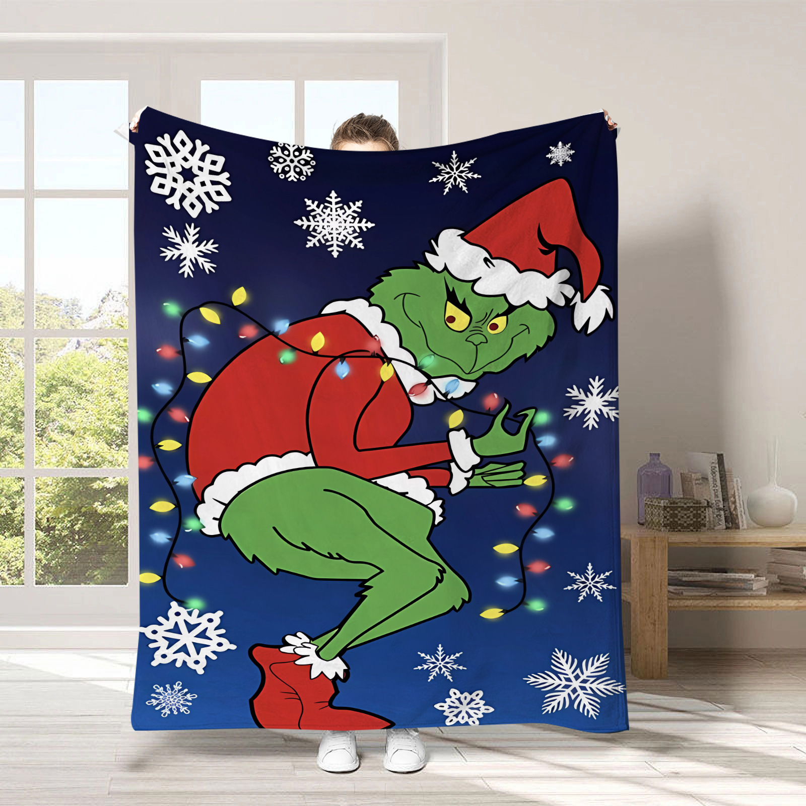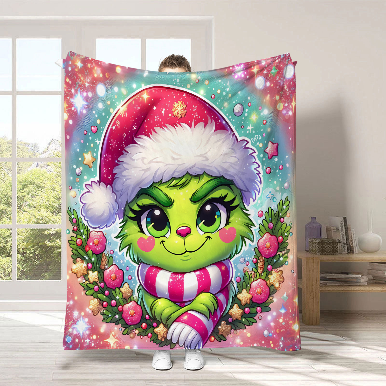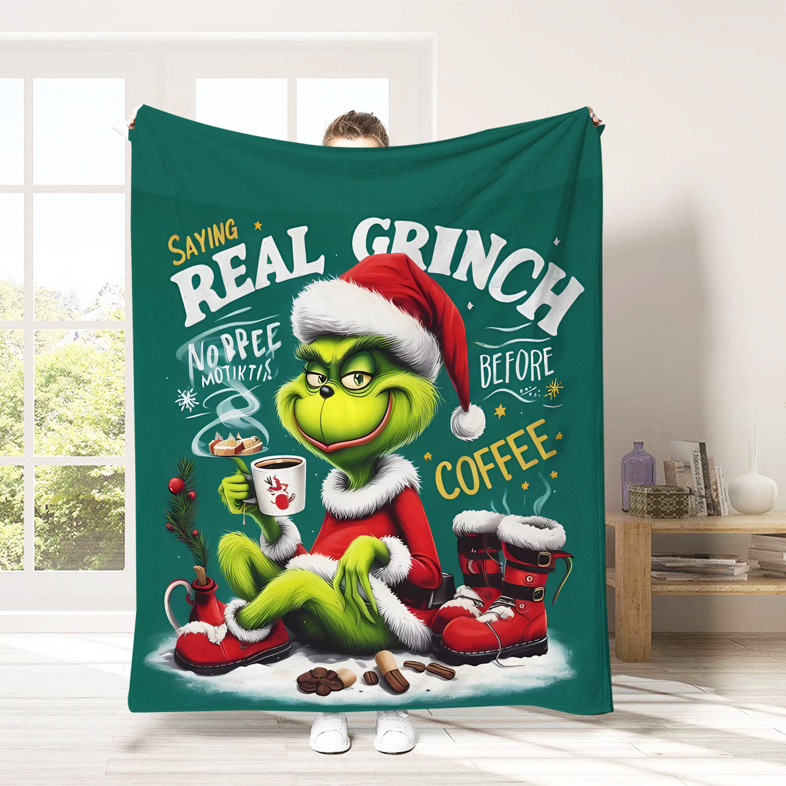 대외 무역 국경 디지털 인쇄 담요 크리스마스 녹색 머리 괴물 그라인치 플란넬 에어컨 점심 식사 담요스토어 가기