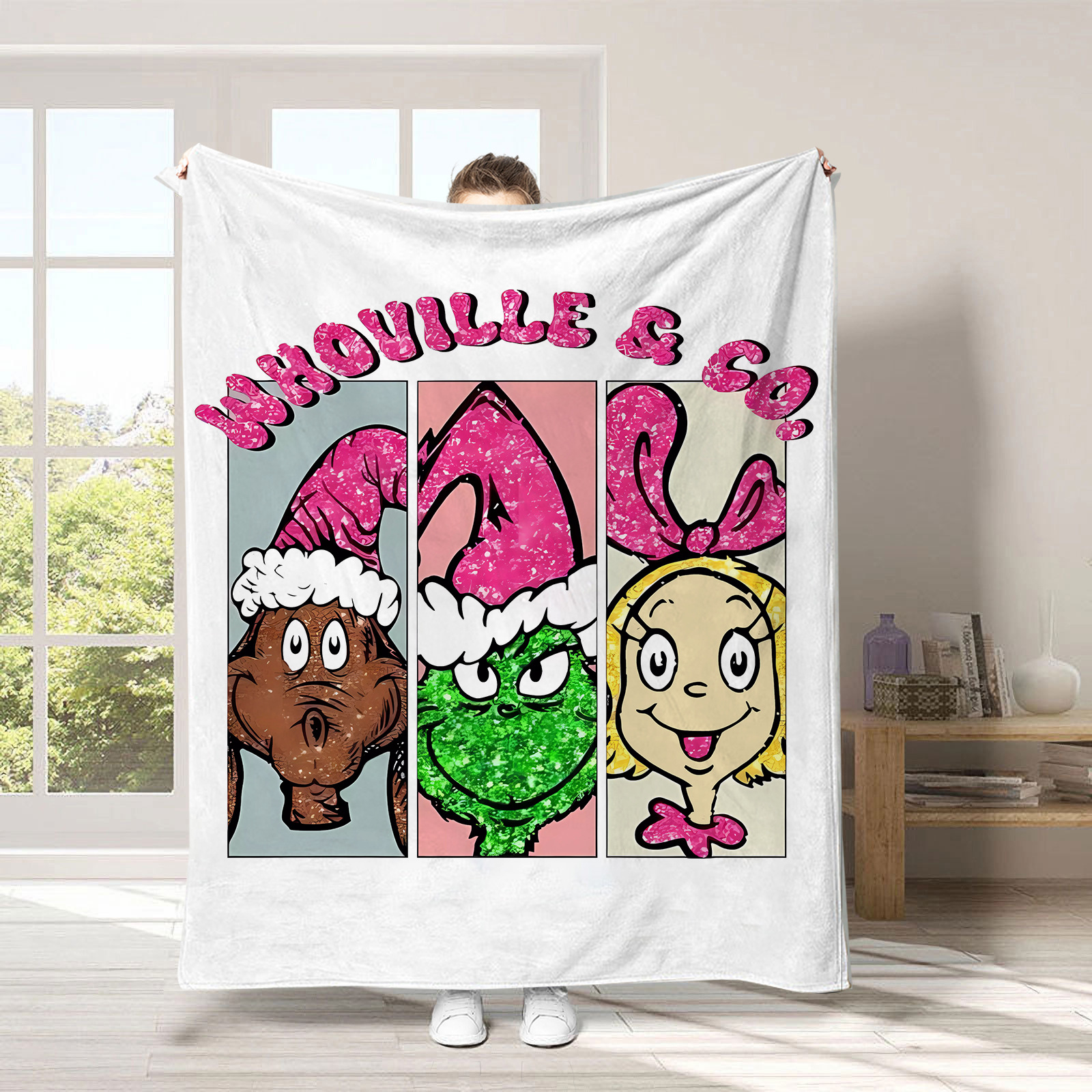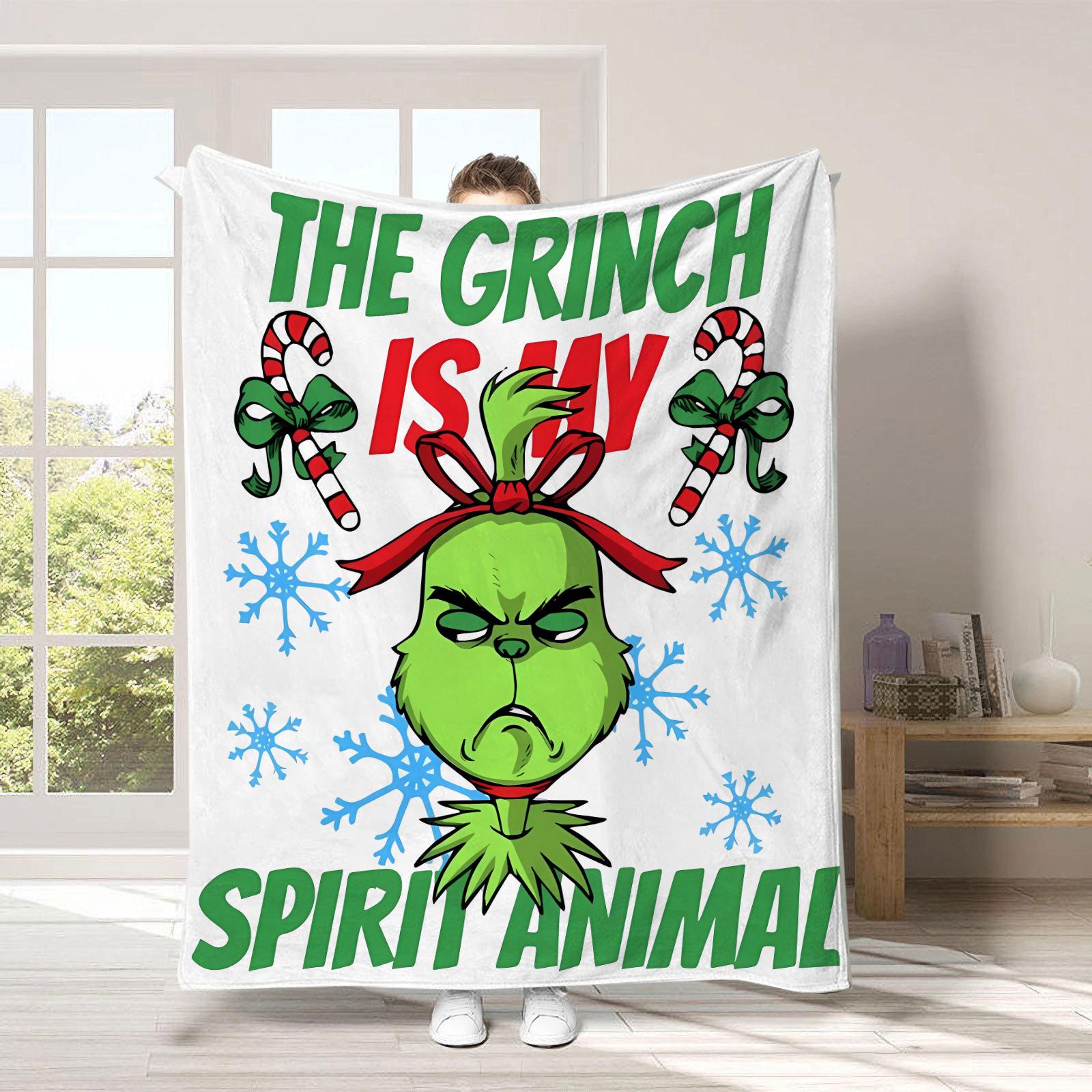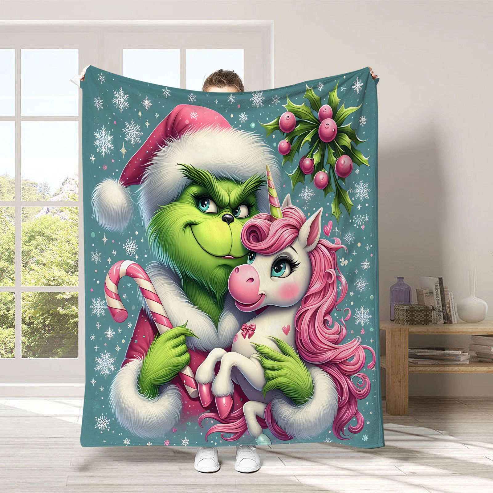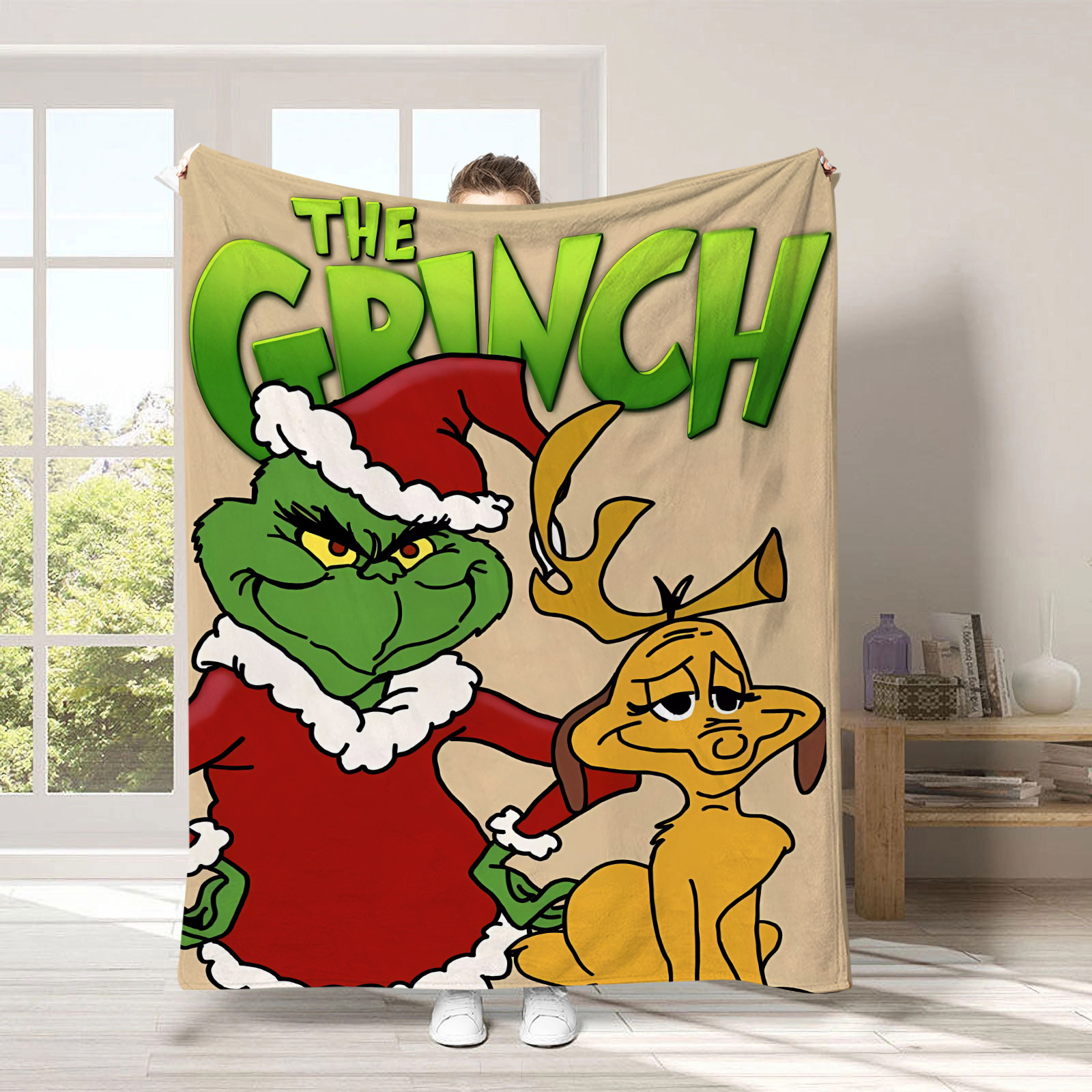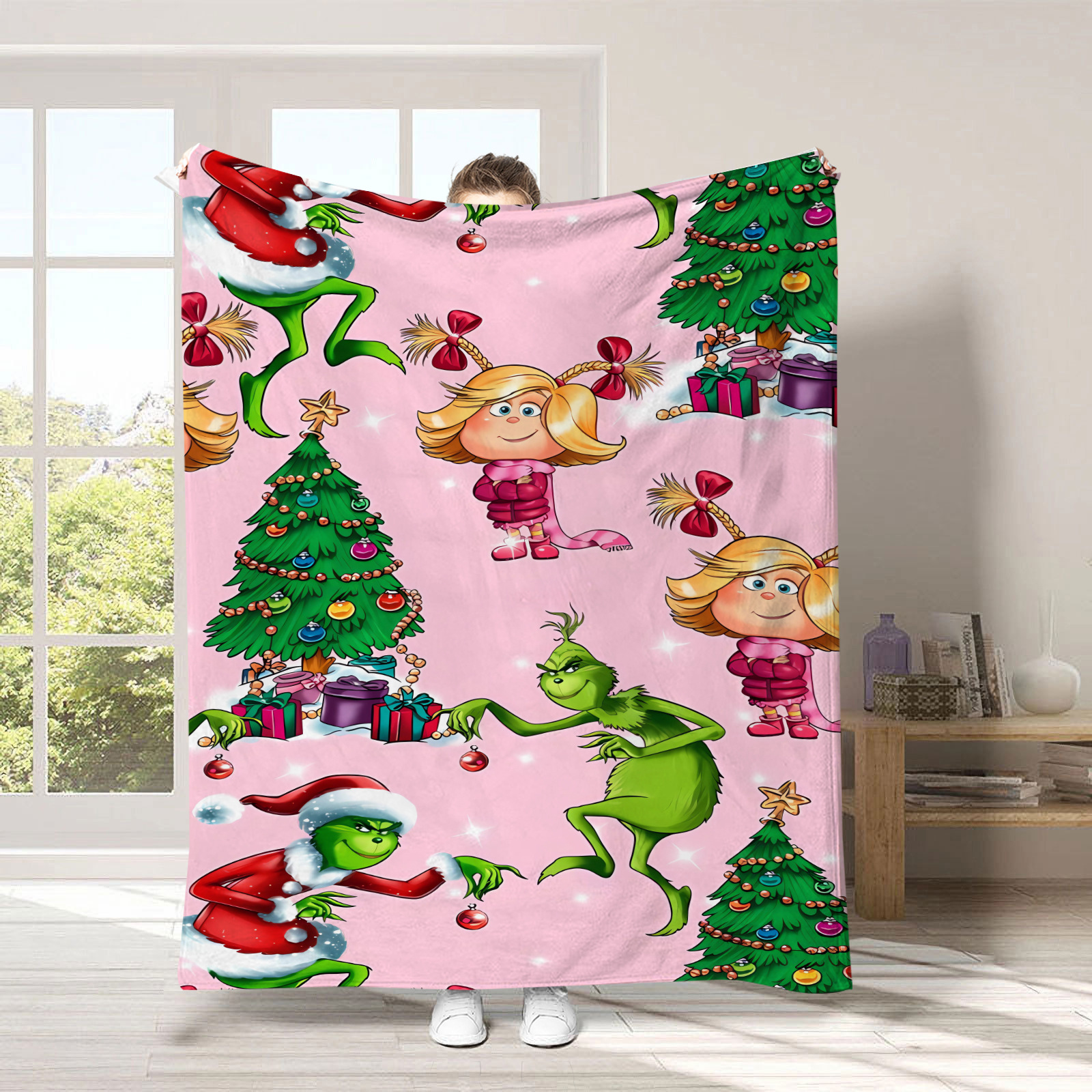 대외 무역 국경 디지털 인쇄 담요 크리스마스 녹색 머리 괴물 그라인치 플란넬 에어컨 점심 식사 담요스토어 가기