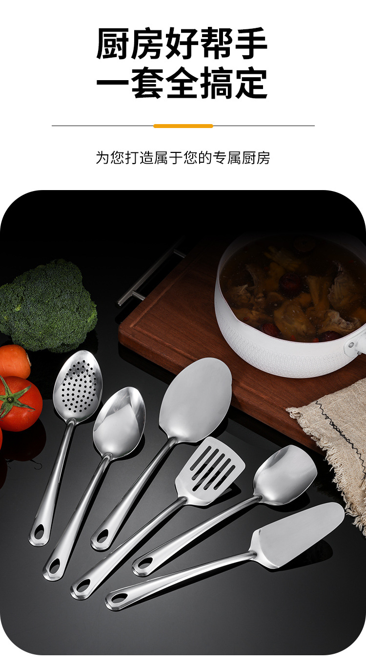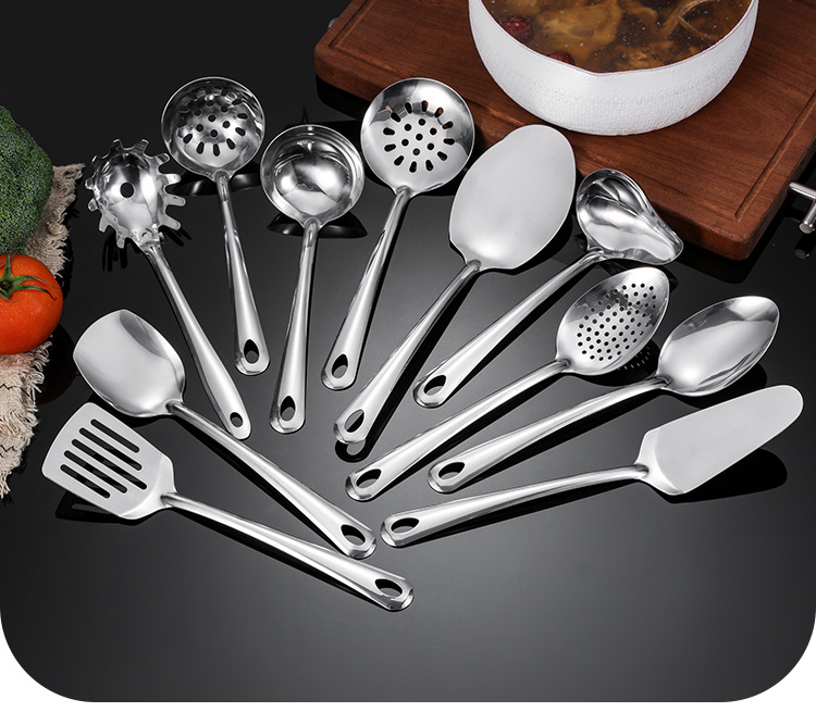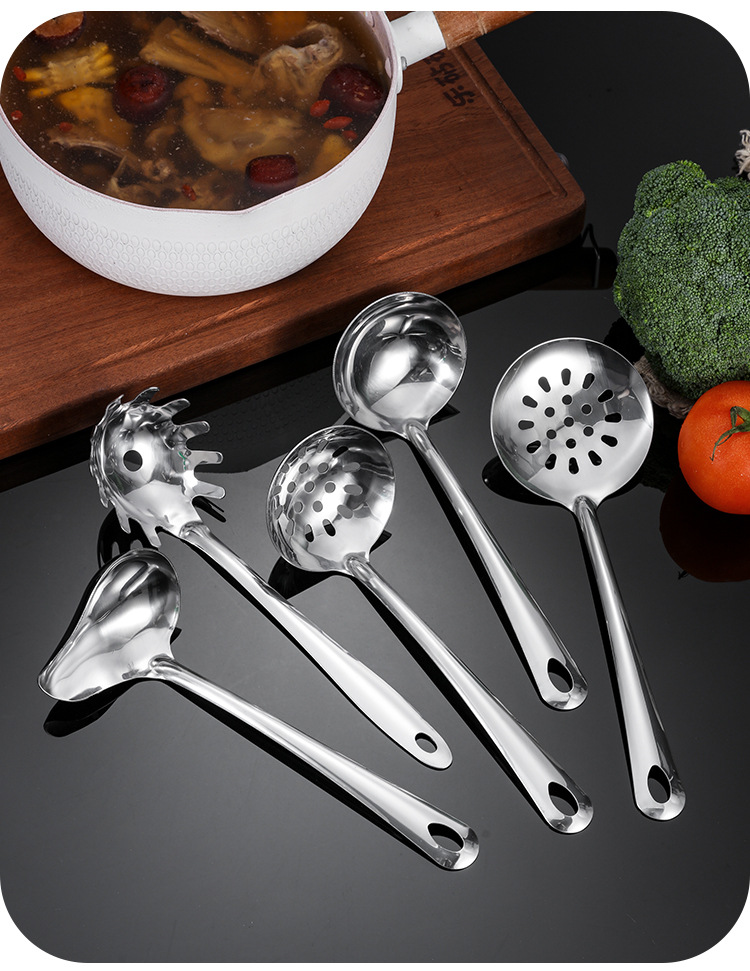 스테인레스 스틸 주걱 주방 용품 세트 가정용 요리 볶음 주걱 냄비 수프 숟가락 소쿠리 레스토랑 서빙 숟가락 파우더 스테이크