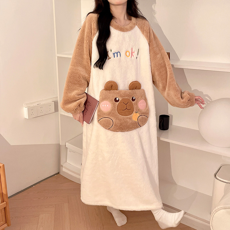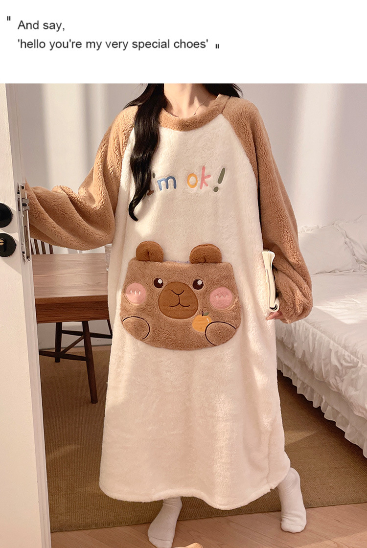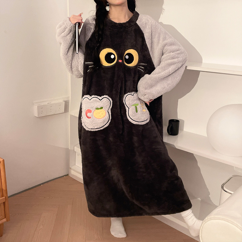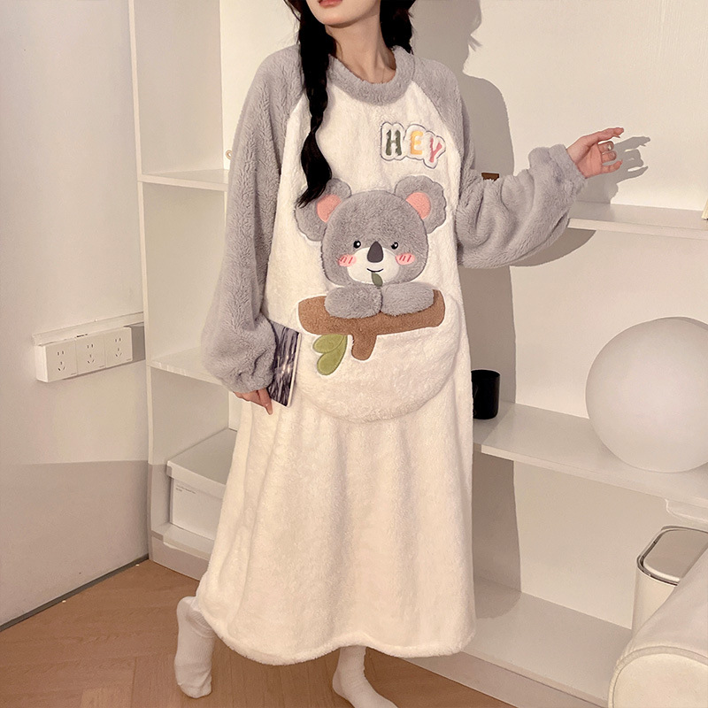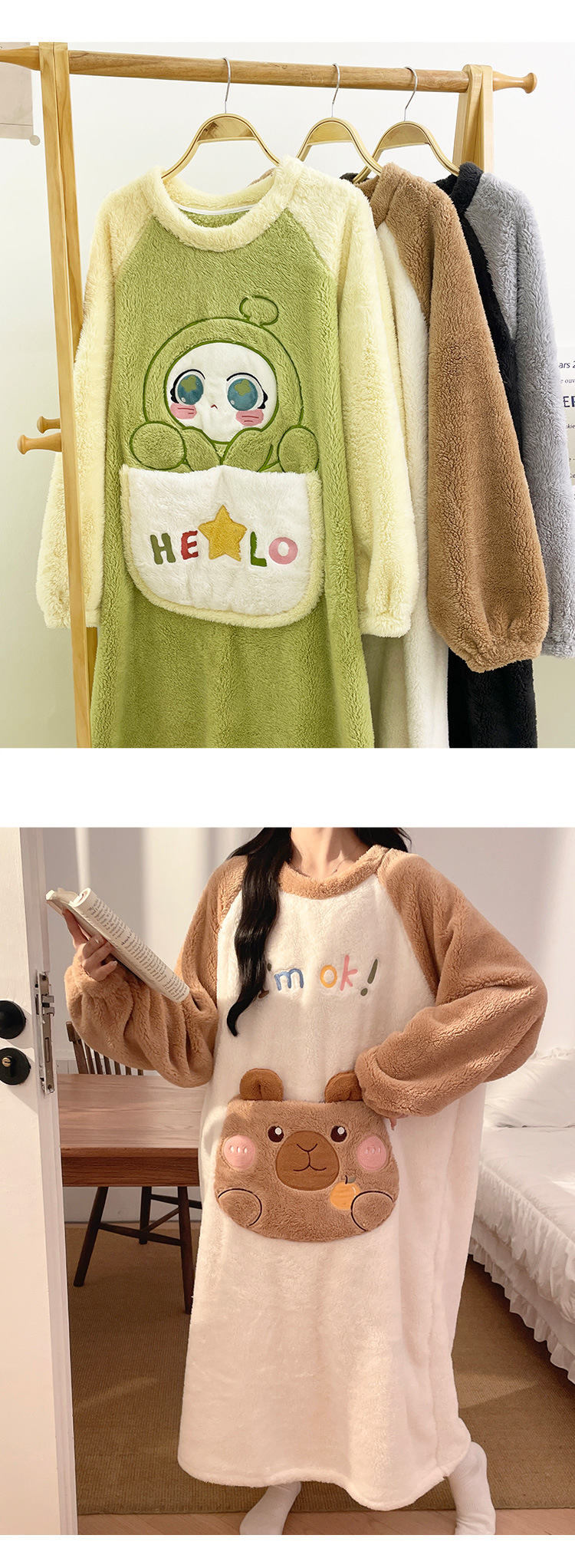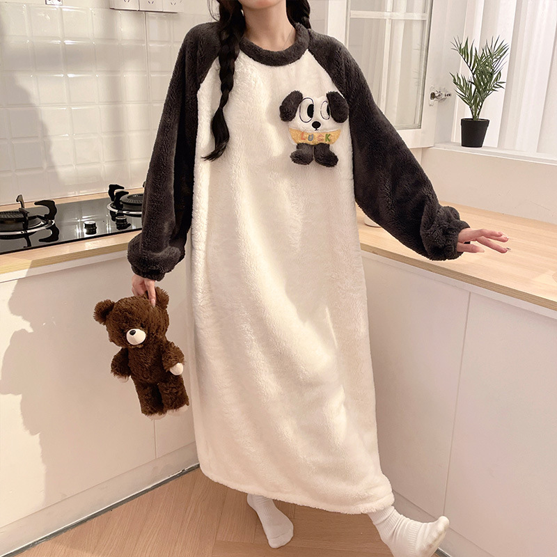 산호 벨벳 파자마 여성의 겨울 잠옷 긴 만화 달콤한 학생 봉제 플러스 뚱뚱한 플러스 사이즈 200kg 치마스토어 가기