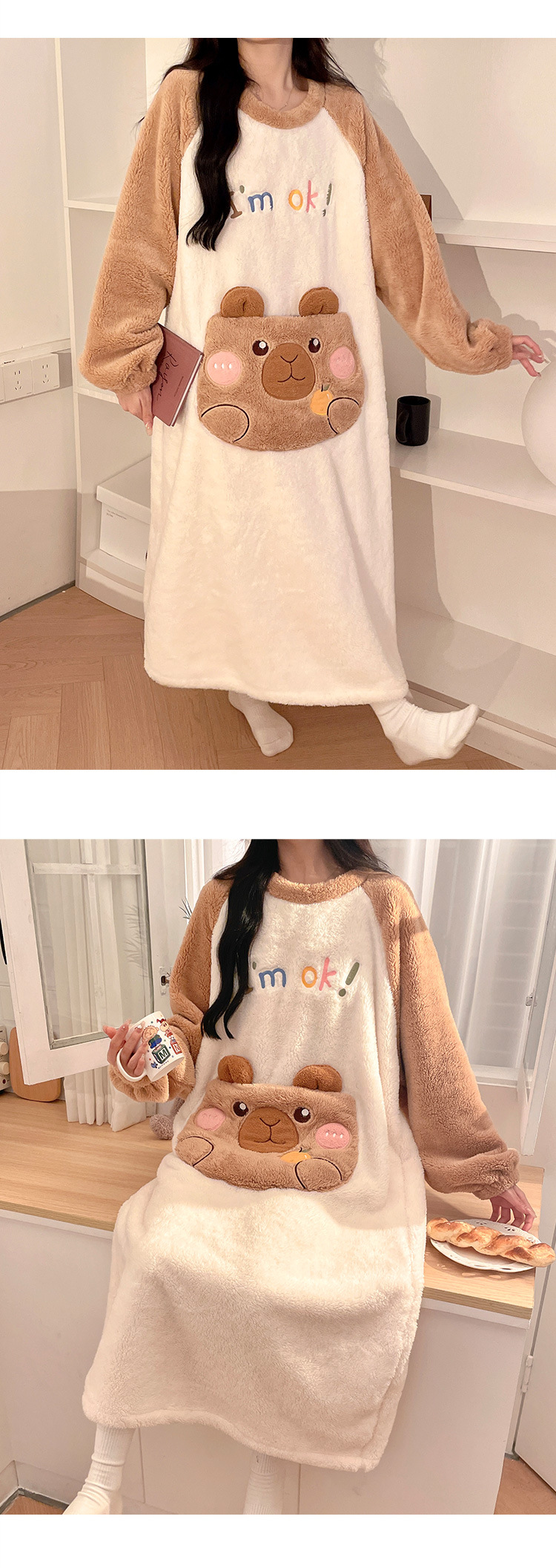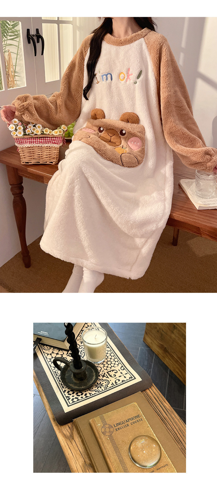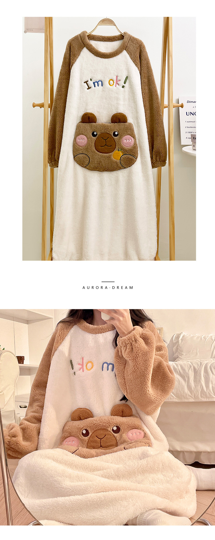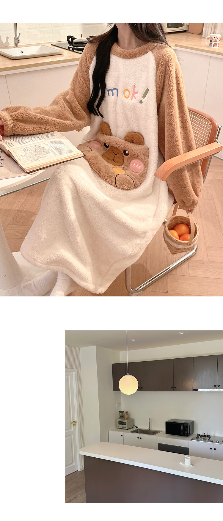 산호 벨벳 파자마 여성의 겨울 잠옷 긴 만화 달콤한 학생 봉제 플러스 뚱뚱한 플러스 사이즈 200kg 치마스토어 가기