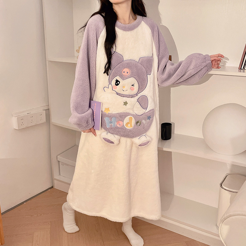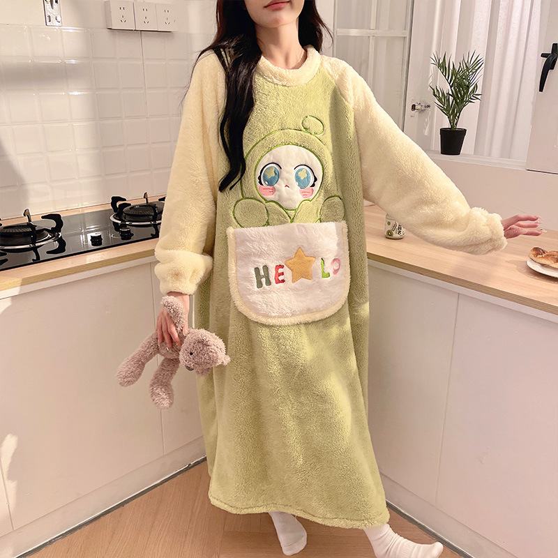 산호 벨벳 파자마 여성의 겨울 잠옷 긴 만화 달콤한 학생 봉제 플러스 뚱뚱한 플러스 사이즈 200kg 치마