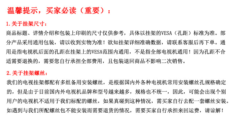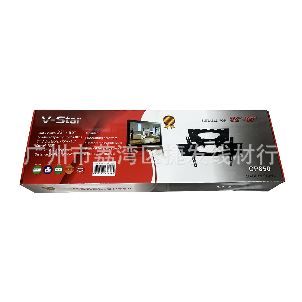 适用尺寸:32"-85"(具体看电视背面安装孔距而定)