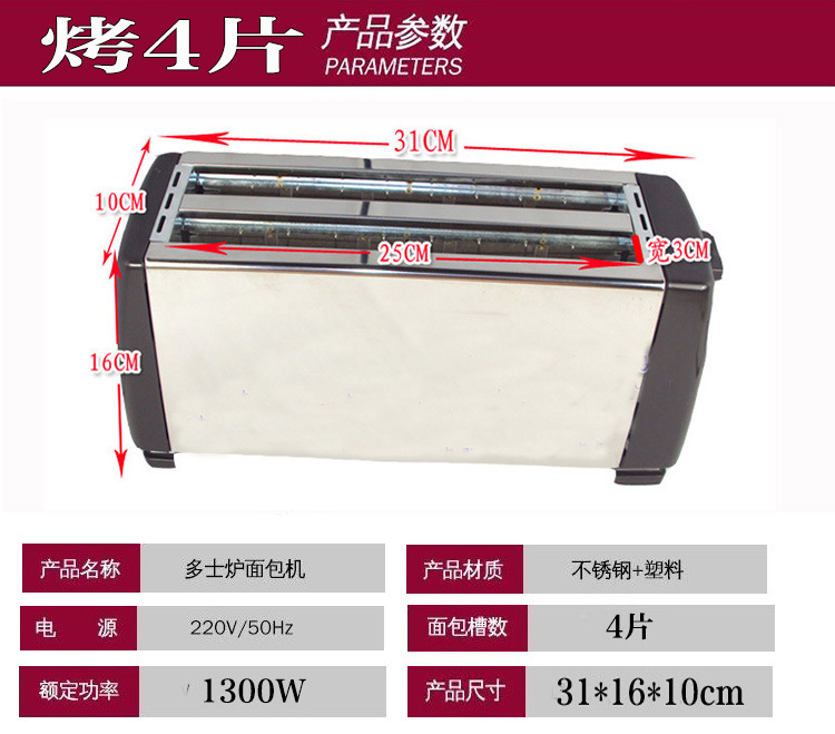 4 조각 토스터 토스터 토스터 토스트 드라이버 가정용 자동 난방 다기능 샌드위치 아침 식사 기계