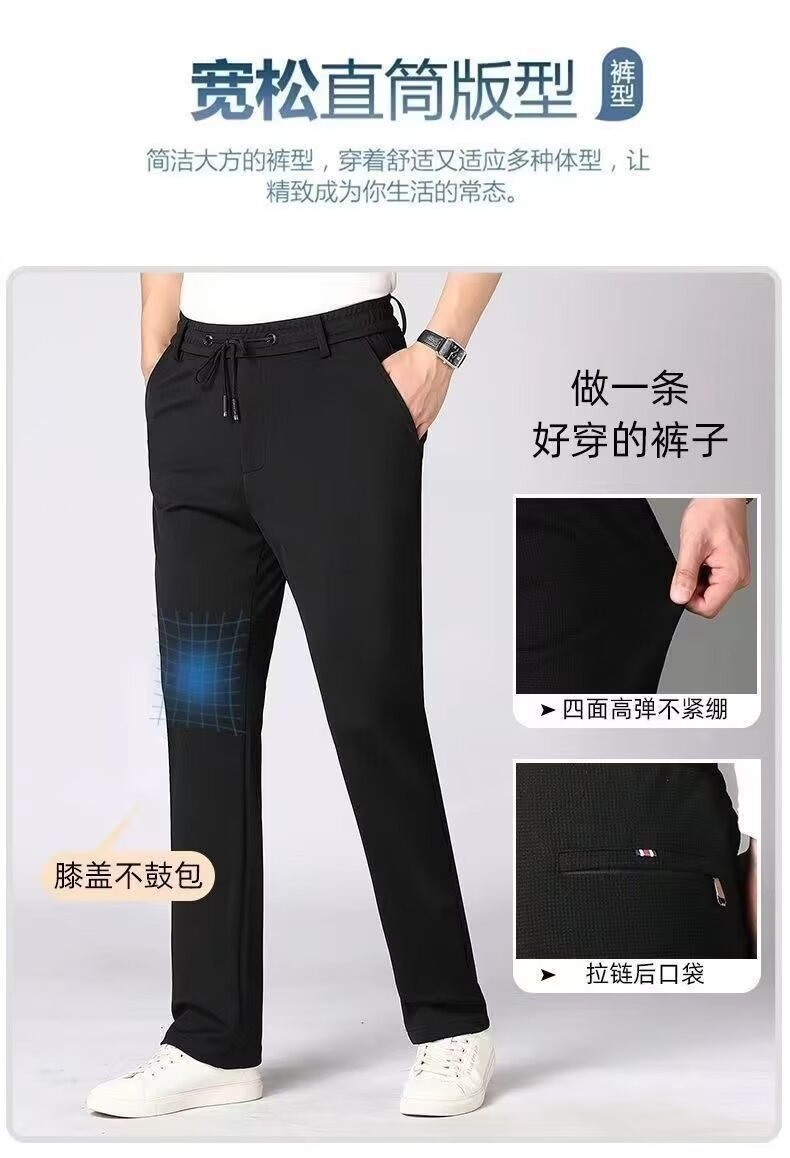 가을과 겨울 두꺼운 남성용 탄성 허리 캐주얼 바지 스트레치 스포츠 바지 중년 스트레이트 루즈 플러스 대형 남성용 바지스토어 가기