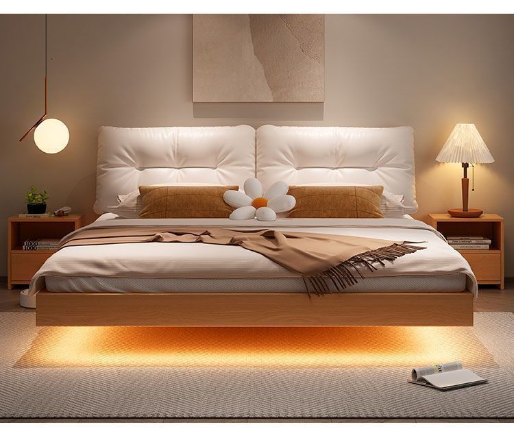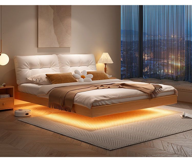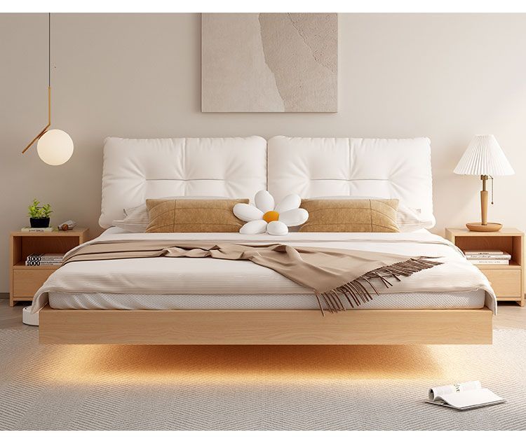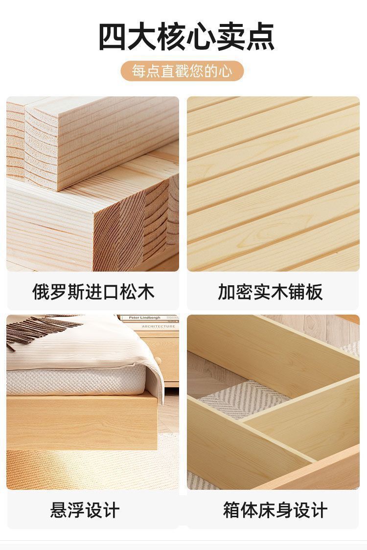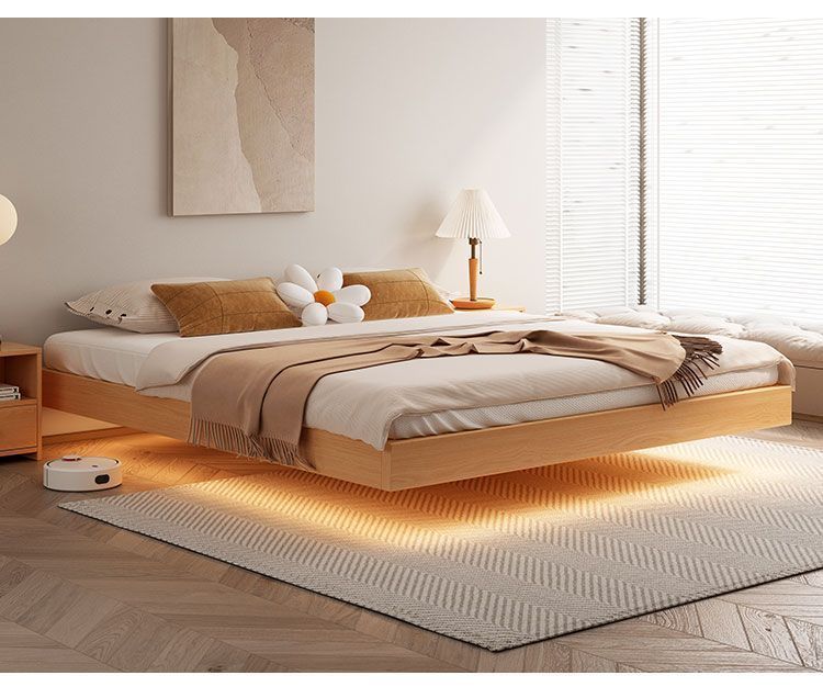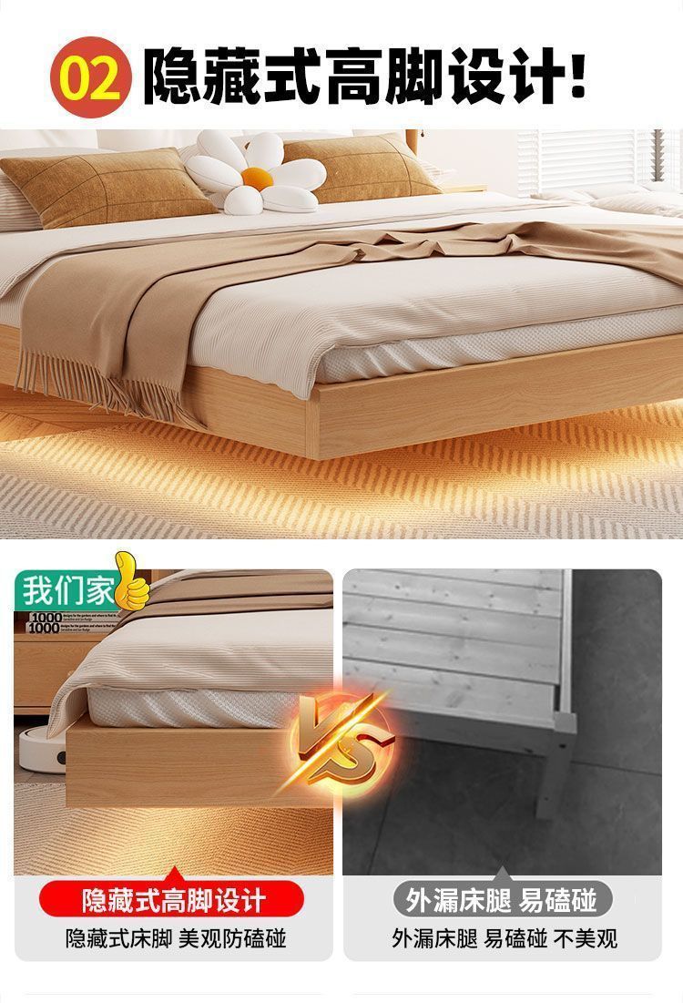 서스펜션 침대 인터넷 유명한 간단한 노르딕 솔리드 우드 침대 보관 2024 새로운 현대 빅 베드 라이트 럭셔리 솔리드 우드 침대