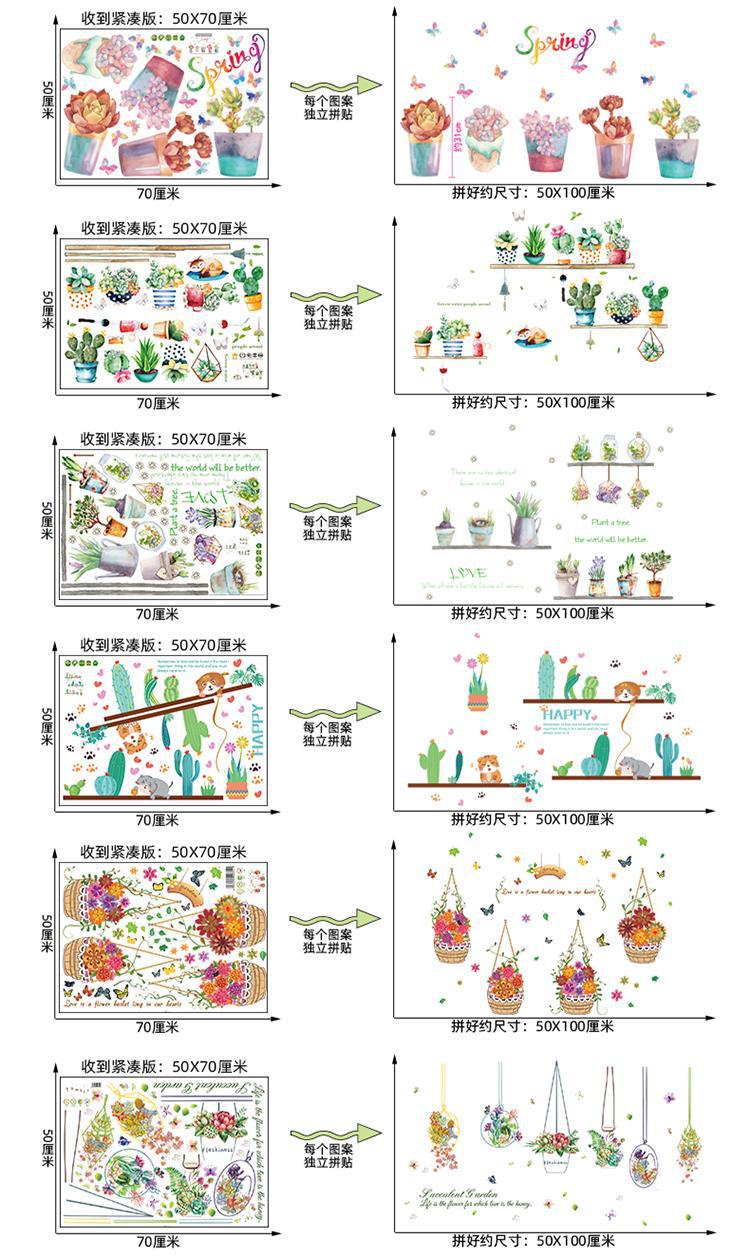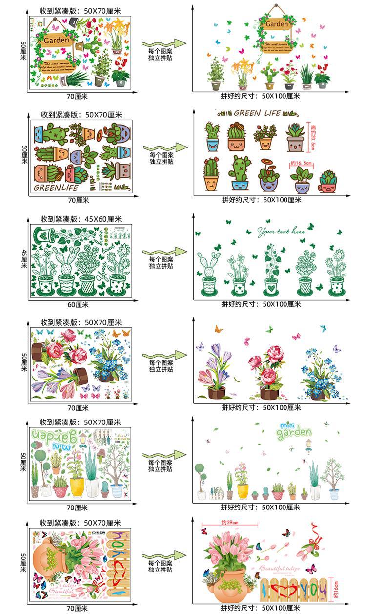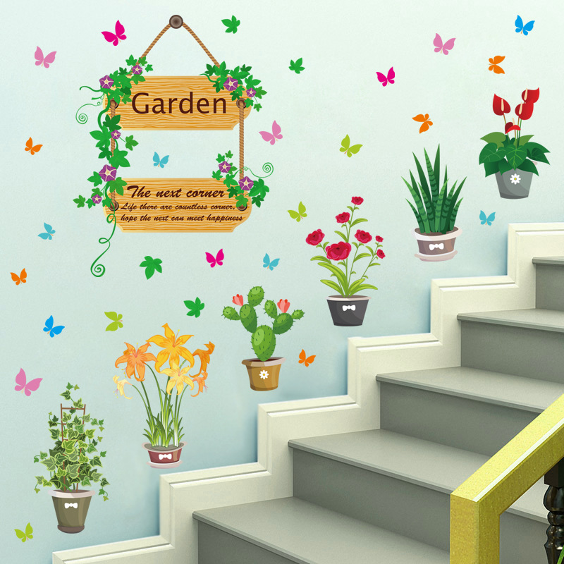 계단 장식 스티커 신선한 식물 화분에 창조적 인 유치원 학교 복도 벽 자체 접착 방수 벽 스티커스토어 가기