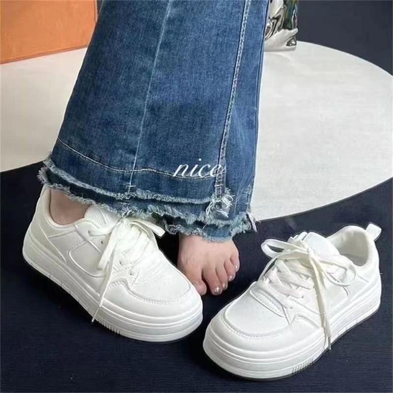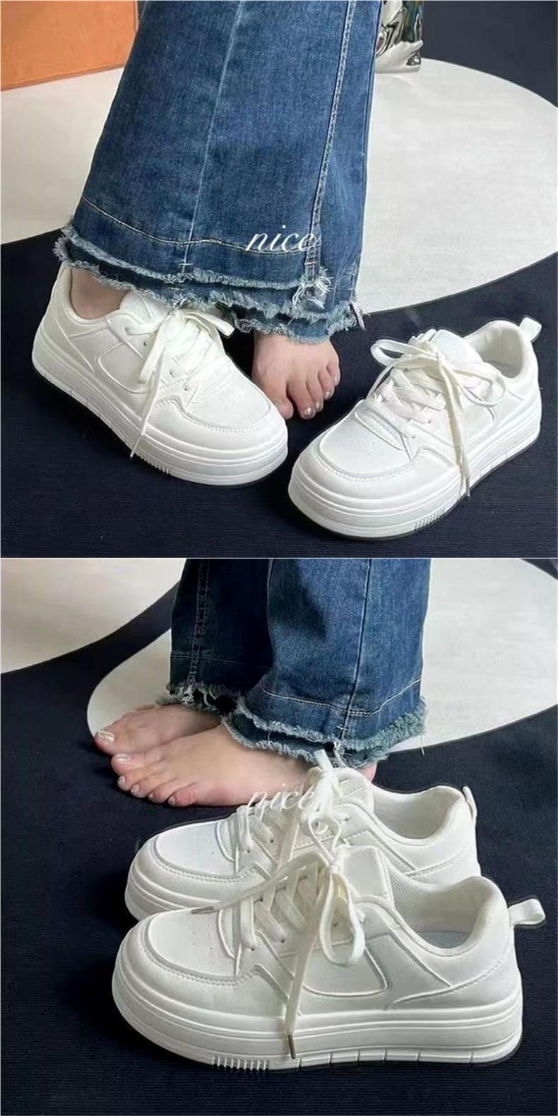 화이트 슈즈 여성의 2024 새로운 가을과 겨울 통기성 올 매치 슈즈 두꺼운 단독 증가 화이트 플랫 캐주얼 스포츠 스니커즈스토어 가기