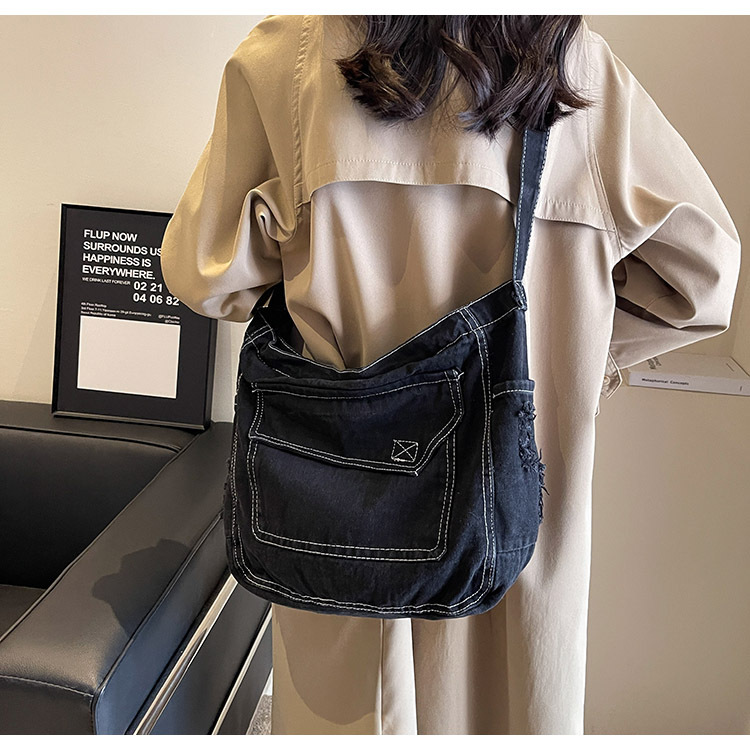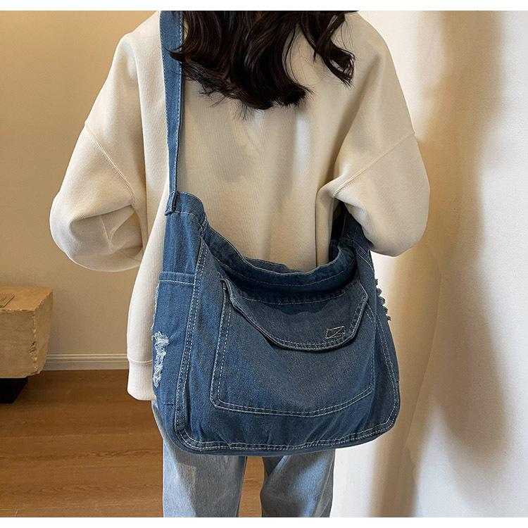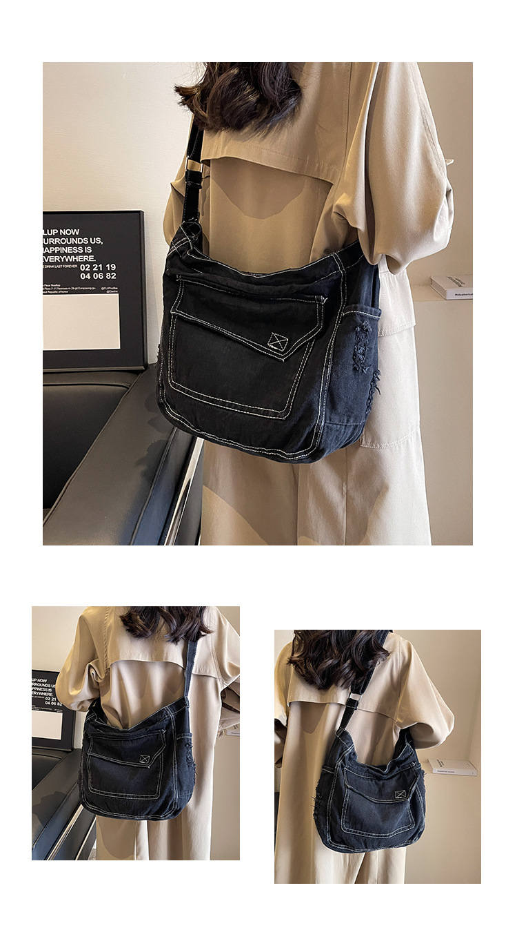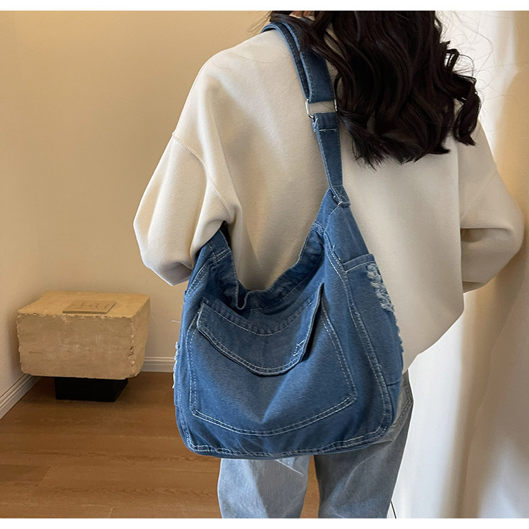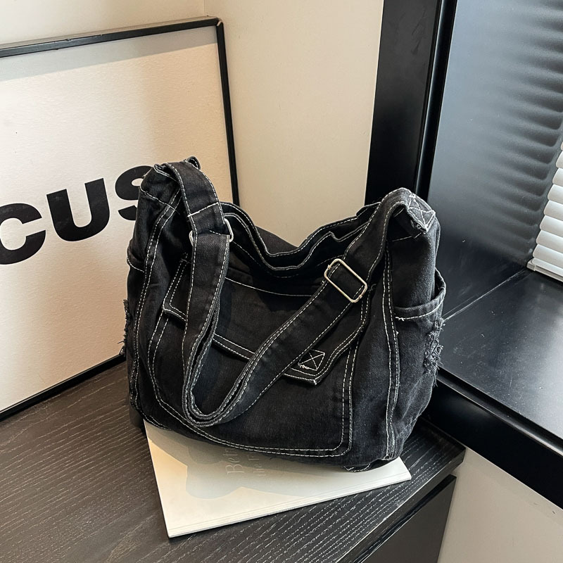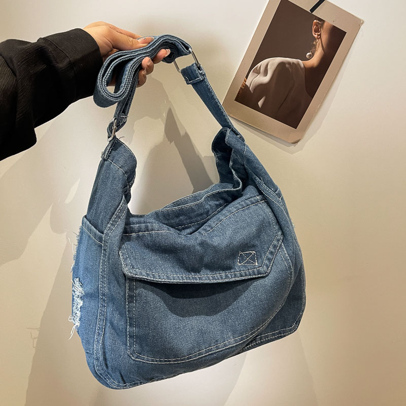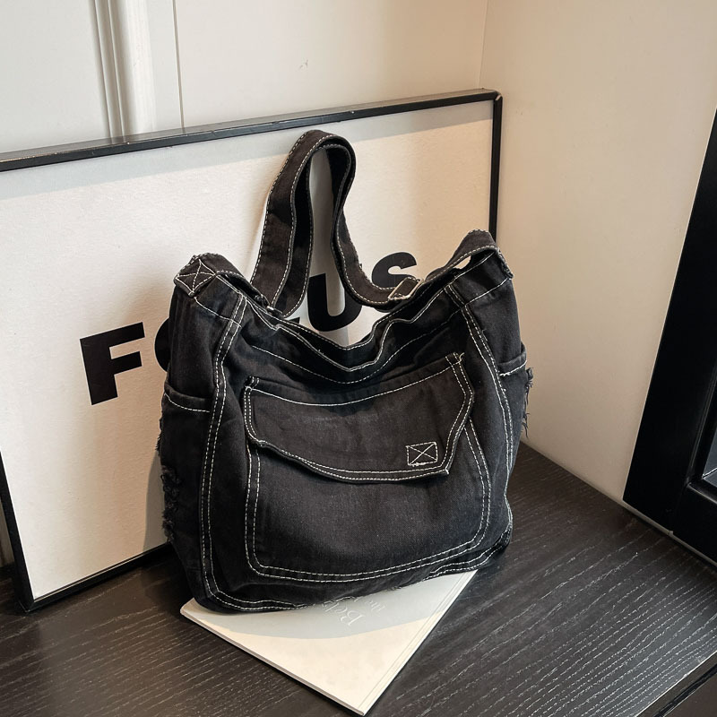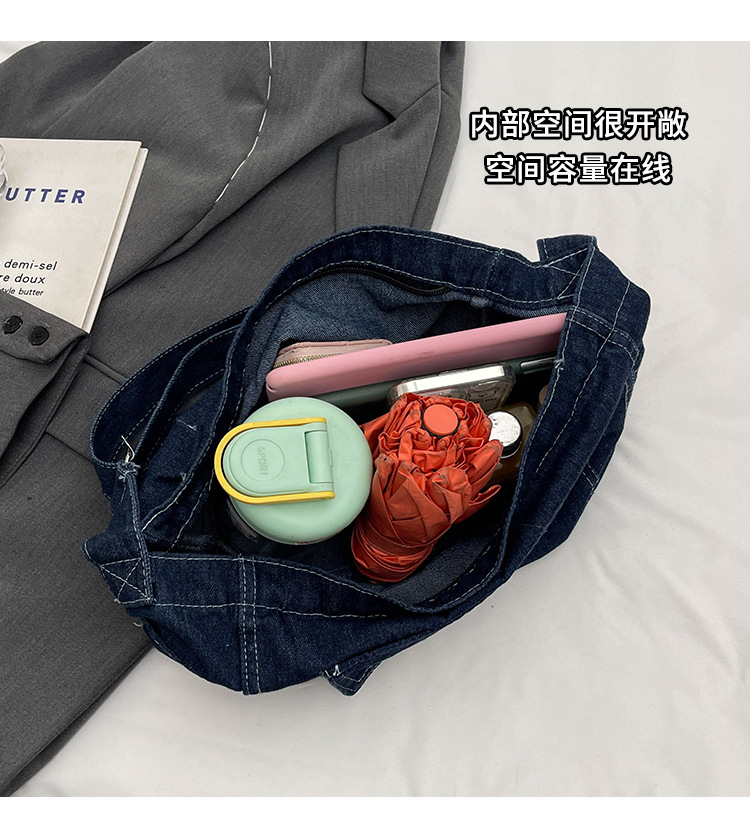 데님 가방 여성의 가을과 겨울 새로운 복고풍 문학 스타일 토트 백 대학생을위한 모든 경기 통근 어깨 크로스 바디 백스토어 가기