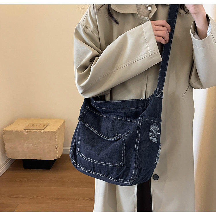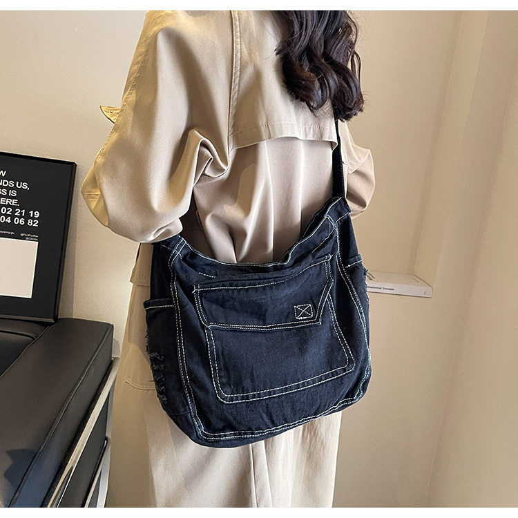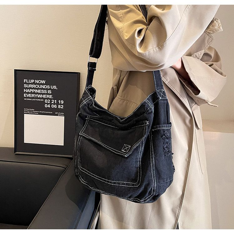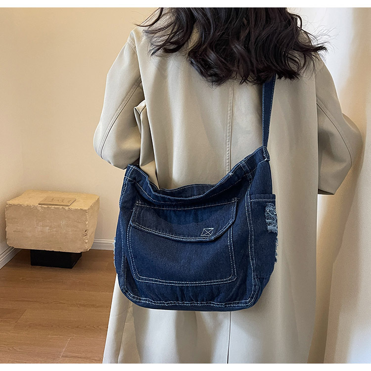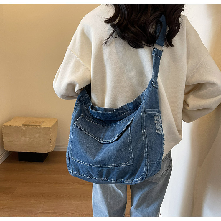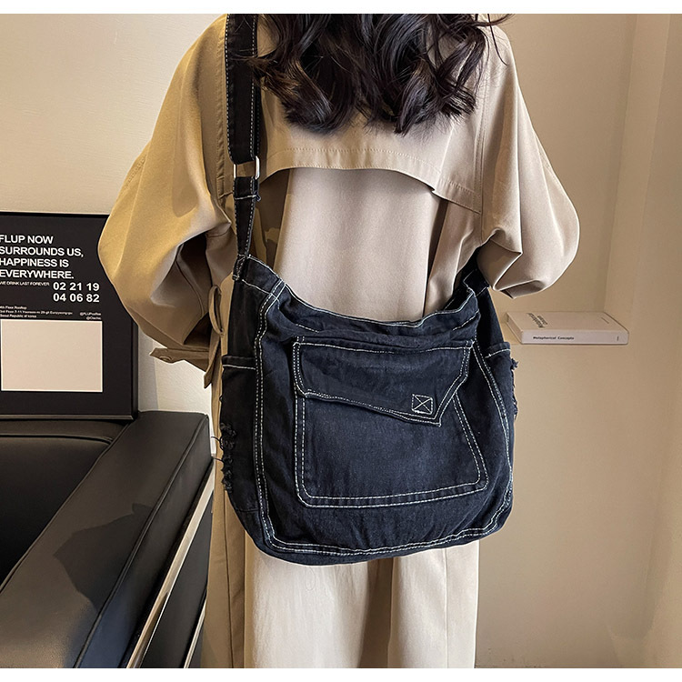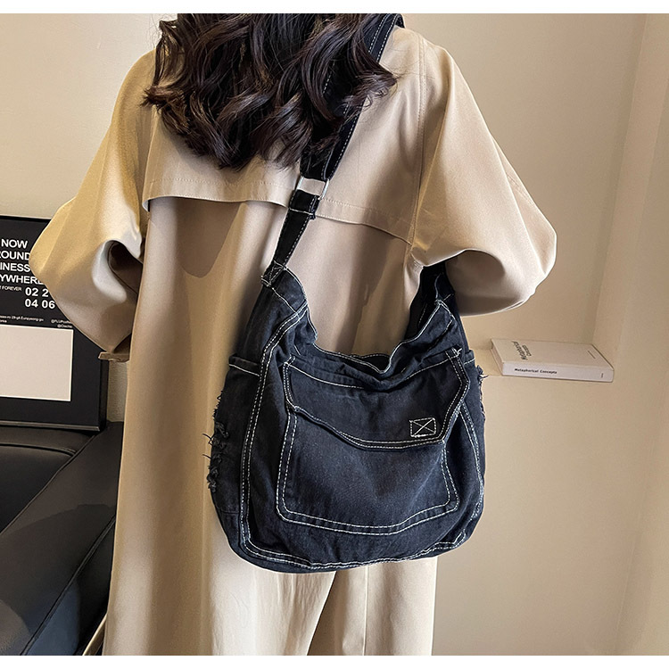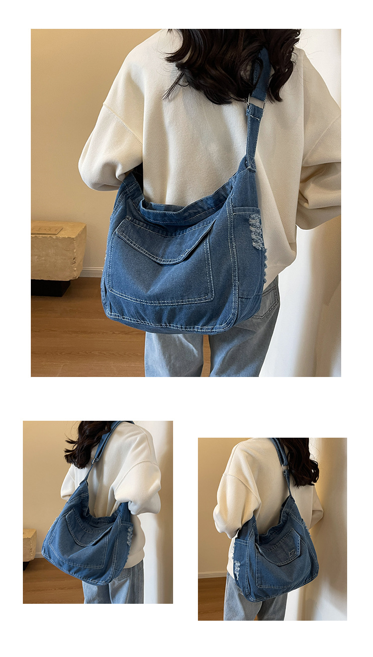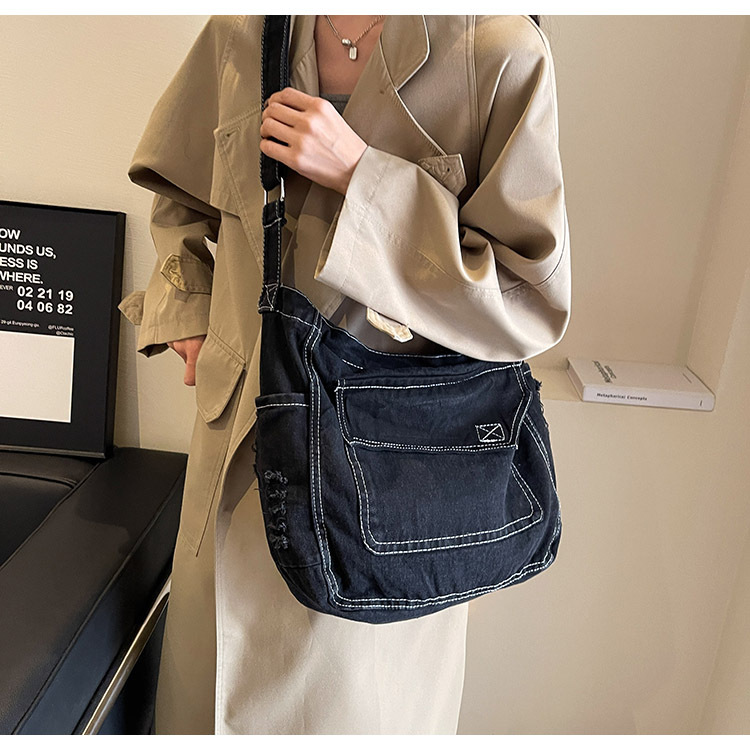 데님 가방 여성의 가을과 겨울 새로운 복고풍 문학 스타일 토트 백 대학생을위한 모든 경기 통근 어깨 크로스 바디 백스토어 가기