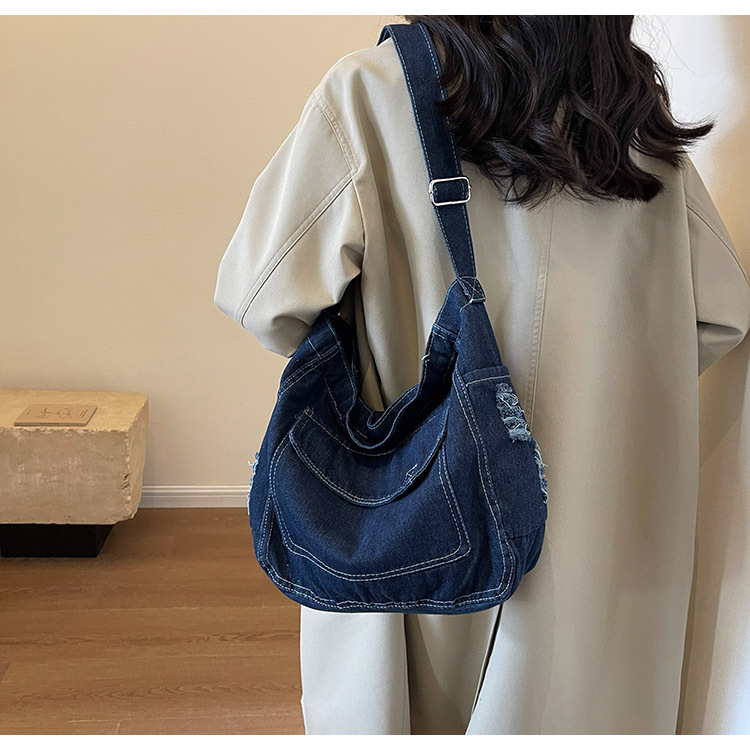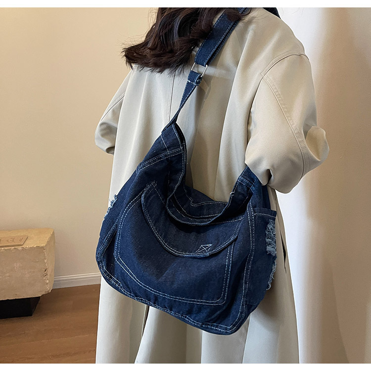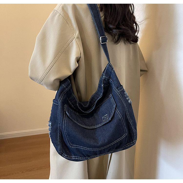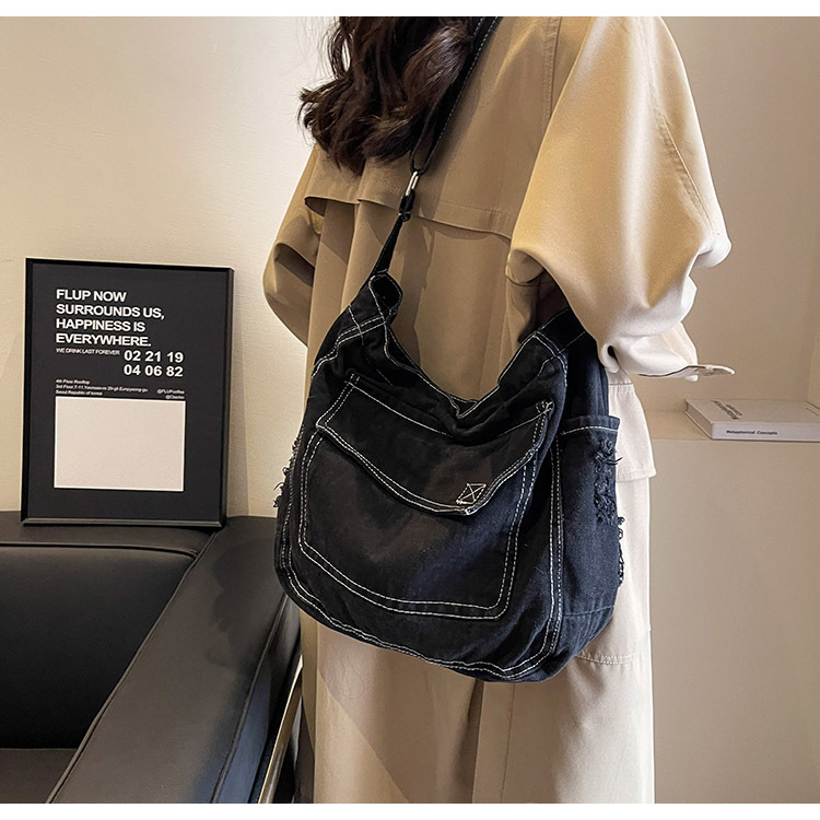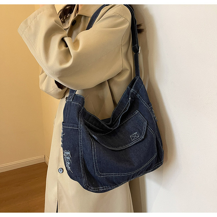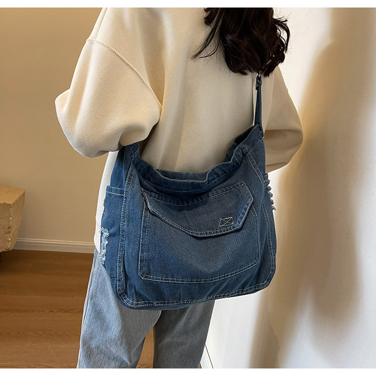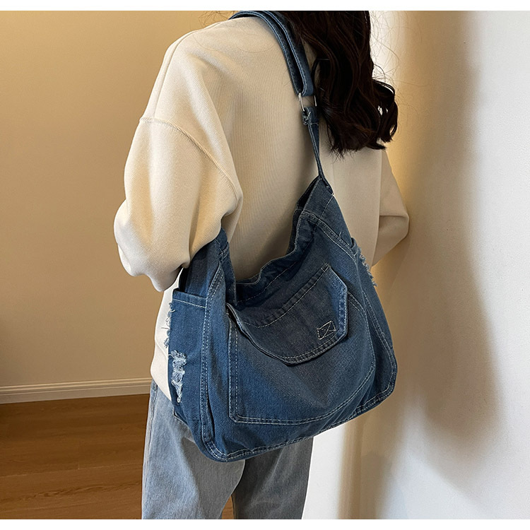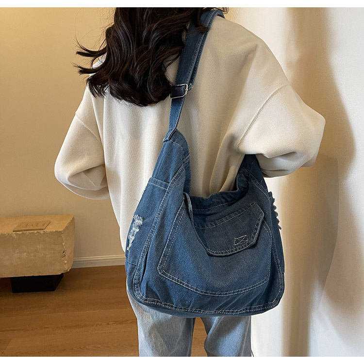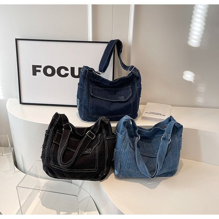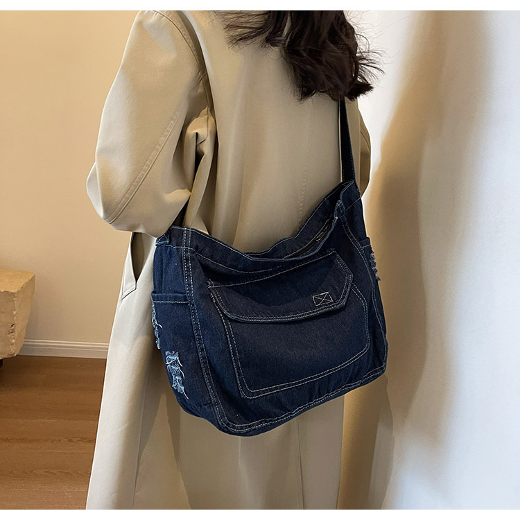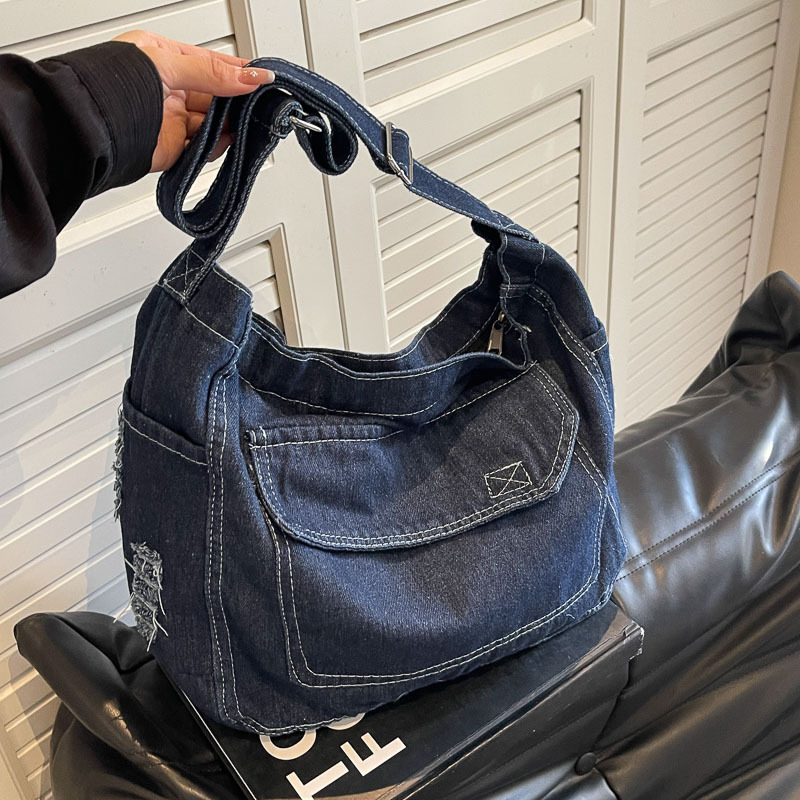 데님 가방 여성의 가을과 겨울 새로운 복고풍 문학 스타일 토트 백 대학생을위한 모든 경기 통근 어깨 크로스 바디 백