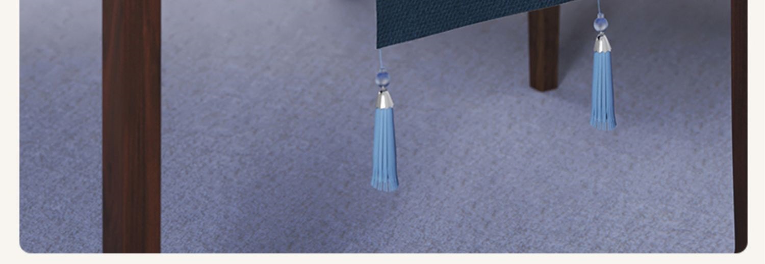 • Luo Shen Yunjin 플랫 앵글 블루 태슬 테이블 러너 코튼 및 리넨