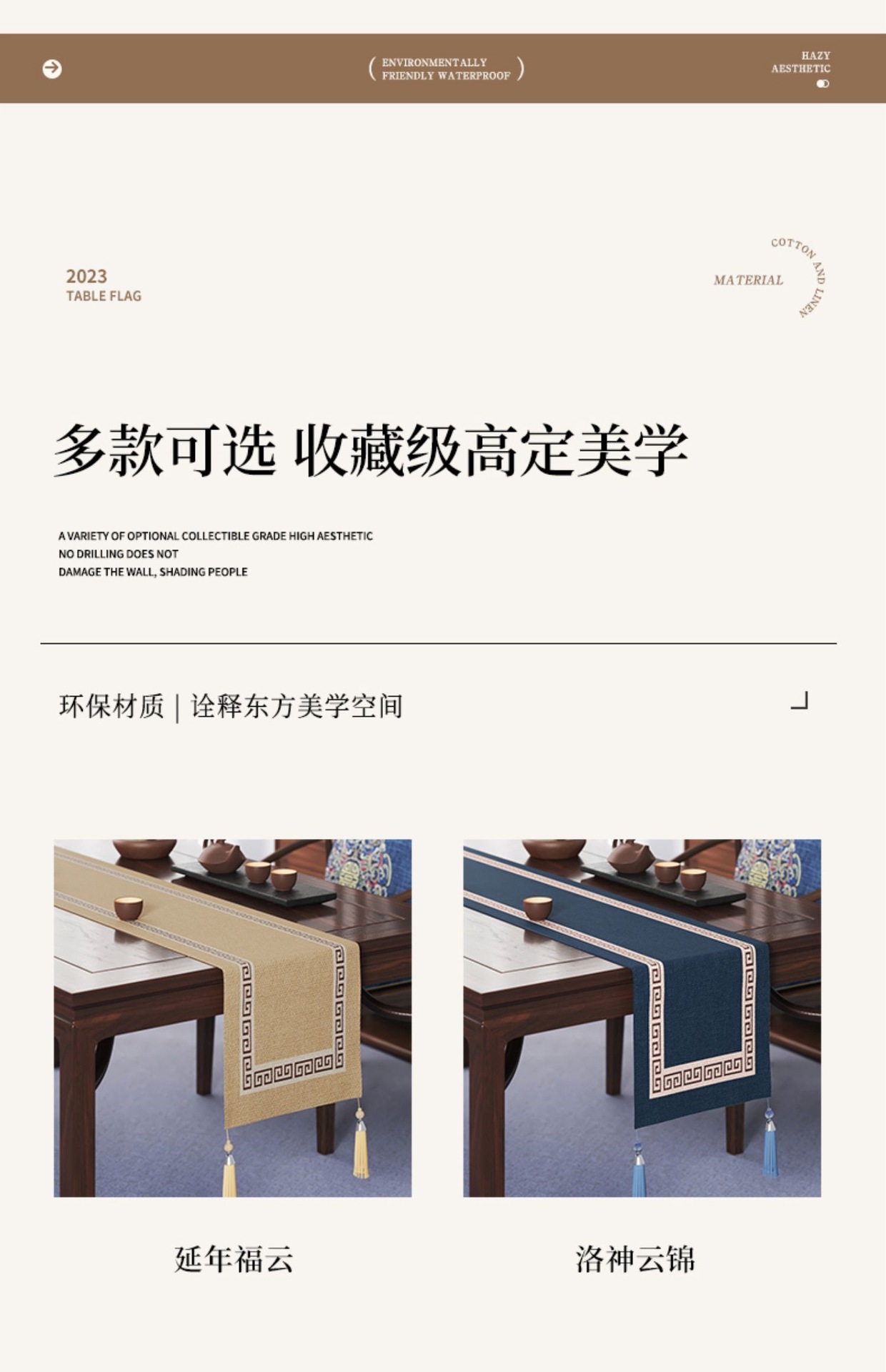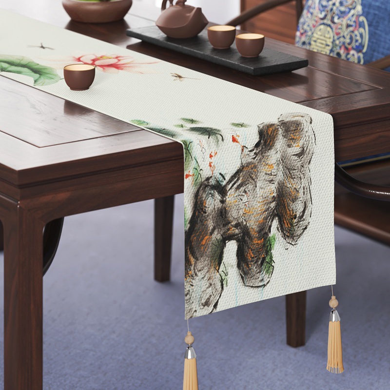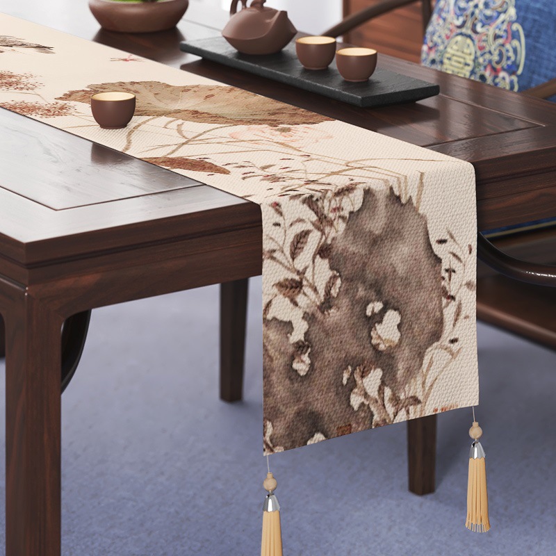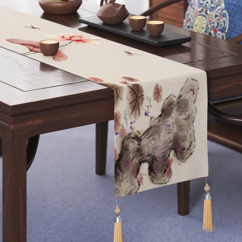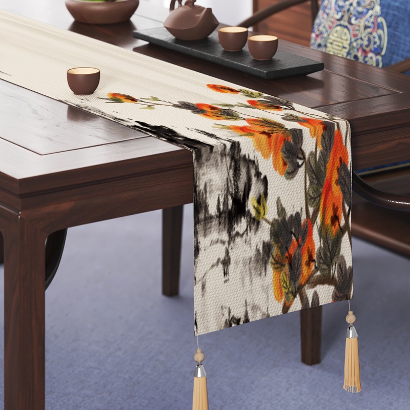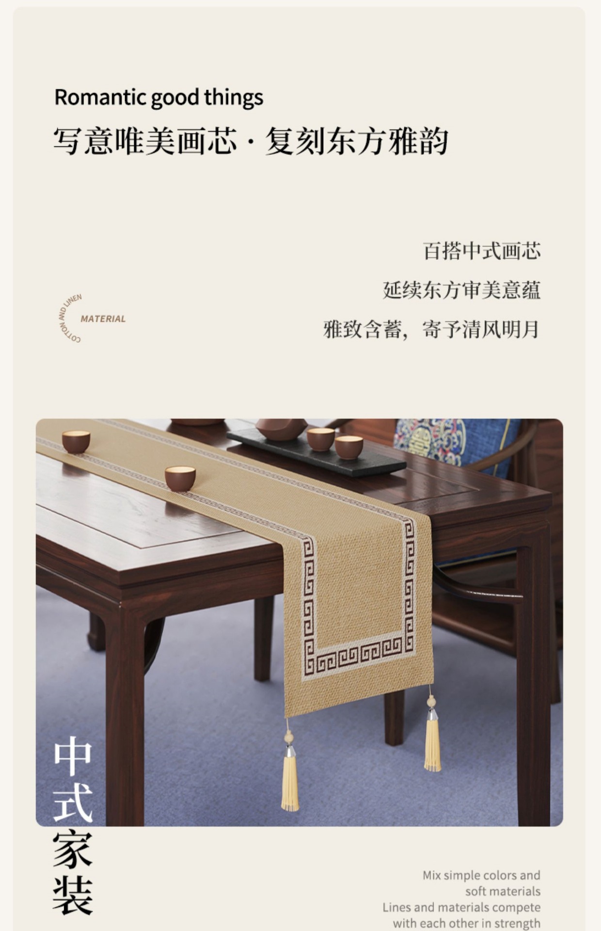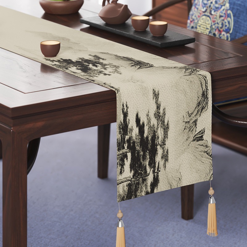 • Wanshui Qianshan 평각 쌀 술 테이블 러너 면 및 리넨