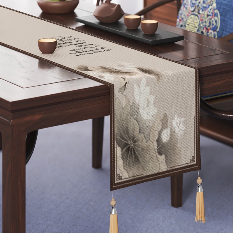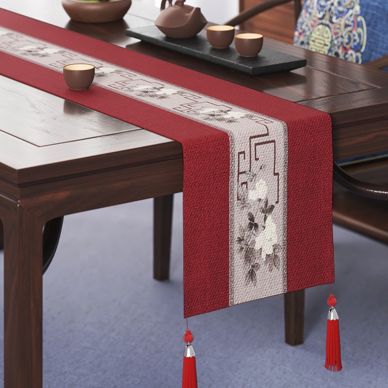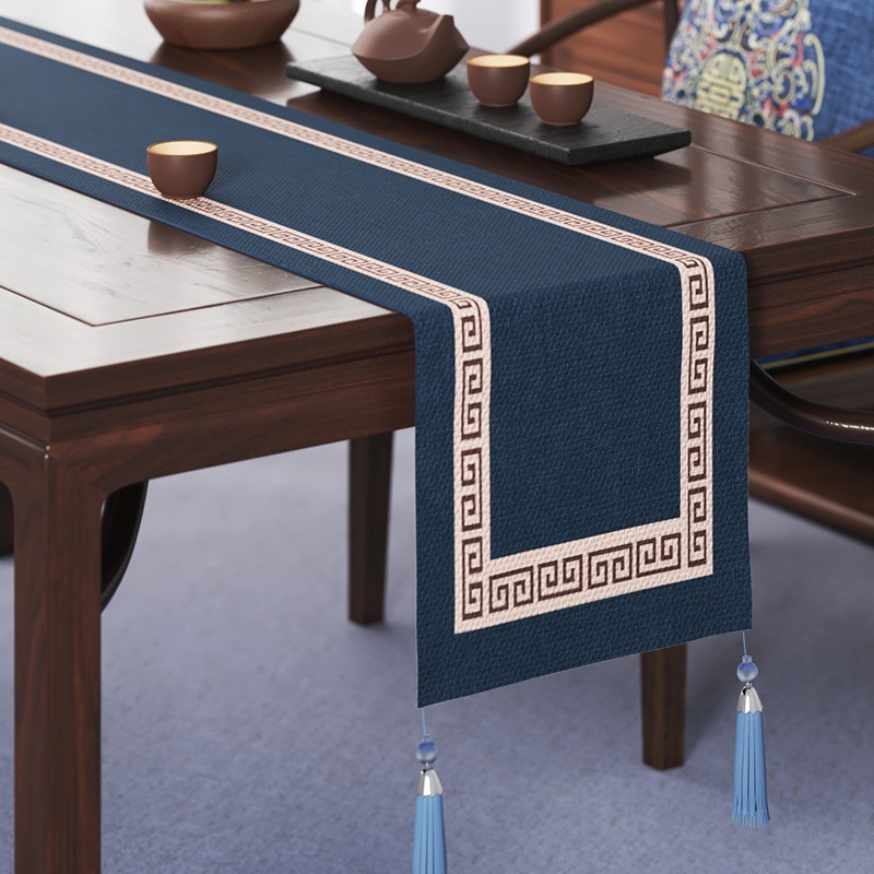 새로운 중국 선 티 테이블 테이블 러너 코튼 및 리넨 라이트 럭셔리 하이 엔드 티 룸 티 테이블 천 티 테이블 롱 스트립 장식 티 컵 매트