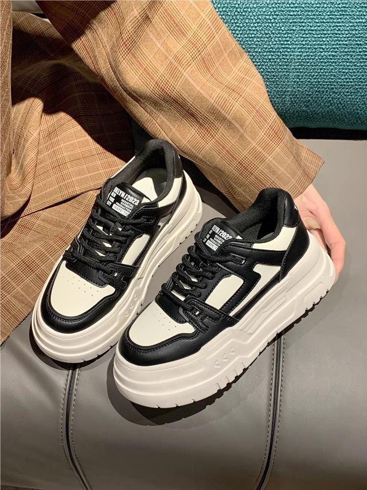여성을위한 캐주얼 흰색 신발 2025 봄 새로운 두꺼운 밑창 내부 강화 가죽 스포츠 운동화 여성을위한 작은 플랫폼 밑창스토어 가기