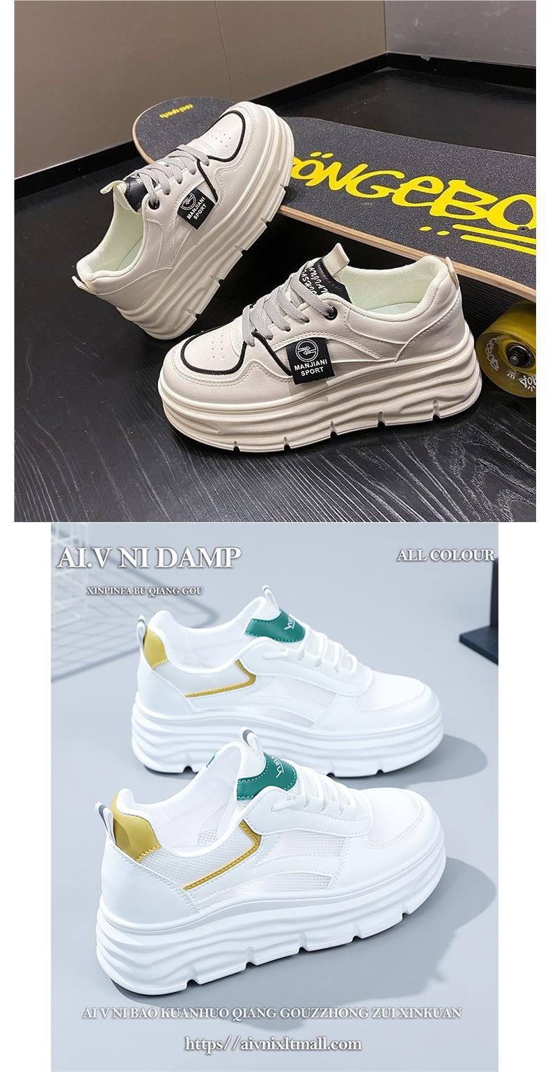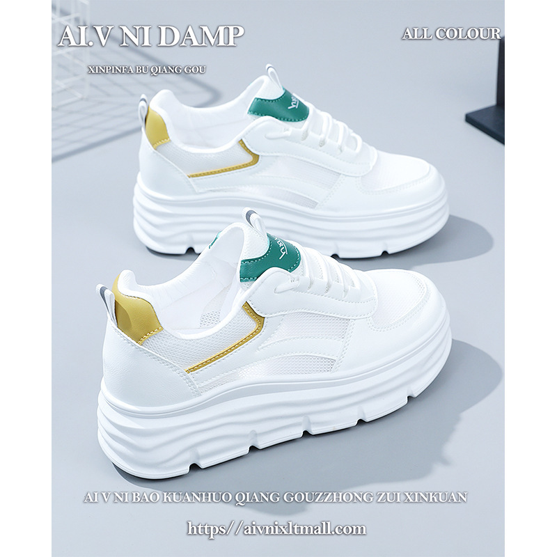 내부 높이 흰색 신발 여성의 2024 새로운 여름 얇은 두꺼운 밑창 올 매치 여성 신발 플레이트 신발 통기성 메쉬 신발스토어 가기