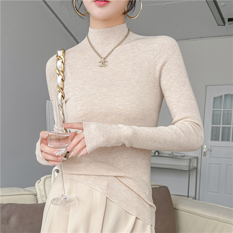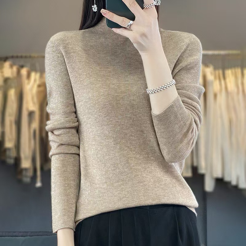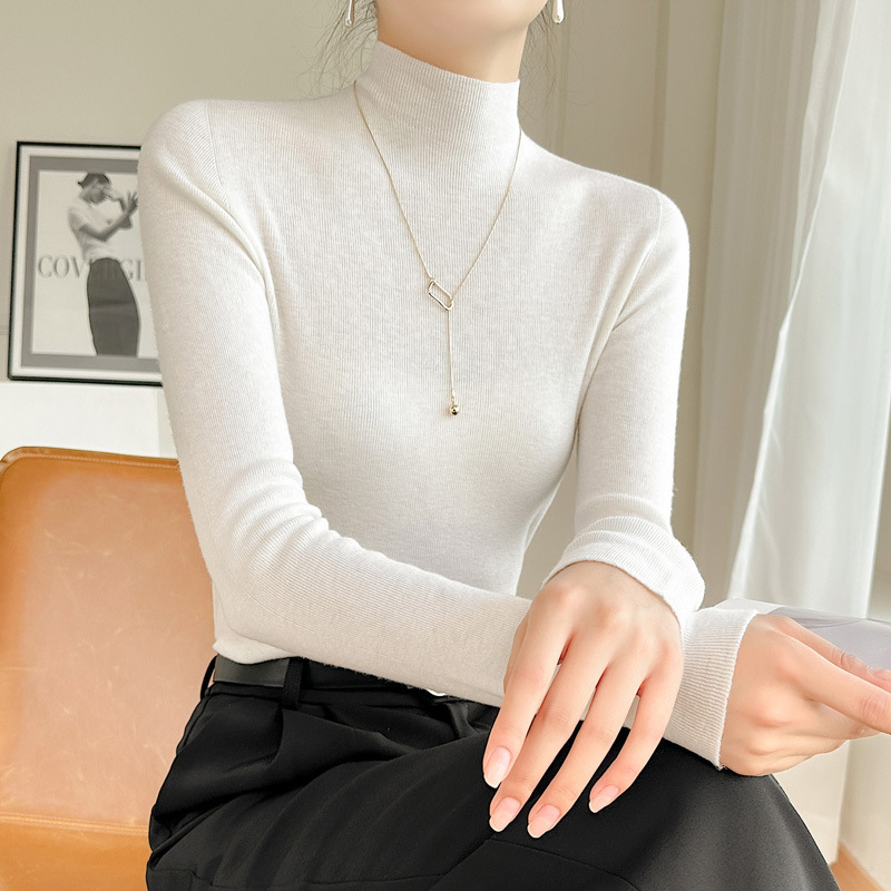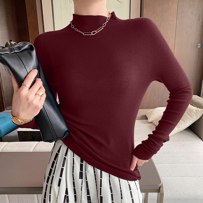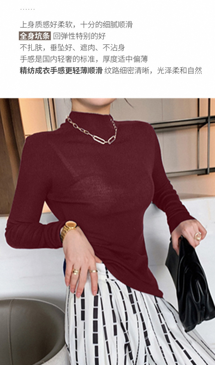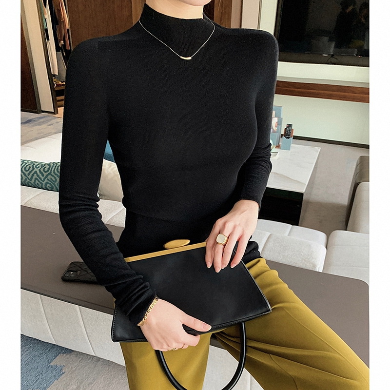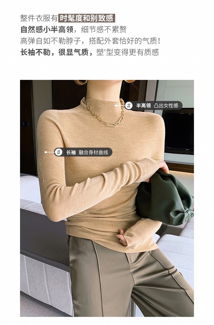 매끈한 120 개의 워스트 모직 스웨터 여성의 하프 하이 칼라 베이스 셔츠 얇은 바디 핏 마이크로 투명 니트 스웨터 내부 스웨터스토어 가기