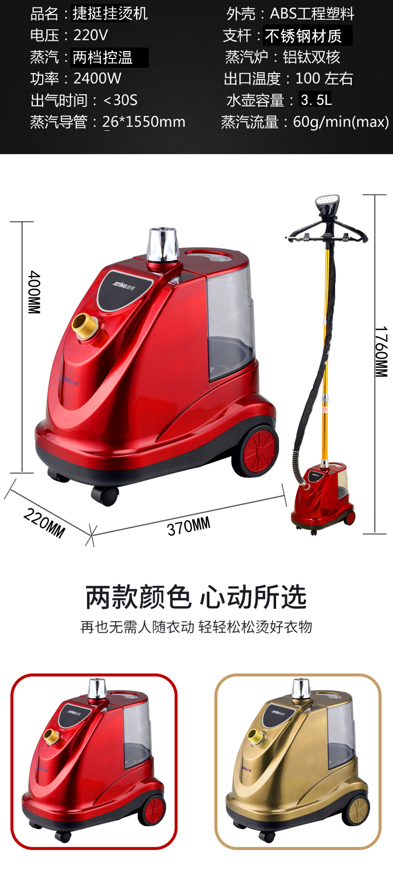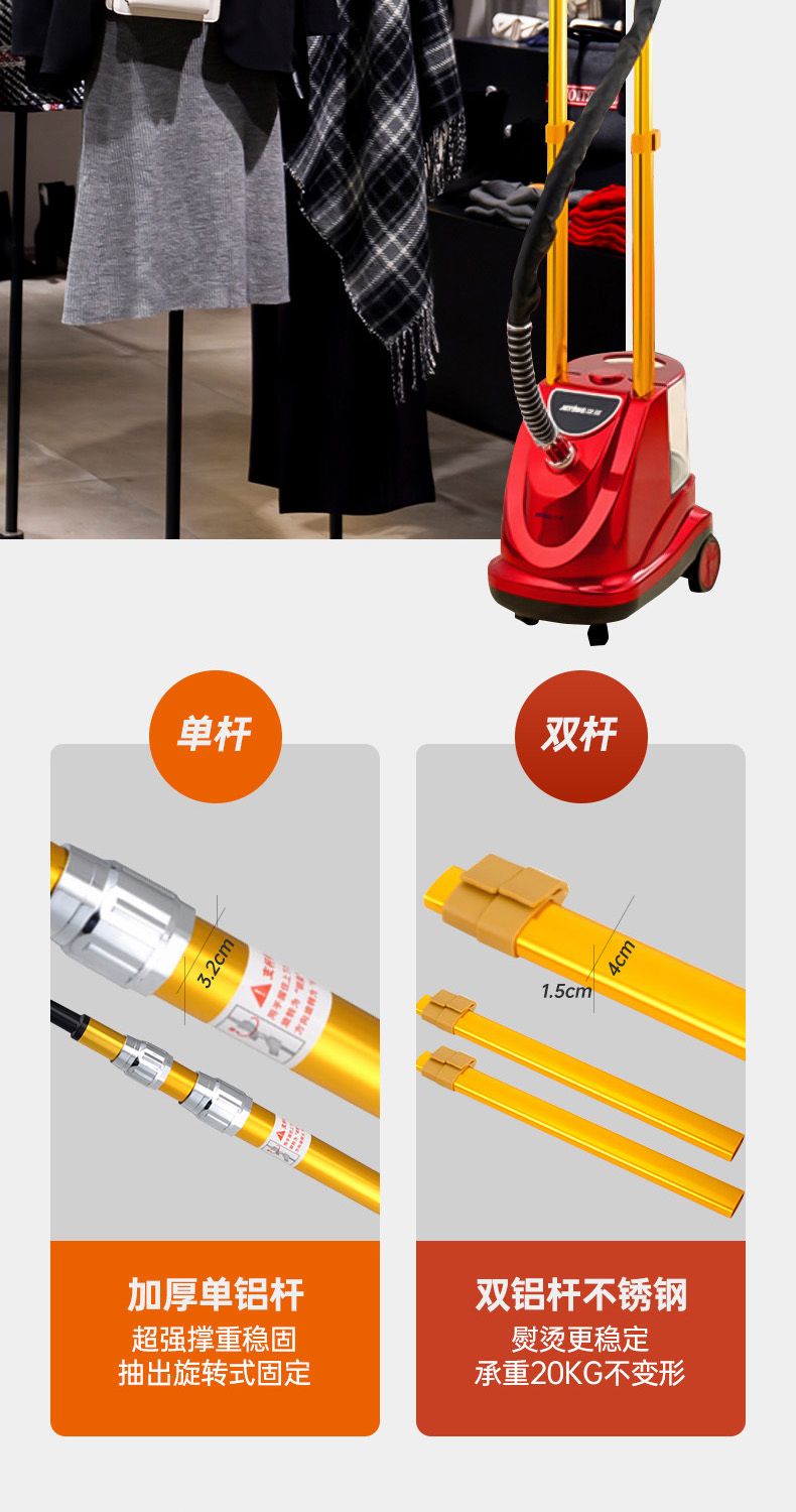 더블 폴 2400 와트 고출력 증기 다림질 기계 의류 매장 철 휴대용 수직 다림질 기계 가구스토어 가기