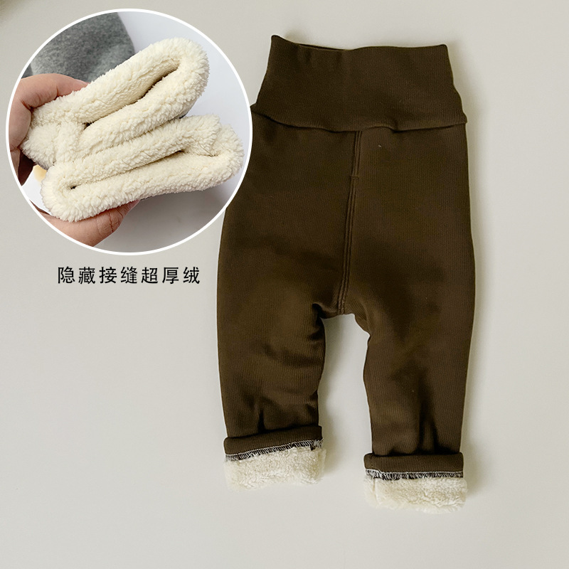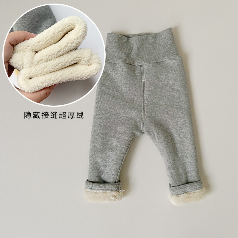 ins 유아 및 어린이 남성과 여성을위한 하이 웨이스트 배꼽 보호 바지 봄, 가을 면화 레깅스 면화 겨울 벨벳 바지 한국어 버전 2 두꺼운스토어 가기