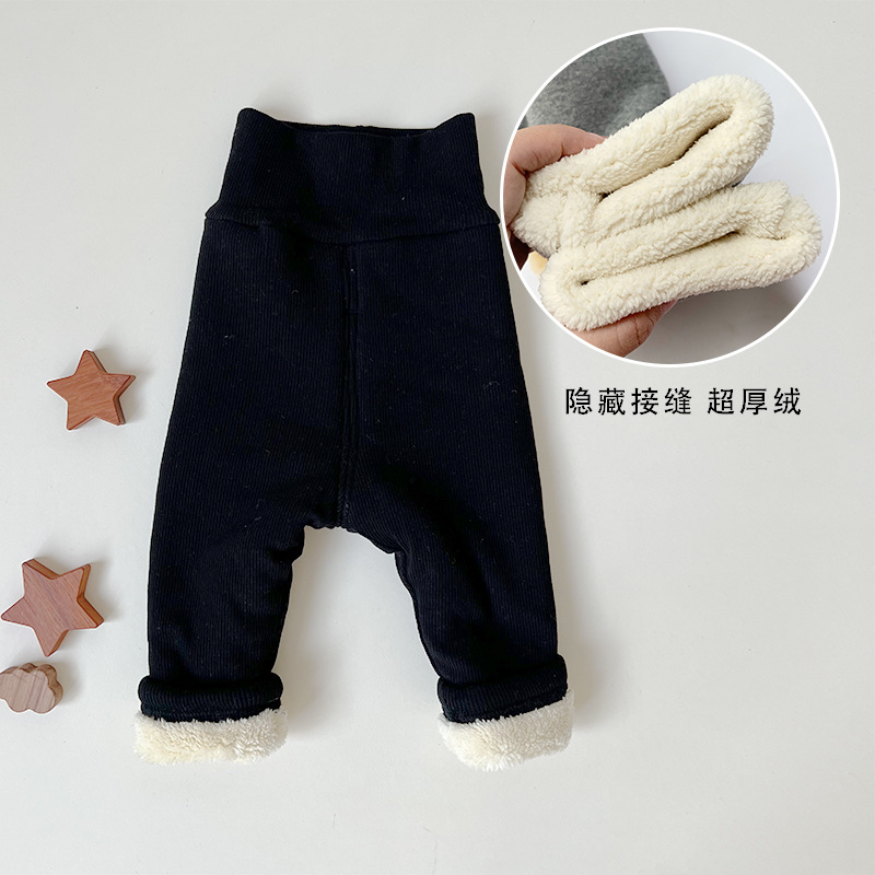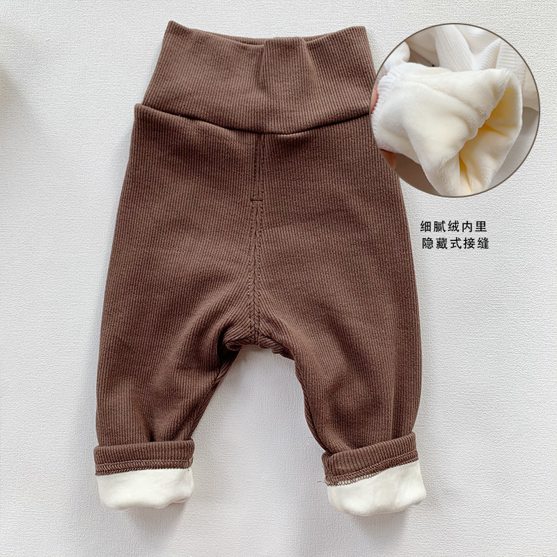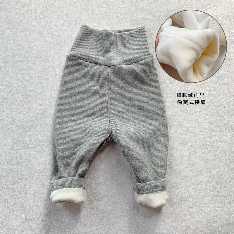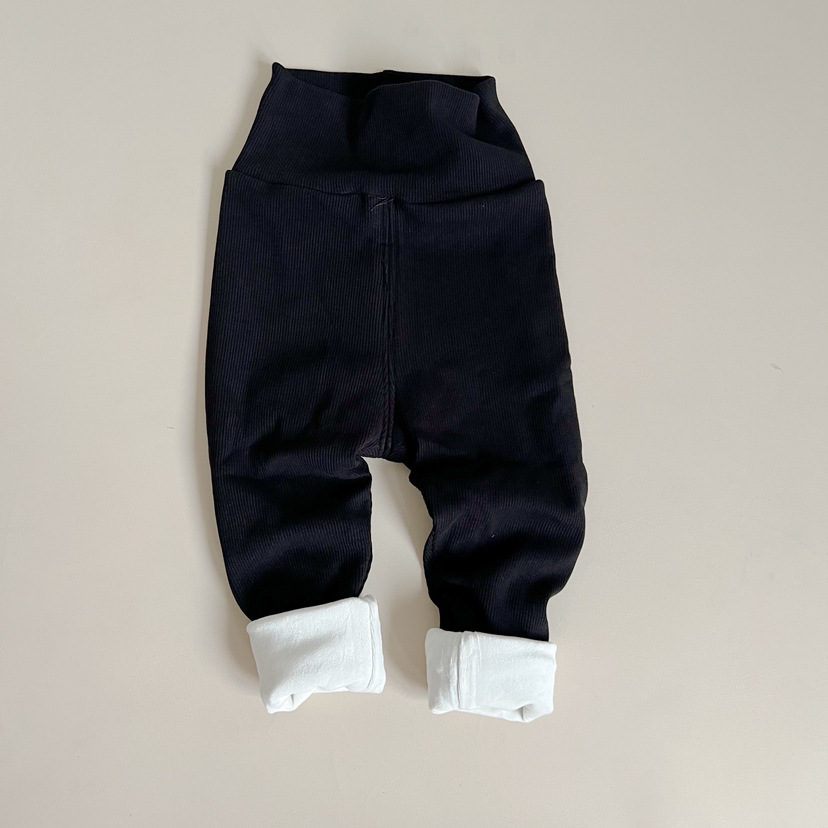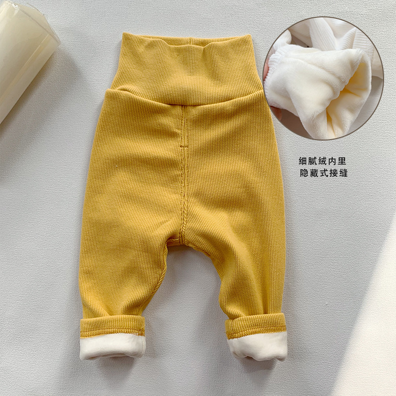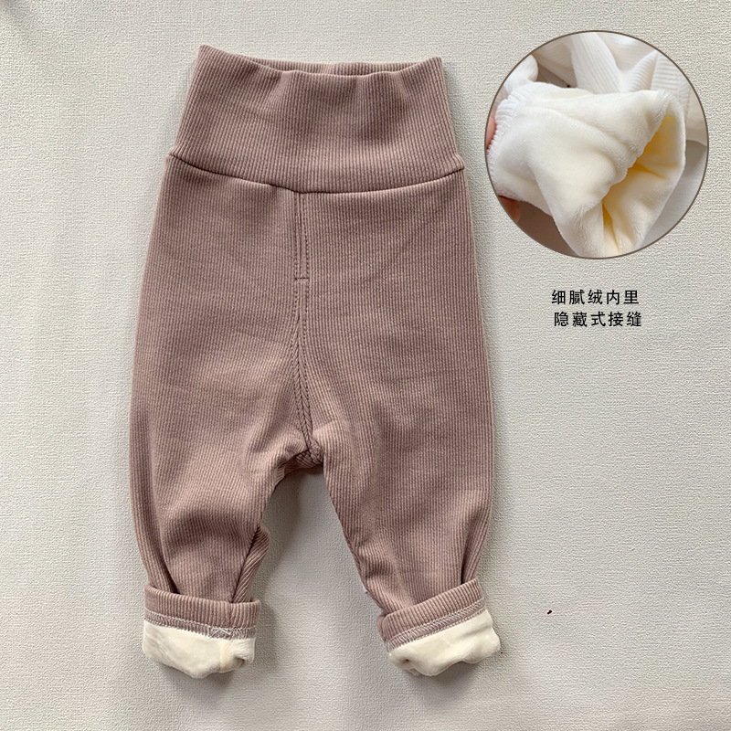 ins 유아 및 어린이 남성과 여성을위한 하이 웨이스트 배꼽 보호 바지 봄, 가을 면화 레깅스 면화 겨울 벨벳 바지 한국어 버전 2 두꺼운