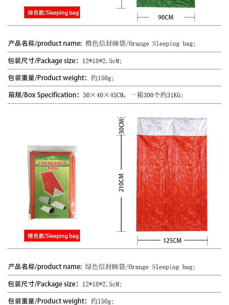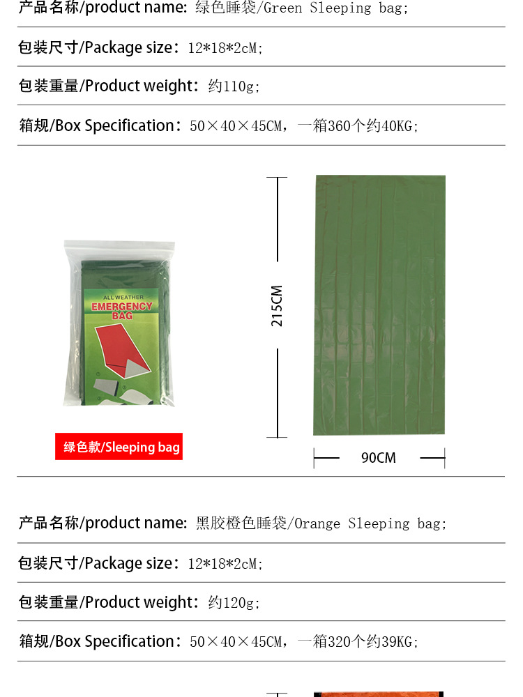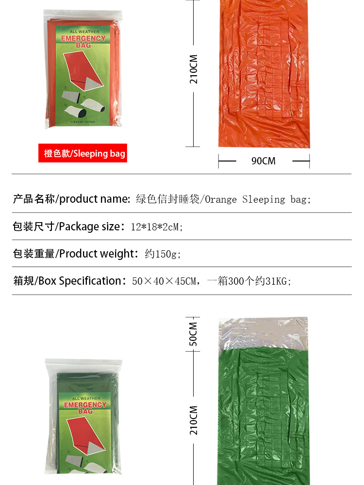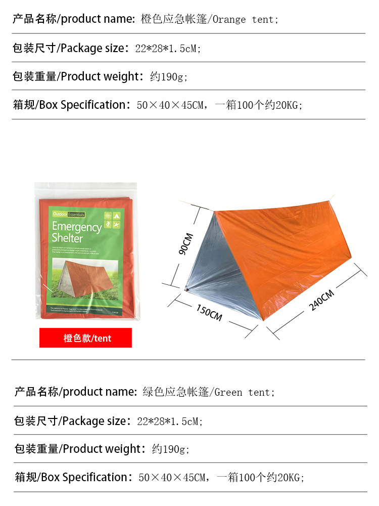 고객 맞춤형 야외 여행 침낭 비상 텐트 휴대용 야외 캠핑 따뜻하고 차가운 반사 비상 비스토어 가기