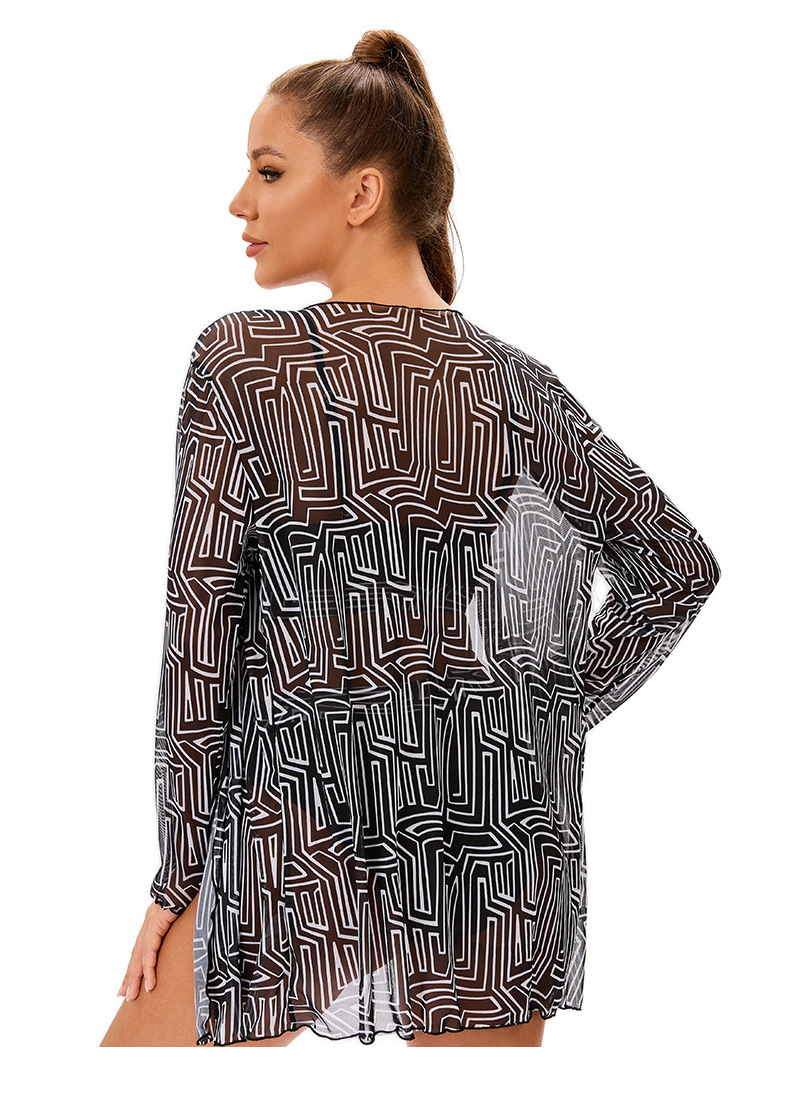 대외 무역 유럽과 미국의 섹시한 메쉬 인쇄 3 피스 수영복 여성 국경 새로운 백리스 삼각형 꽉 긴팔 수영복