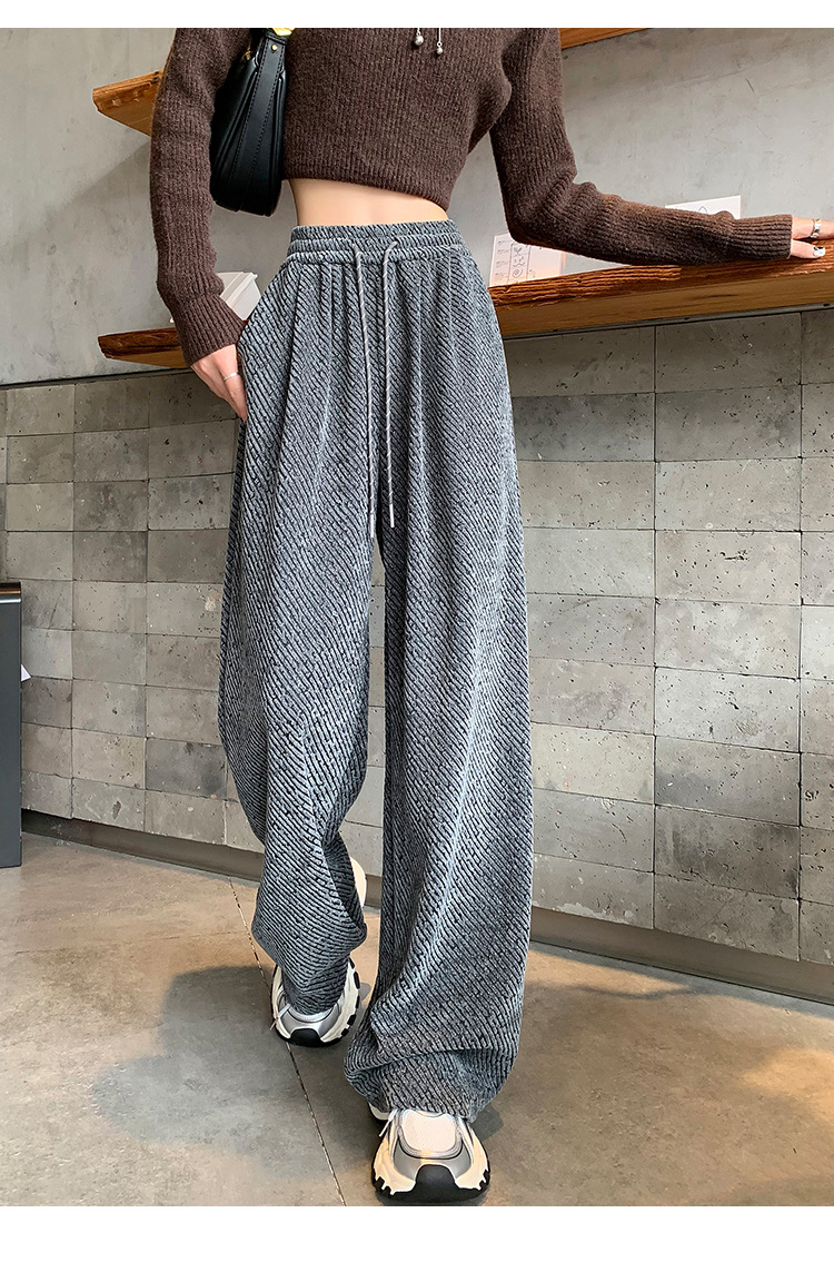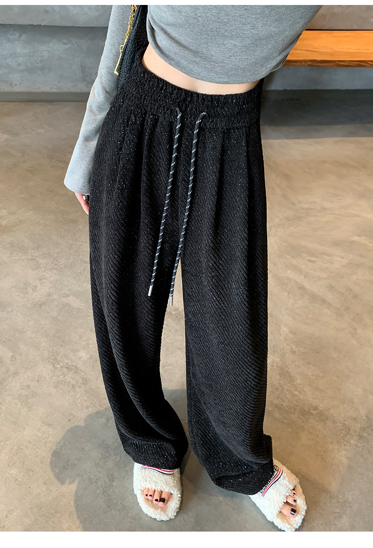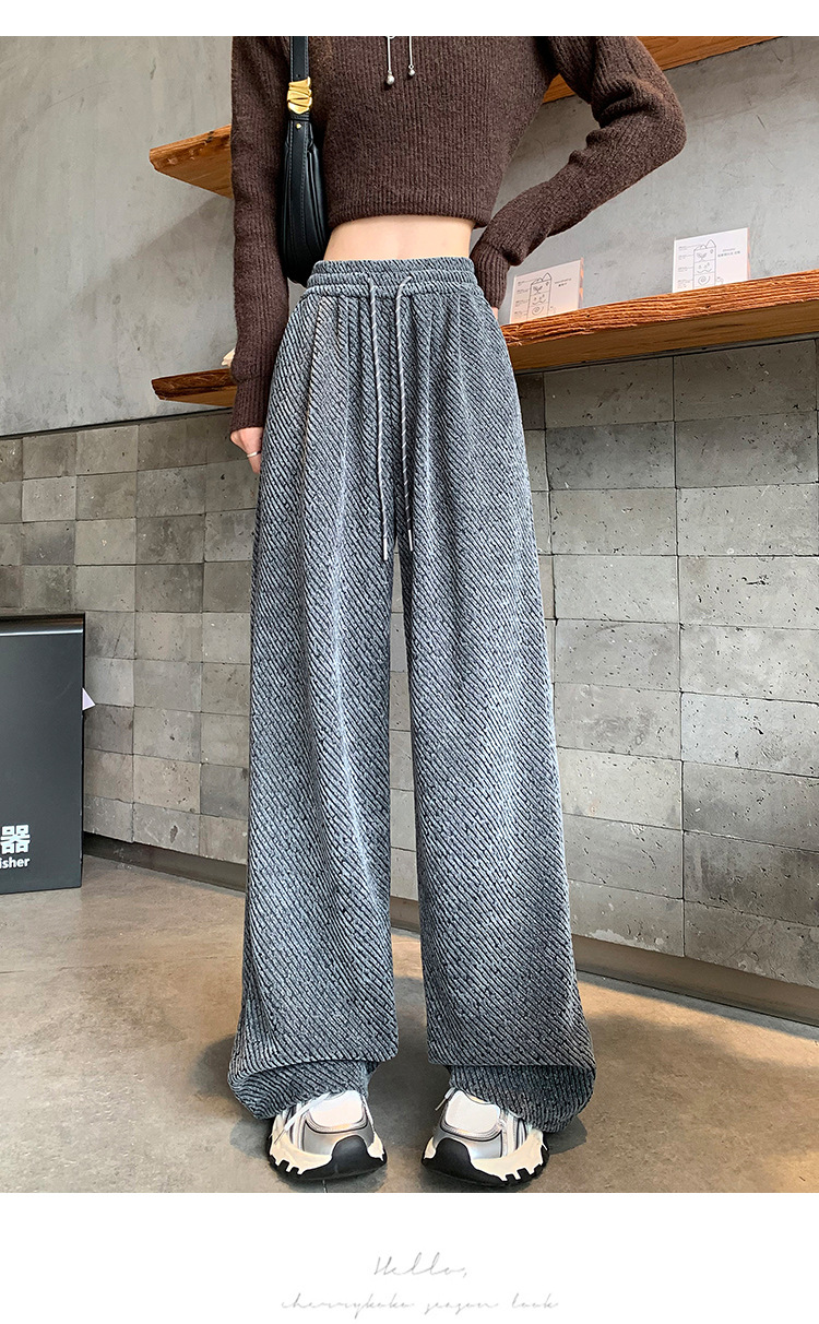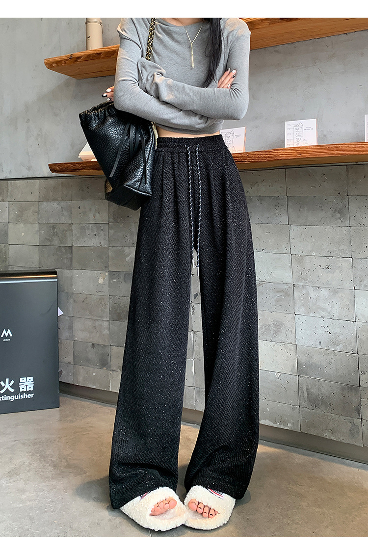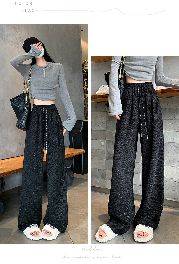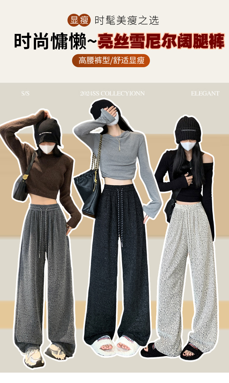 밝은 실크 체닐 와이드 레그 바지 여성용 2024 가을과 겨울 새로운 니트 데프 게으른 양털 스트레이트 바지 트렌디스토어 가기