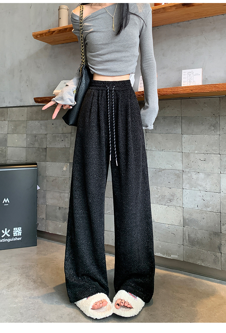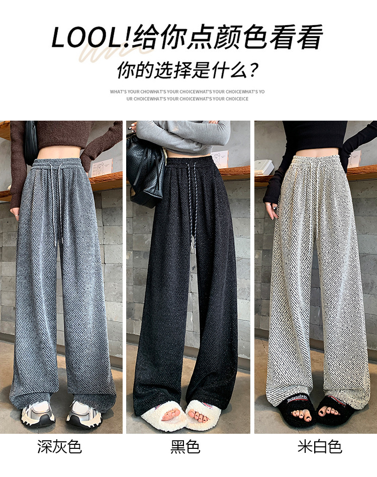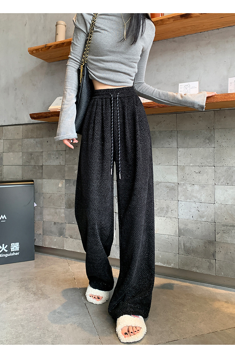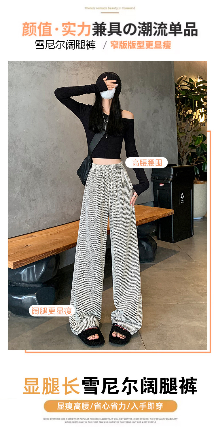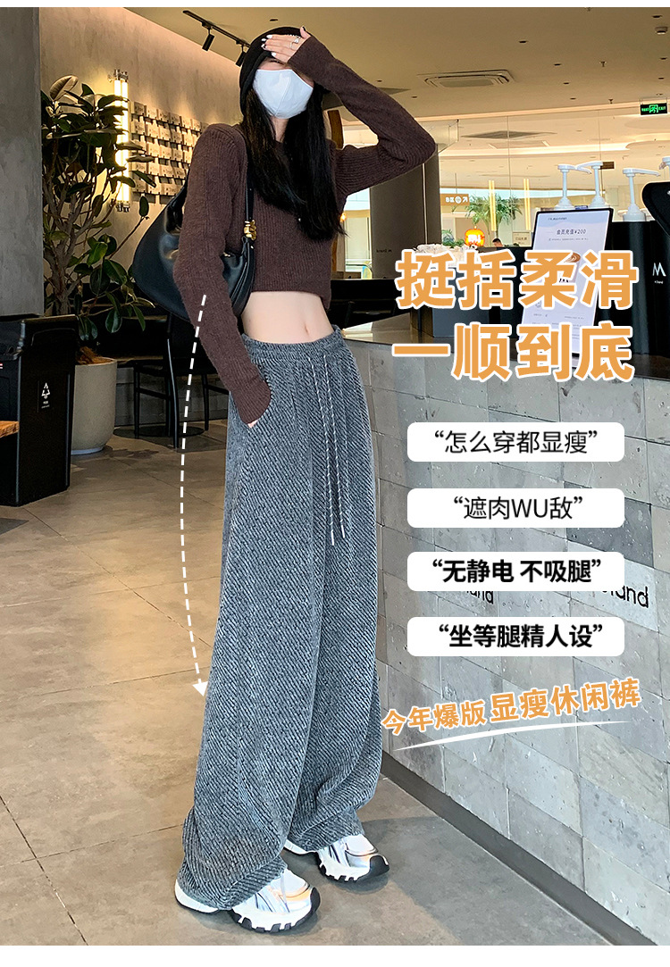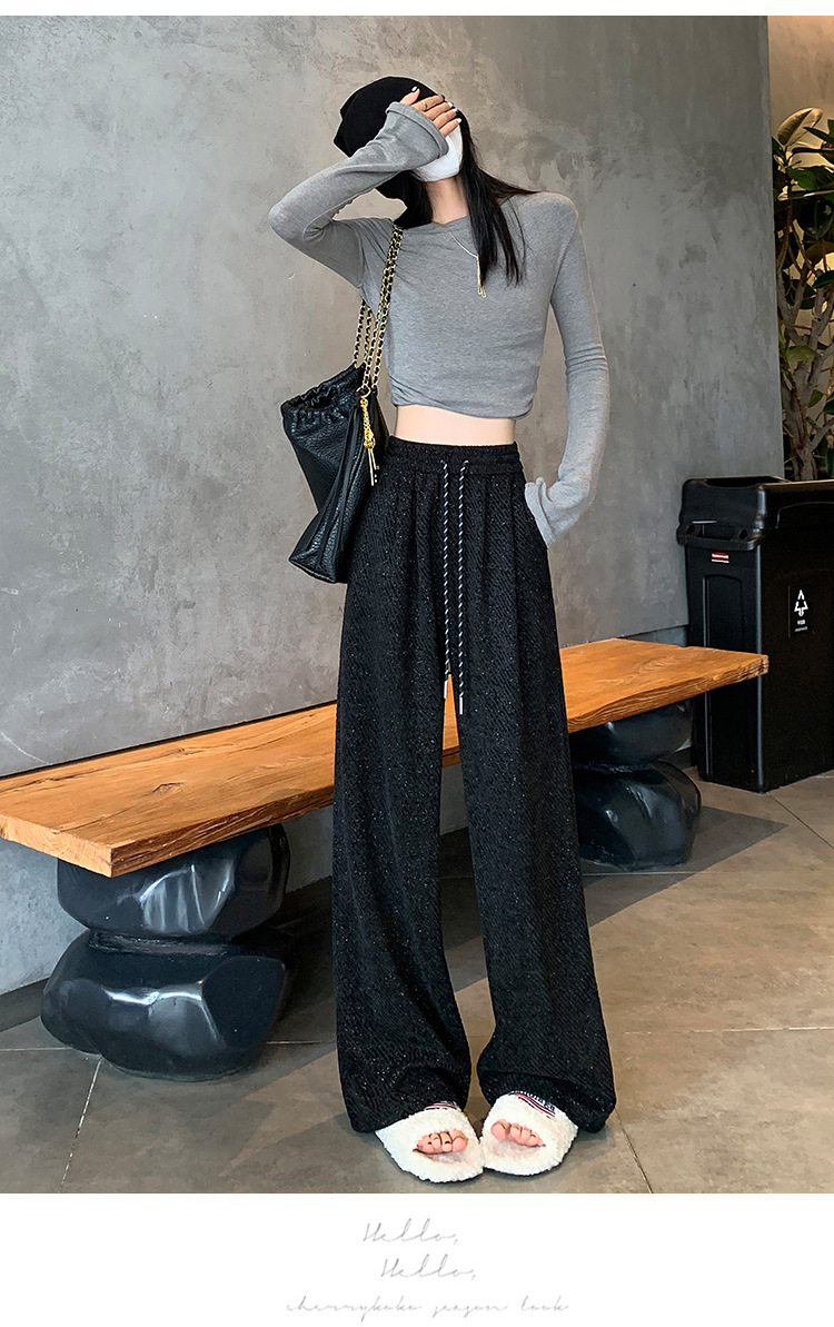 밝은 실크 체닐 와이드 레그 바지 여성용 2024 가을과 겨울 새로운 니트 데프 게으른 양털 스트레이트 바지 트렌디스토어 가기