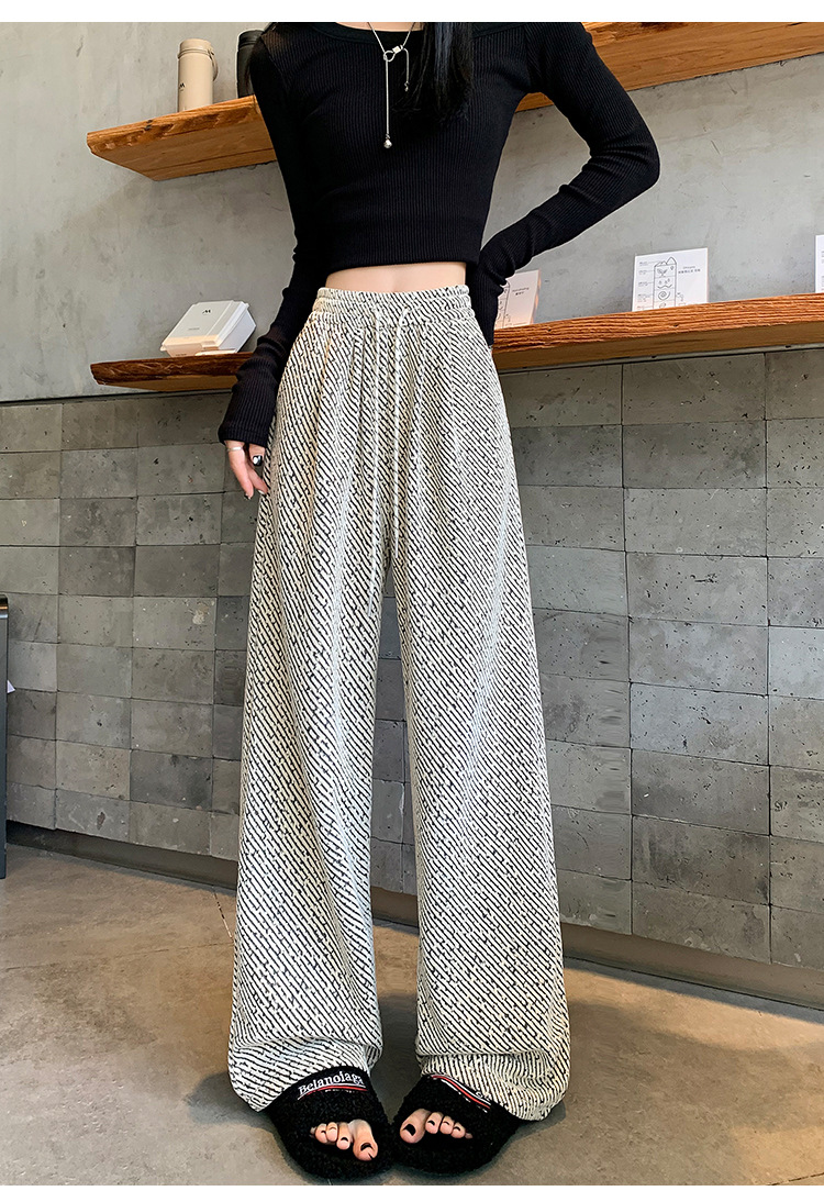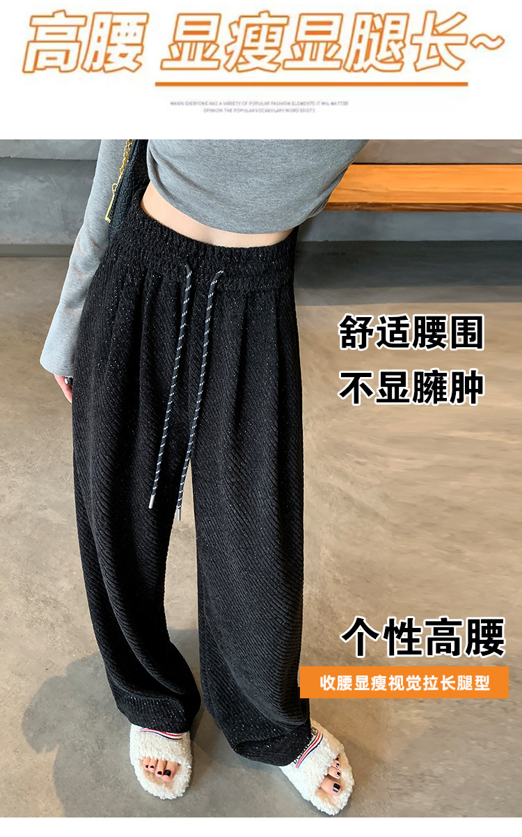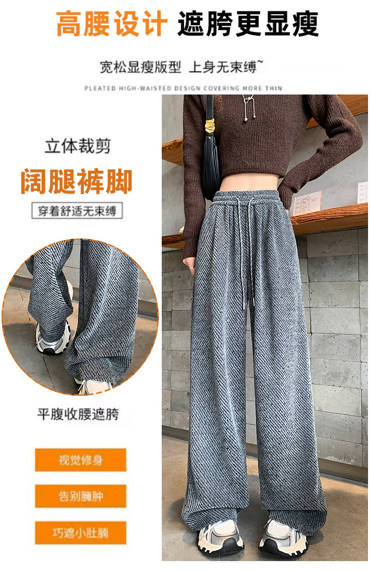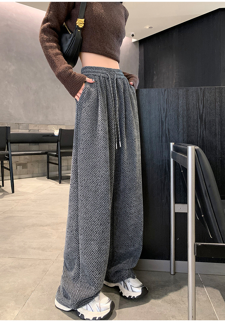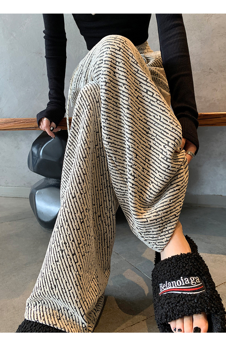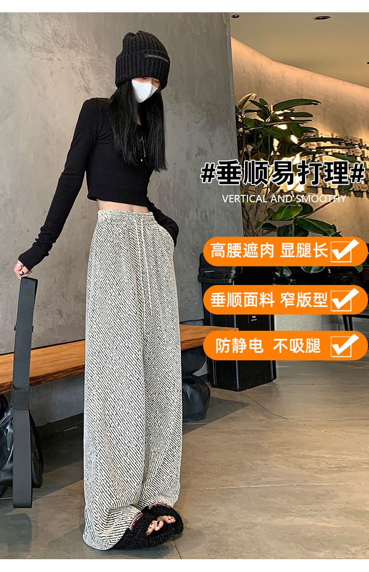 밝은 실크 체닐 와이드 레그 바지 여성용 2024 가을과 겨울 새로운 니트 데프 게으른 양털 스트레이트 바지 트렌디스토어 가기