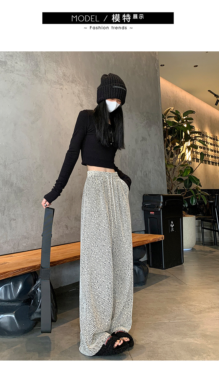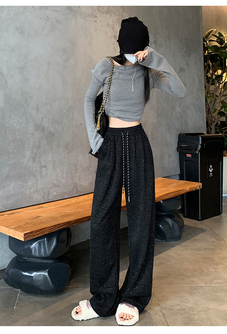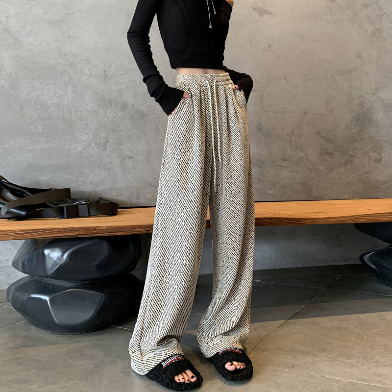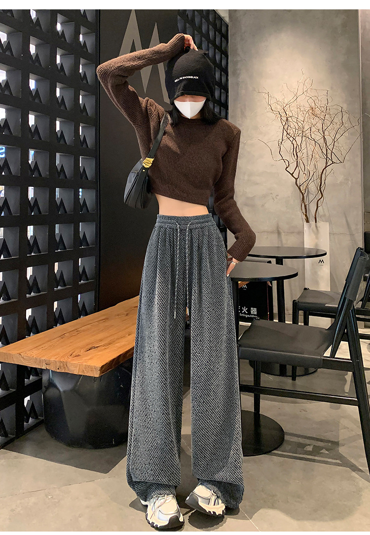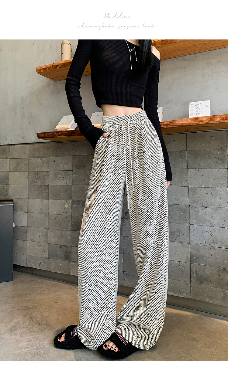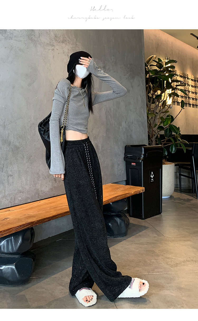 밝은 실크 체닐 와이드 레그 바지 여성용 2024 가을과 겨울 새로운 니트 데프 게으른 양털 스트레이트 바지 트렌디스토어 가기