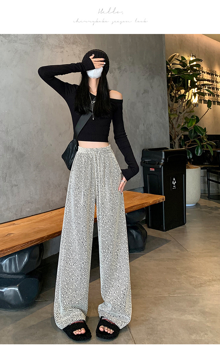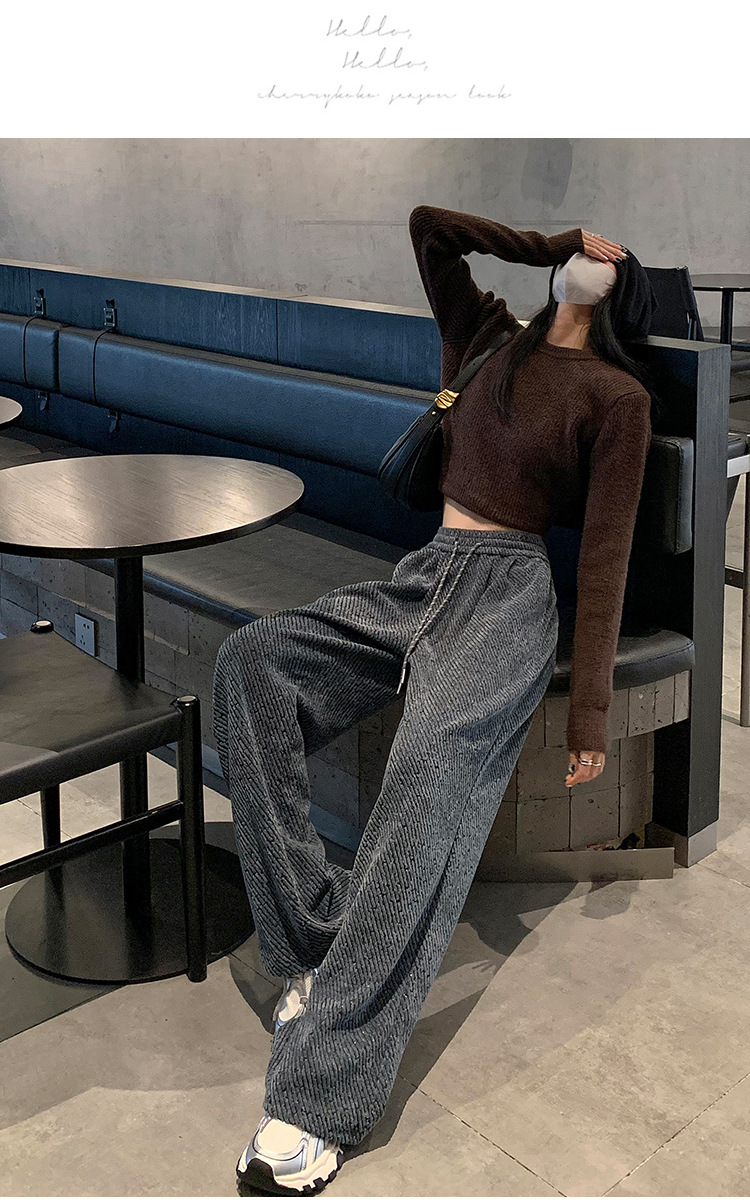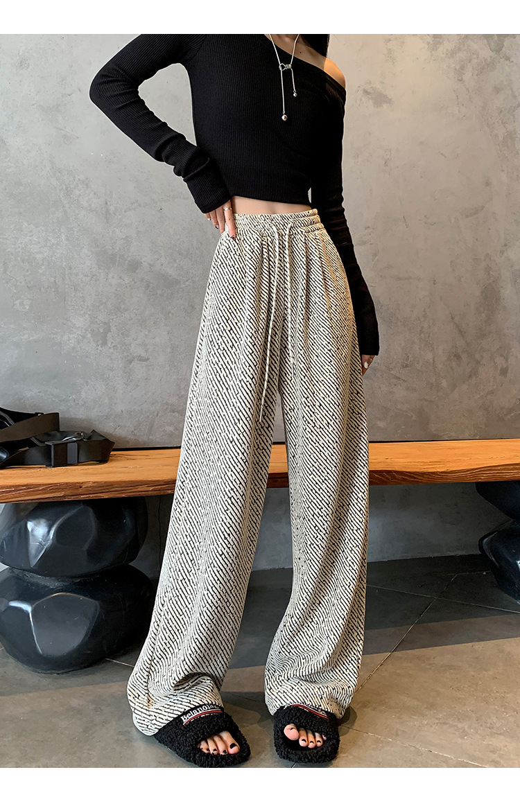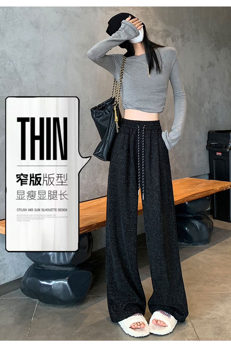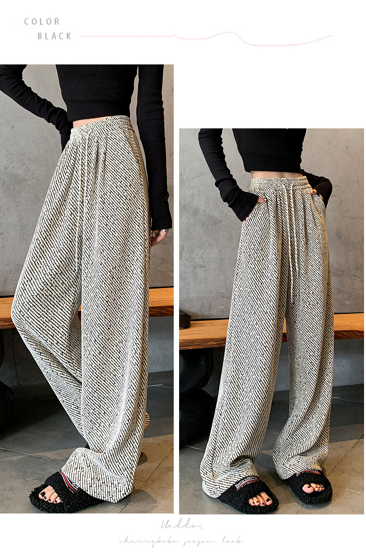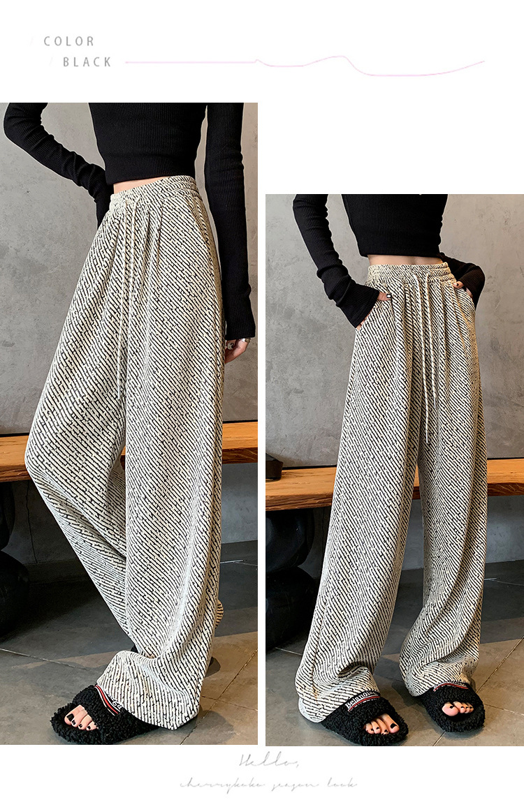밝은 실크 체닐 와이드 레그 바지 여성용 2024 가을과 겨울 새로운 니트 데프 게으른 양털 스트레이트 바지 트렌디스토어 가기