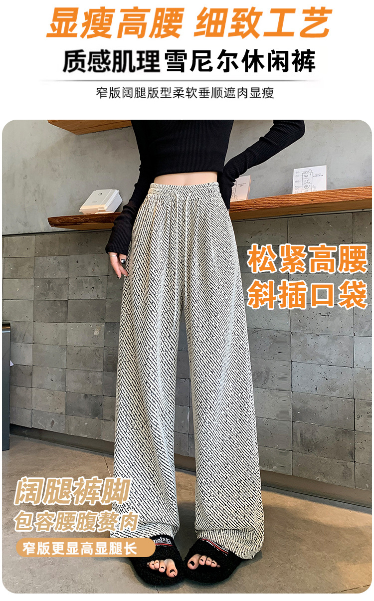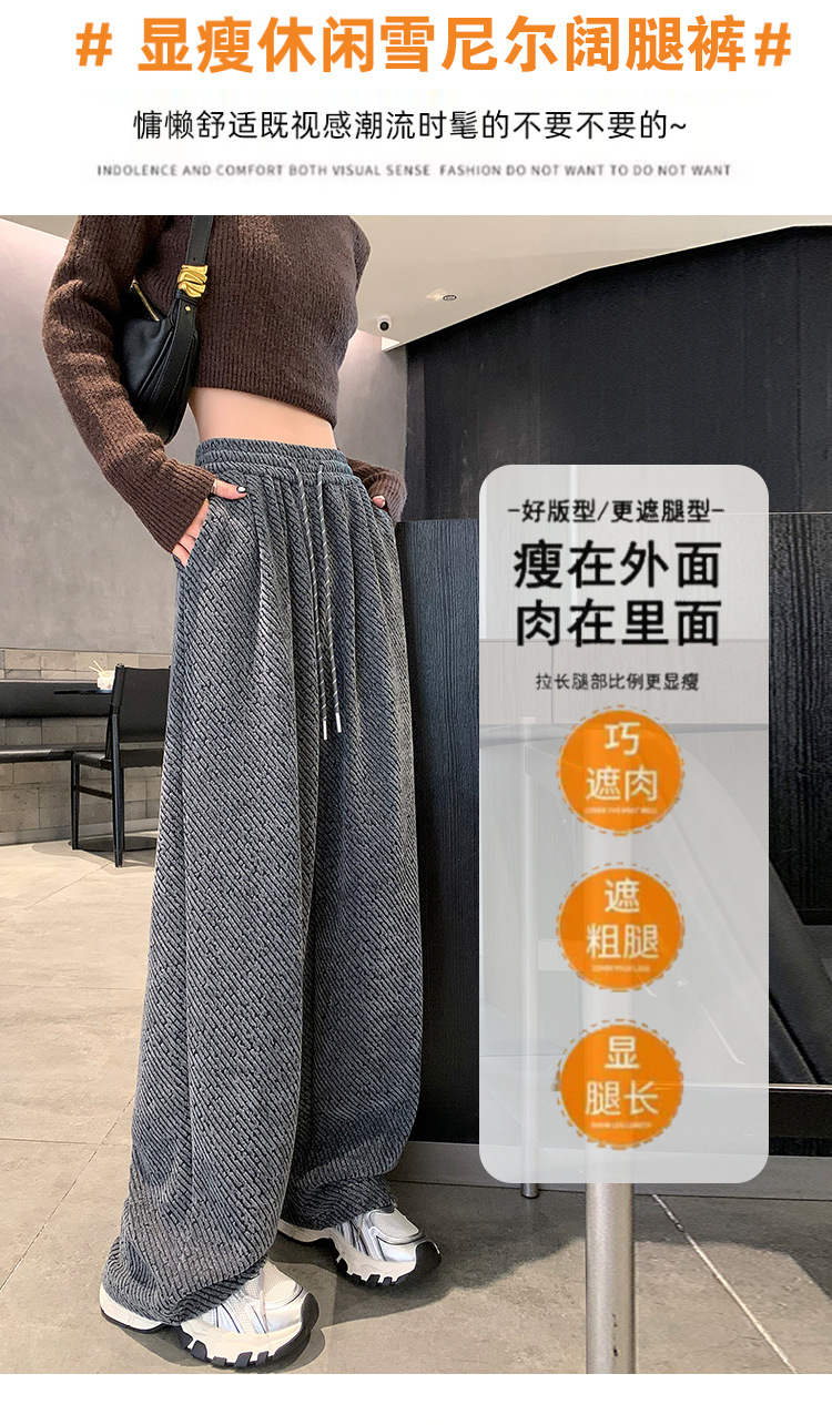 밝은 실크 체닐 와이드 레그 바지 여성용 2024 가을과 겨울 새로운 니트 데프 게으른 양털 스트레이트 바지 트렌디