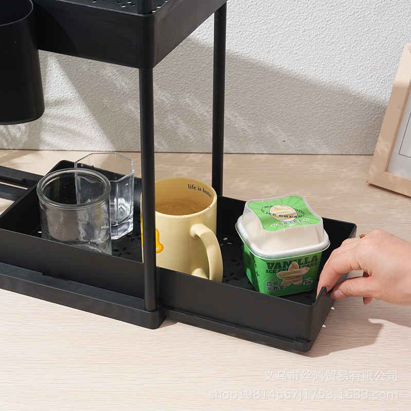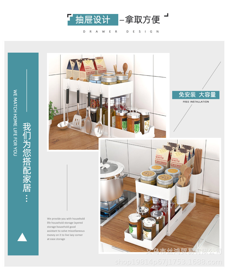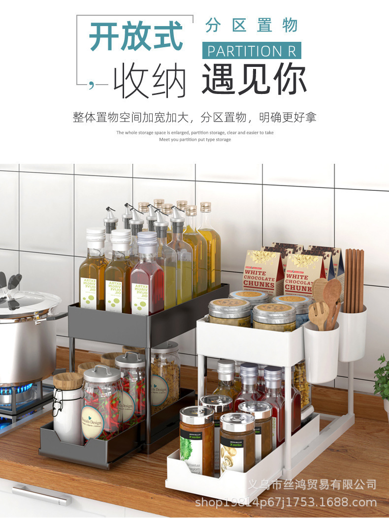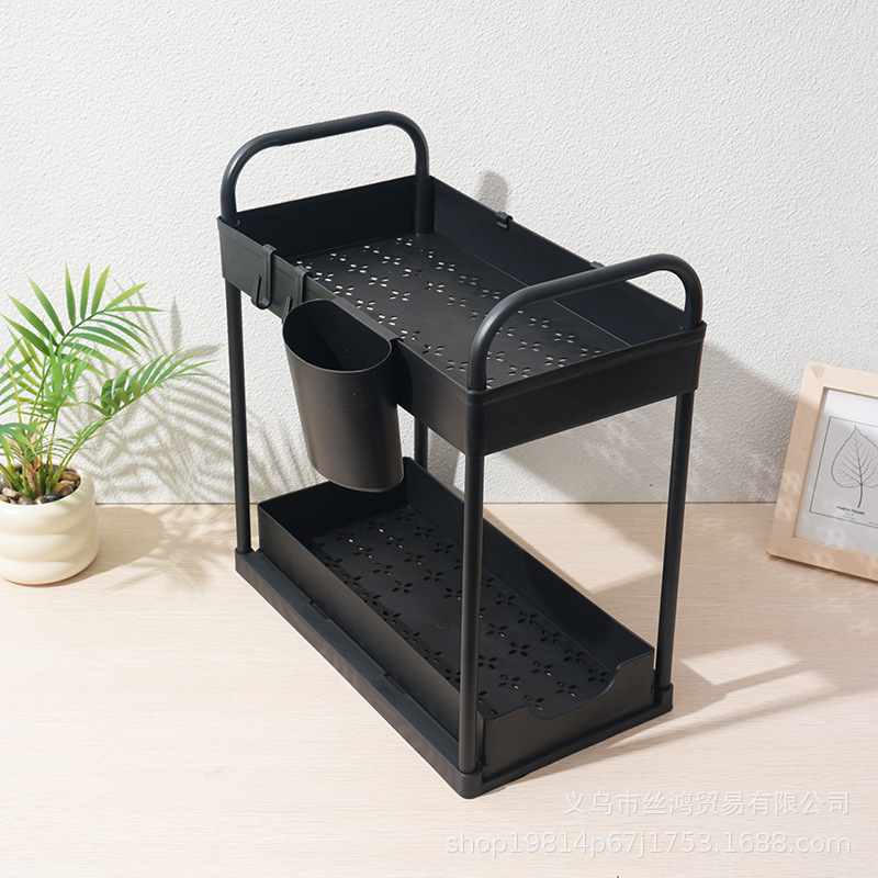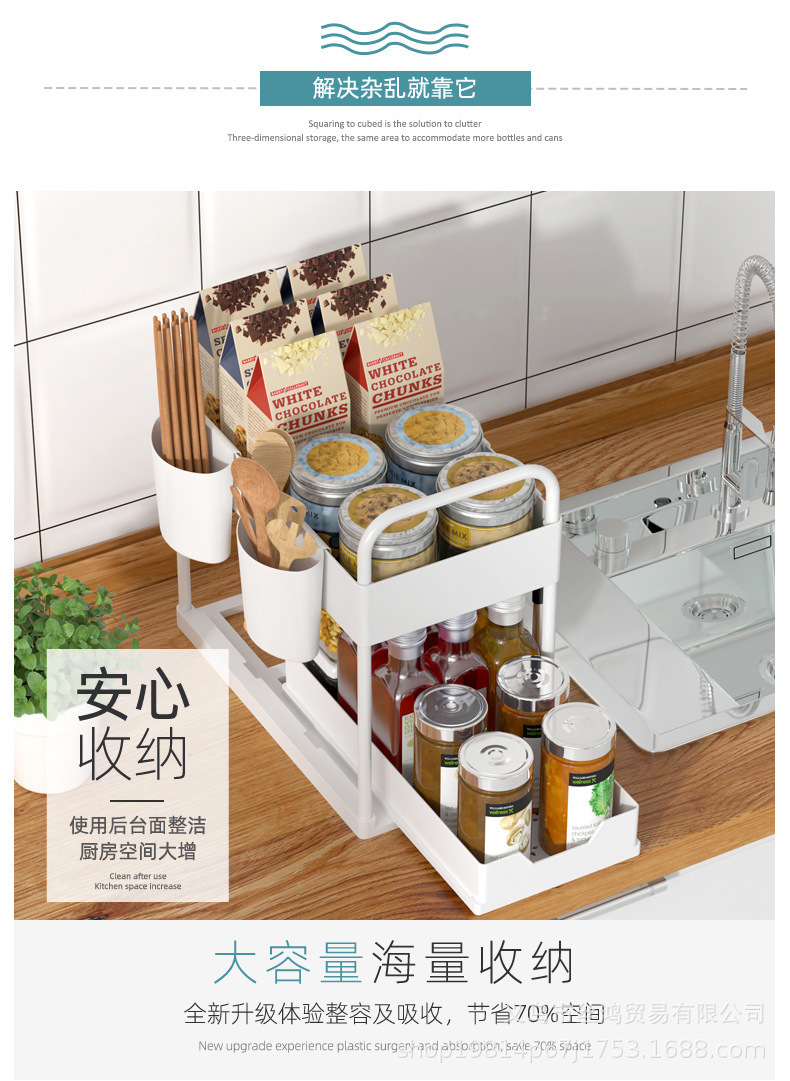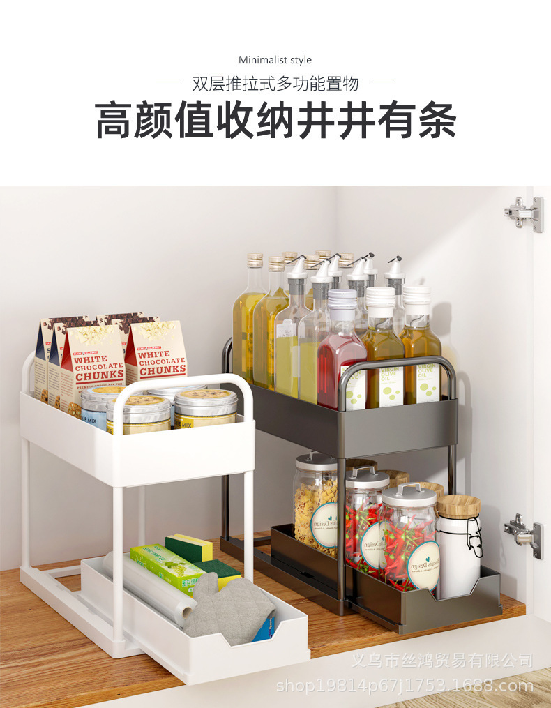 아마존 싱크 스토리지 랙 다기능 더블 레이어 팔걸이 주방 스토리지 랙 풀아웃 욕실 스토리지 랙스토어 가기