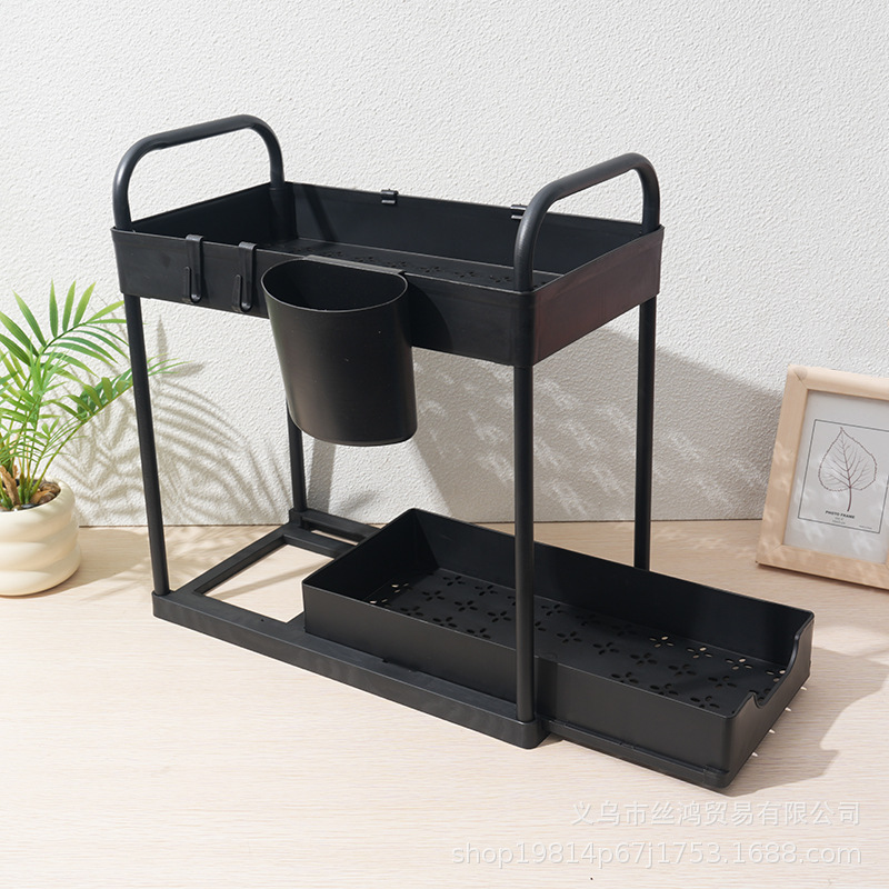 아마존 싱크 스토리지 랙 다기능 더블 레이어 팔걸이 주방 스토리지 랙 풀아웃 욕실 스토리지 랙