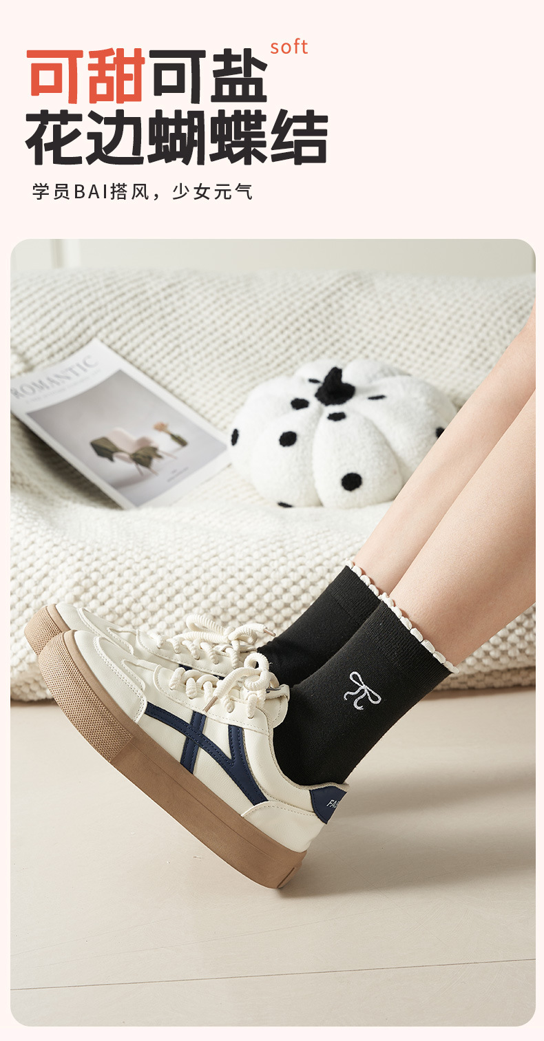 어린이 땀 흡수성 통기성 나비 매듭, 세련된 주지 면화 양말을위한 자수 미드 튜브 양말스토어 가기