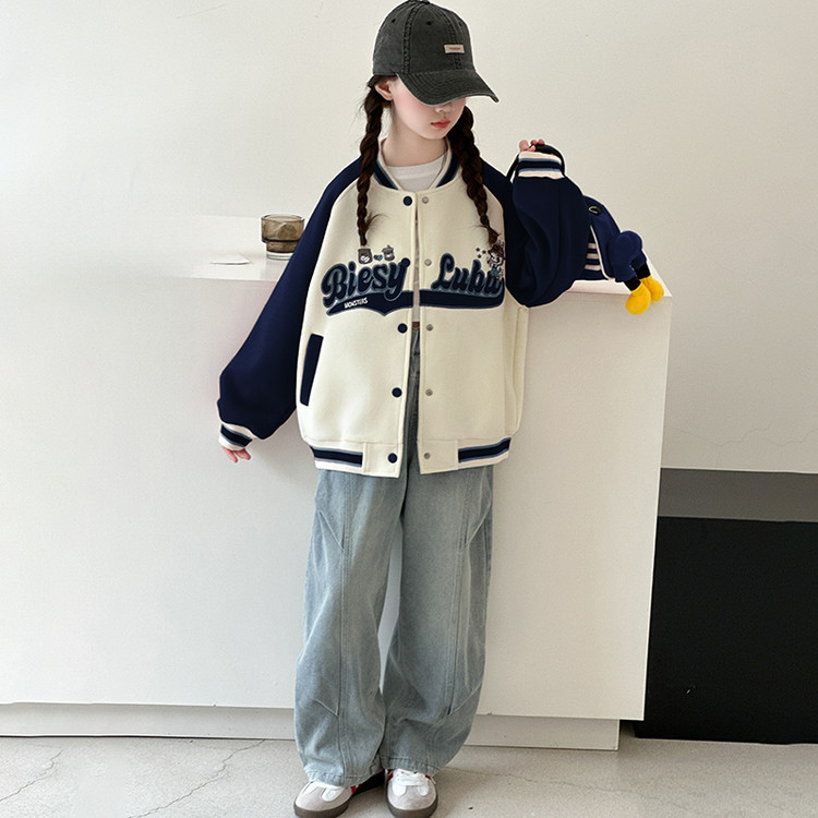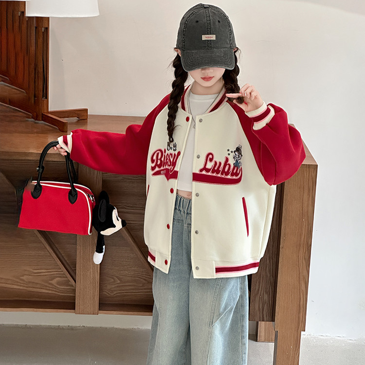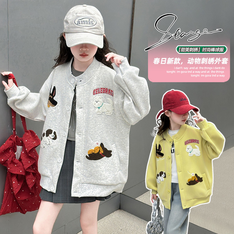 여아 봄 재킷 2025 신상 유행 만화 캐릭터 아동 루즈핏 재킷 여아용 자수 야구복