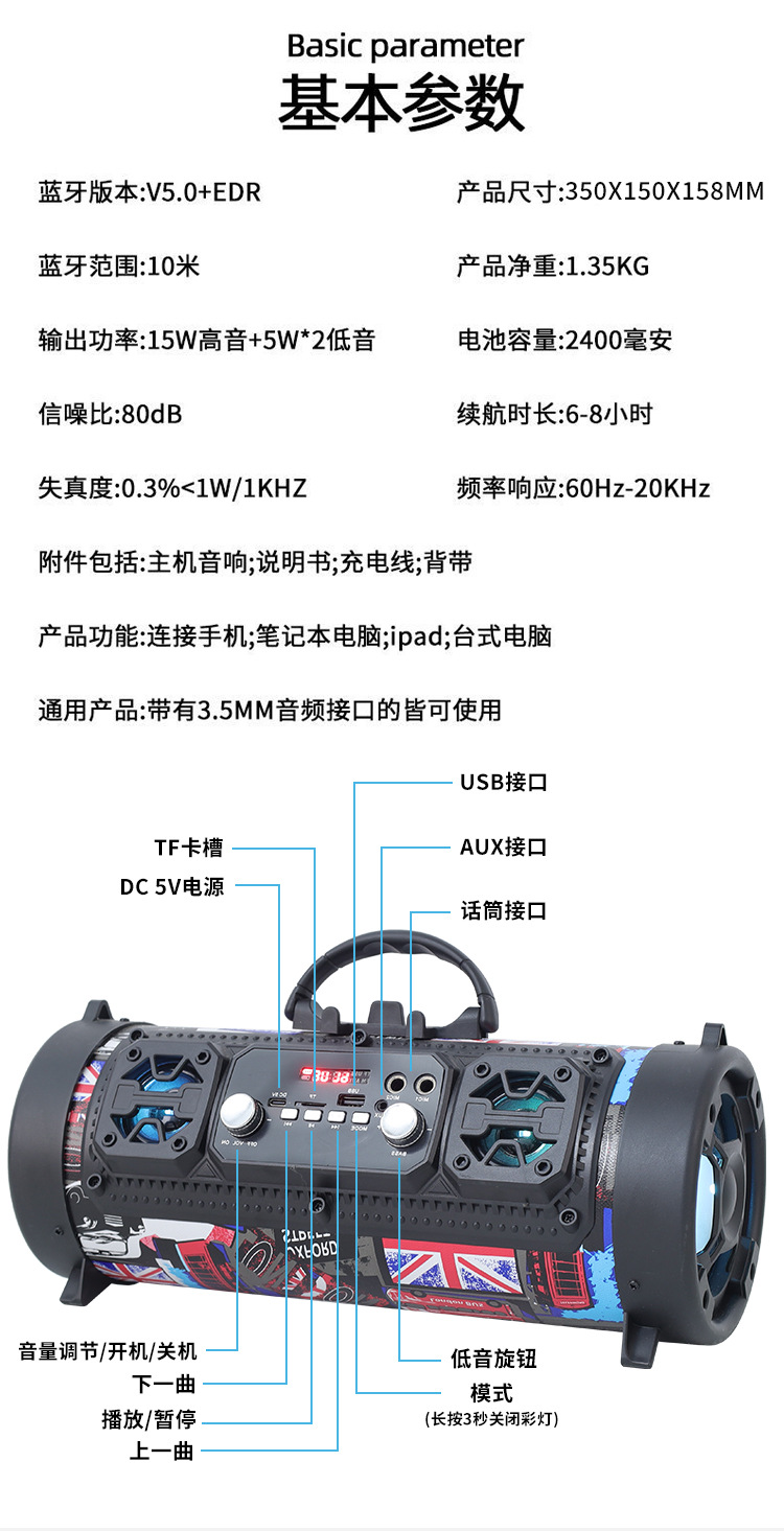 DHM17 야외 휴대용 블루투스 스피커 배럴 무선 전쟁 드럼 국경 전문 전자 상거래 오디오 서브 우퍼