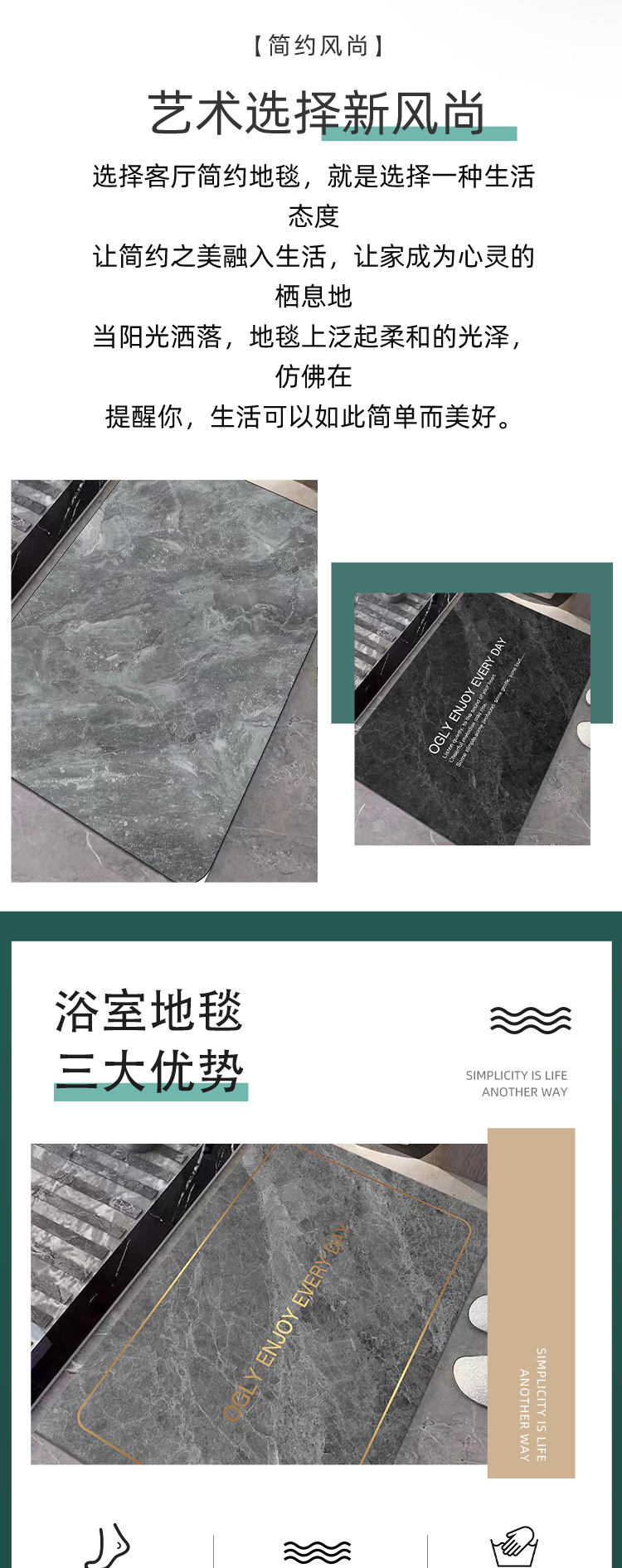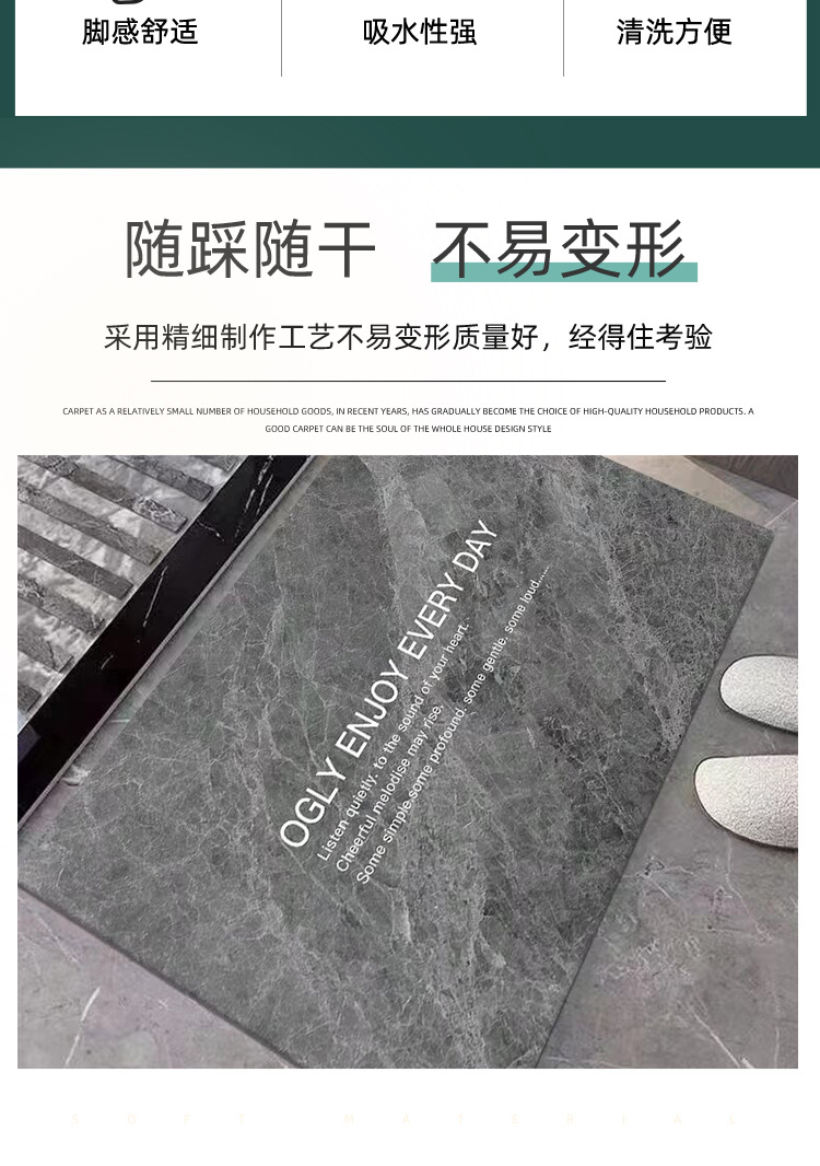 跨境卫生间门口地垫硅藻泥耐脏易清洗硅藻泥地垫入户门垫进门地垫