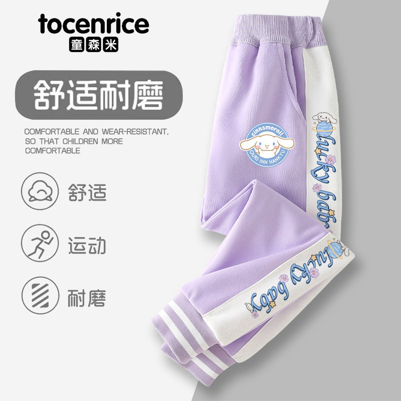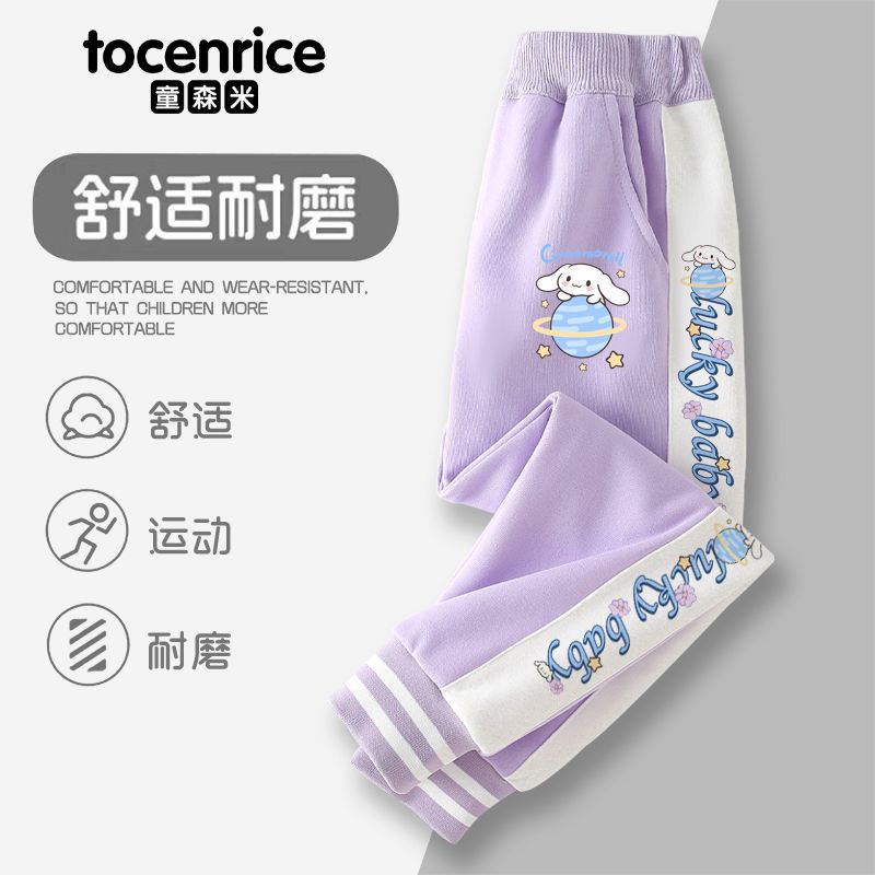 소녀 스포츠 바지 봄과 가을 어린이 유구이 개 2024 새로운 큰 귀 개 긴 바지 중간 어린이 캐주얼 스웨트 바지