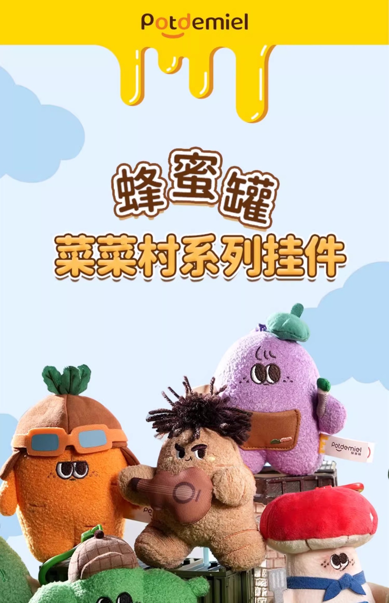 potdemiel 꿀 항아리 Cai Cai Village 어린이 펜던트 봉제 인형 인형 새로운 스타일 2025스토어 가기
