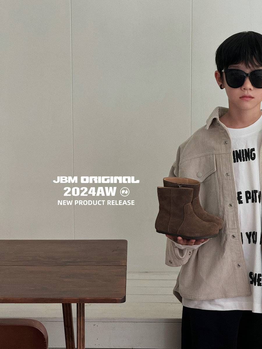 가을 겨울 정품 가죽 기모 짧은 부츠 JBM 정품 어린이 신발 라운드 발가락 중간 배럴 카우보이 부츠 소녀 인터넷 축하 얇은 부츠스토어 가기