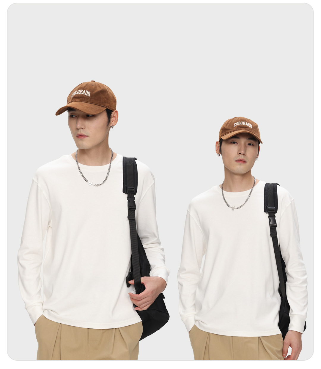 동유 남성복 봄 가을 남성용 이너웨어 라운드넥 스웨트셔츠 긴팔 티셔츠 캐주얼 이너웨어 흰색