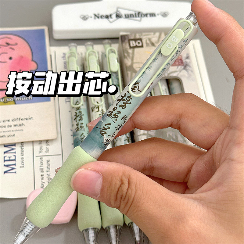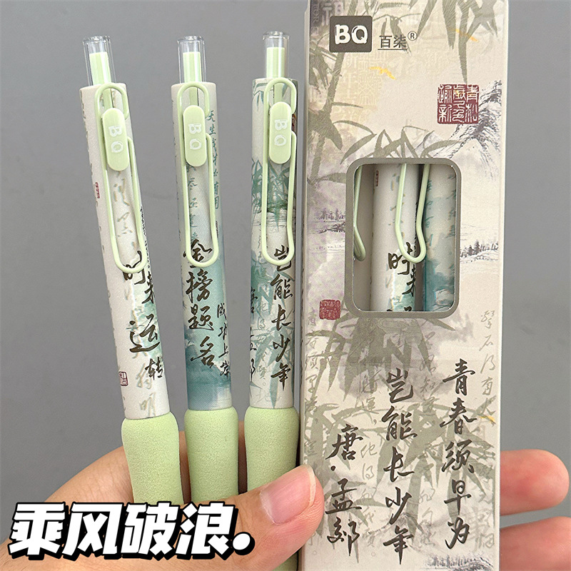 Guofeng, 바람과 파도 부드러운 그립 유럽 가방 프레스 젤 펜 학생 시험 특수 빠른 건조 0.5 검은 색 브러시 펜스토어 가기