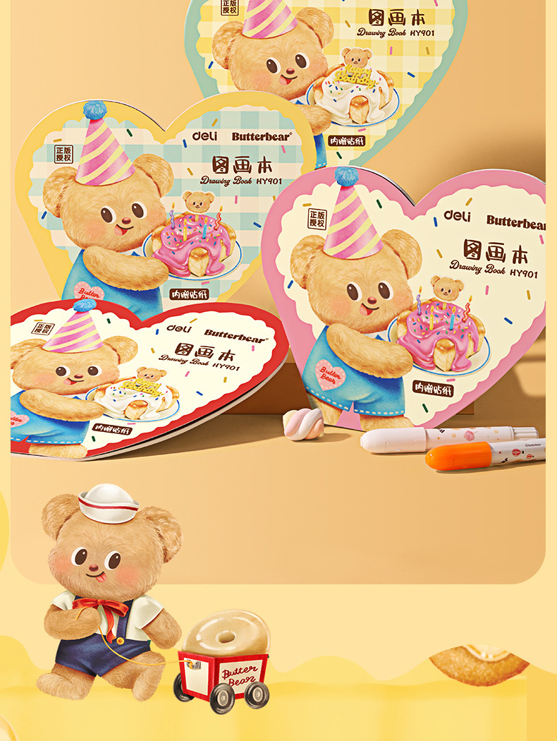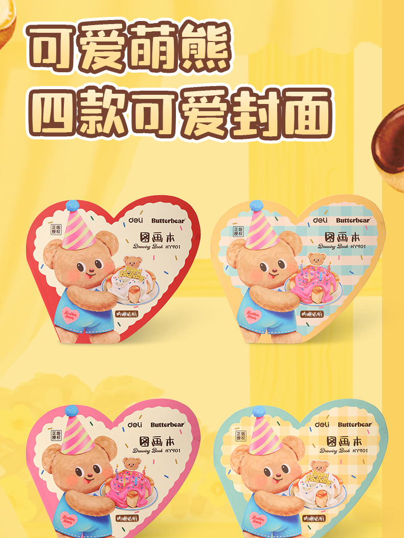 델리 HY901 버터 베어 어린이 그림 벤 그리기 손으로 그린 그림 벤 210*240mm 초등학교 미술 벤스토어 가기