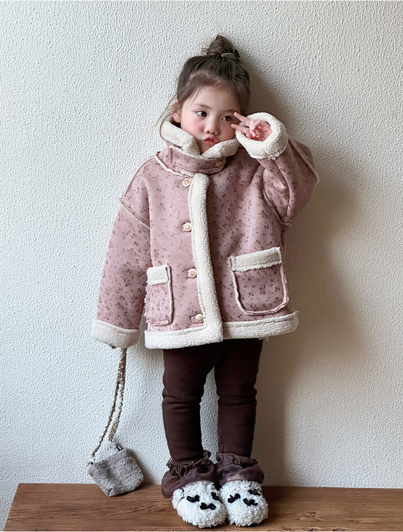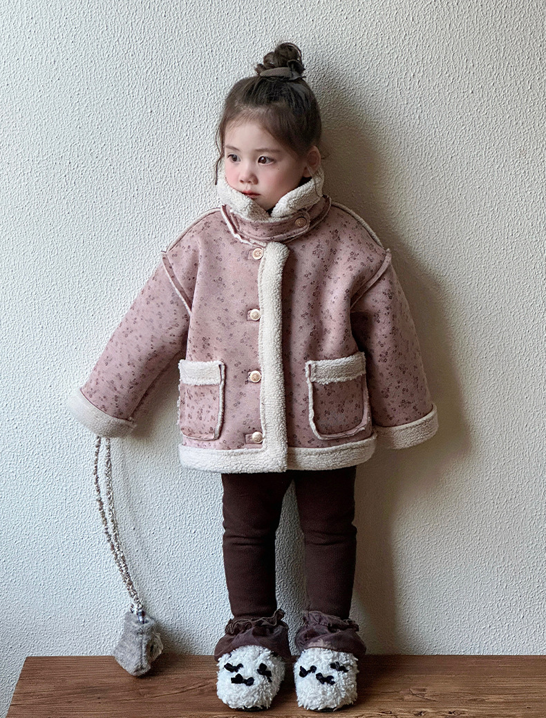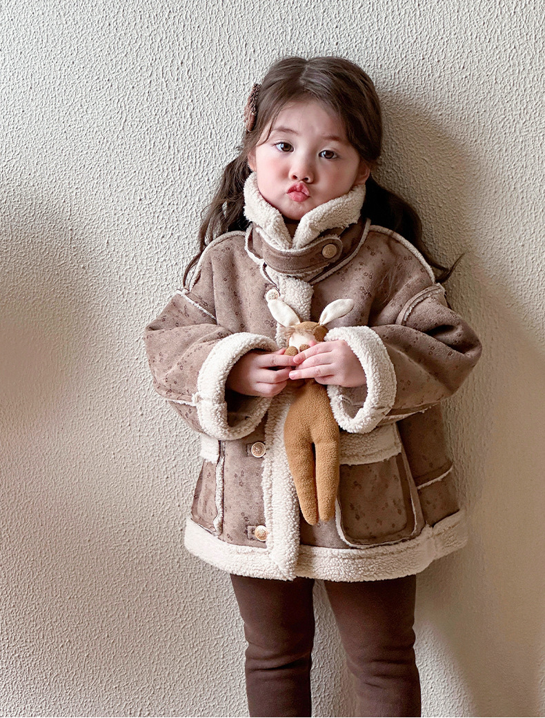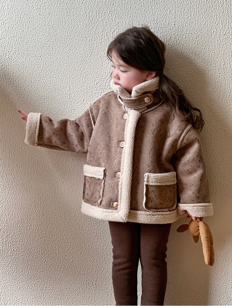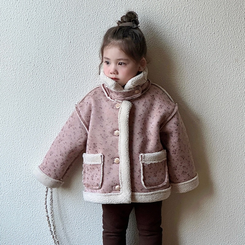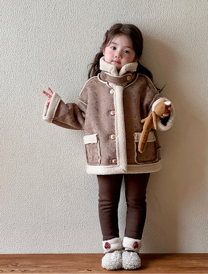 소녀 모피 한 가을 겨울 2024 새로운 어린이 두꺼운 중간 길이의 아기 소녀의 겨울 기모 따뜻한 자켓스토어 가기
