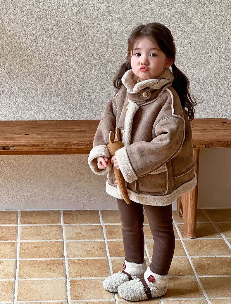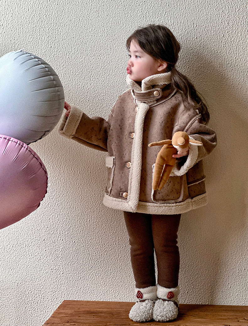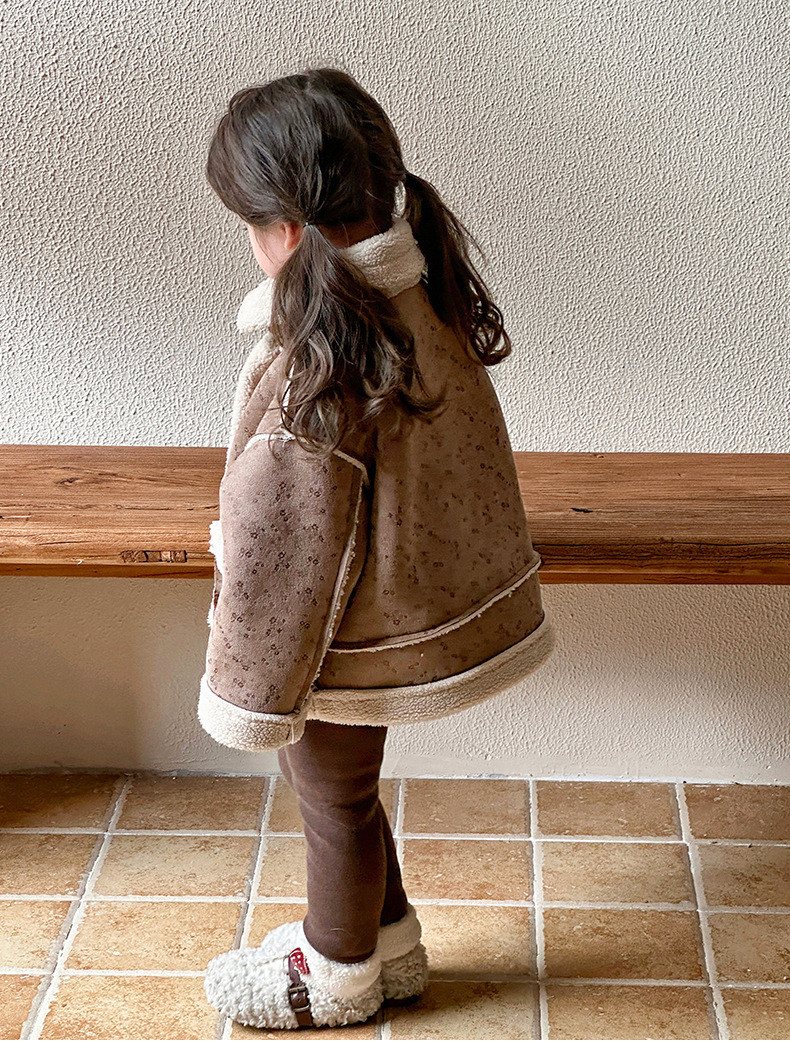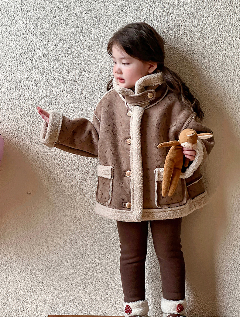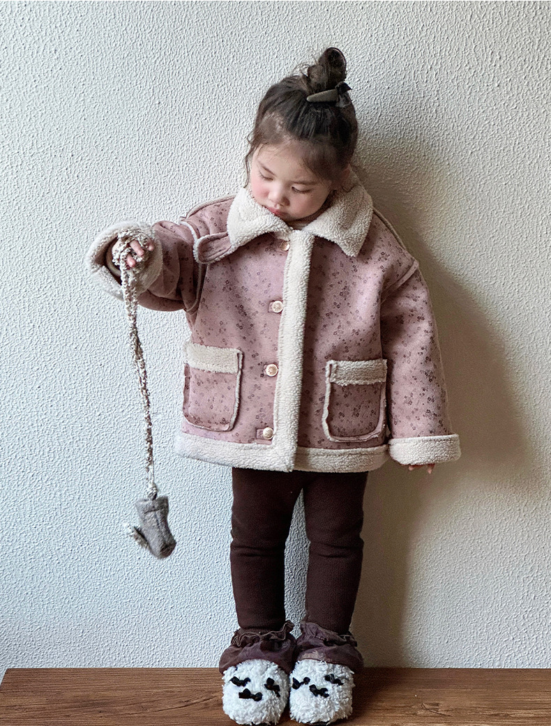 소녀 모피 한 가을 겨울 2024 새로운 어린이 두꺼운 중간 길이의 아기 소녀의 겨울 기모 따뜻한 자켓스토어 가기