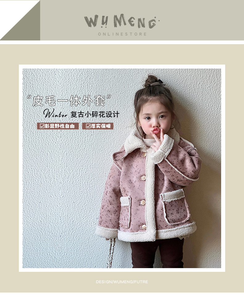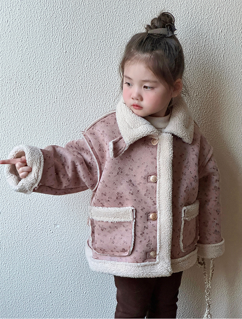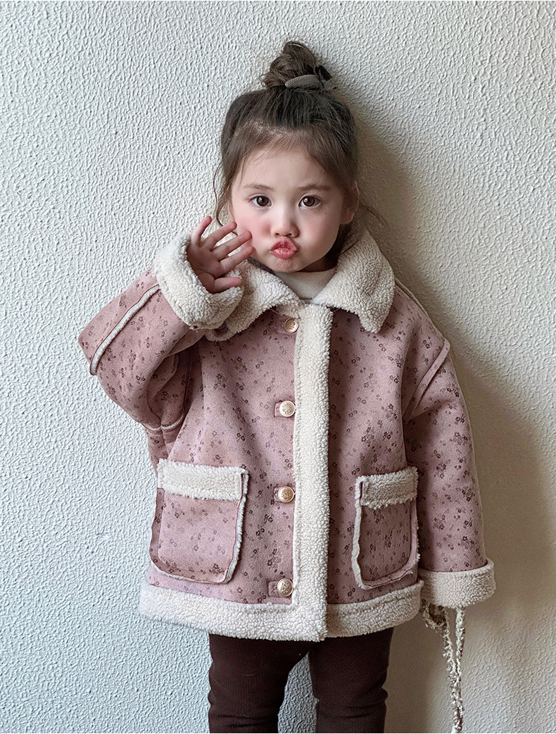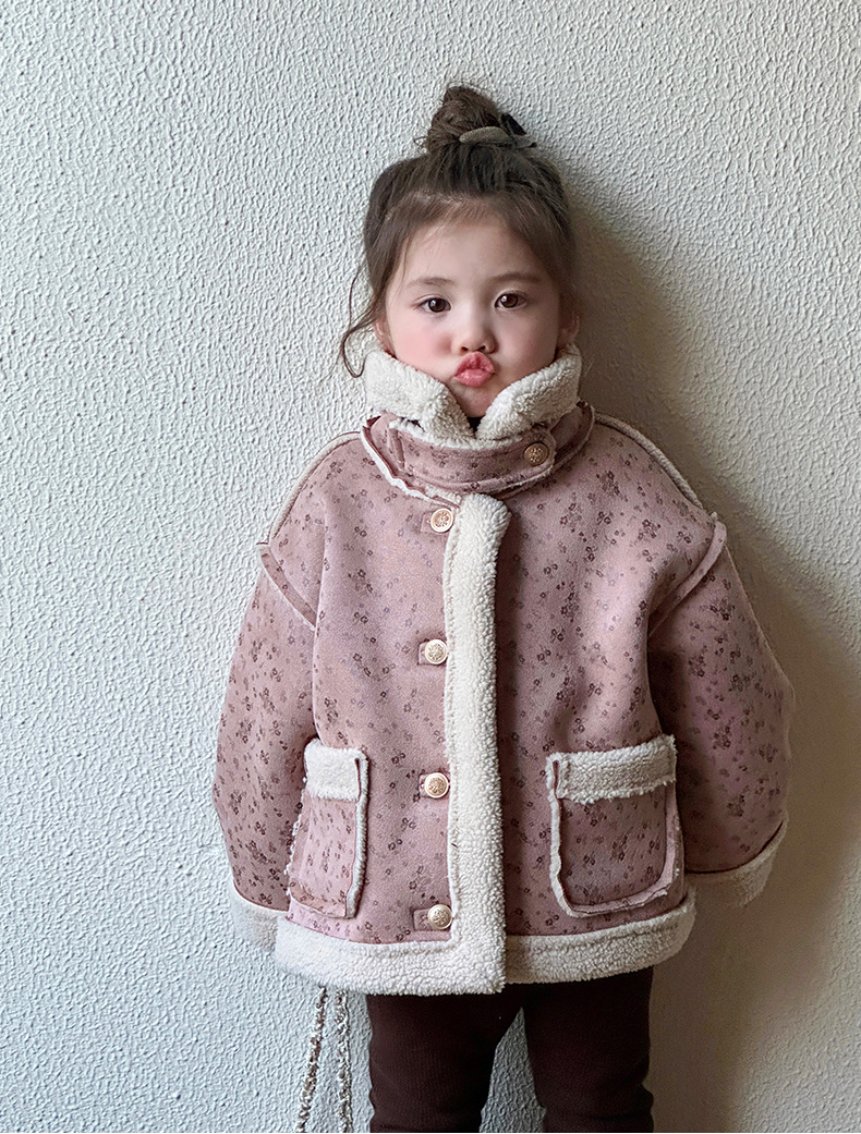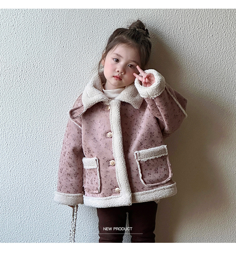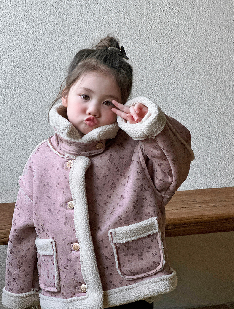 소녀 모피 한 가을 겨울 2024 새로운 어린이 두꺼운 중간 길이의 아기 소녀의 겨울 기모 따뜻한 자켓스토어 가기