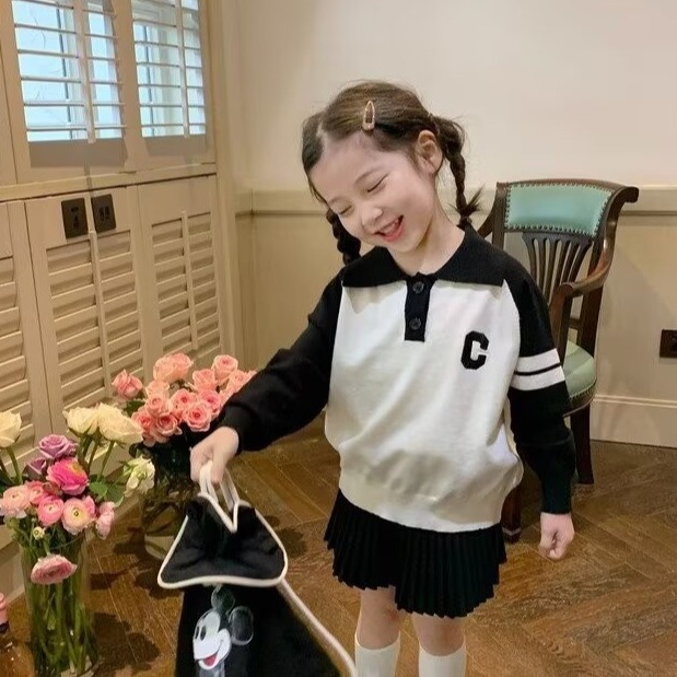 소녀 긴 소매 폴로 셔츠 봄과 가을 2024 새로운 어린이 가을베이스 셔츠 어린 소녀의 가을 니트 탑스토어 가기
