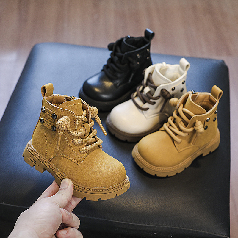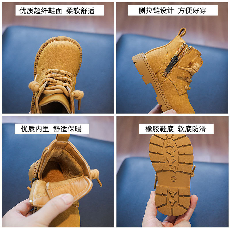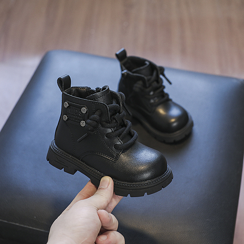 가을과 겨울 영국 스타일 어린이 마틴 부츠 클래식 솔리드 컬러 여성용 부츠 어린이 편안한 부드러운 바닥 소년 사이드 지퍼 가죽 부츠스토어 가기