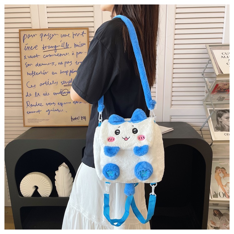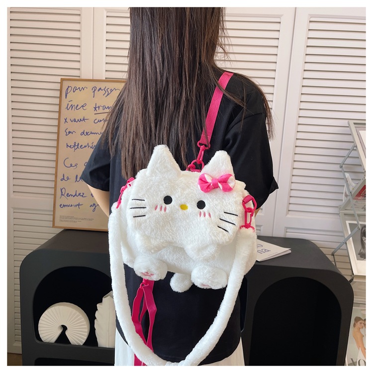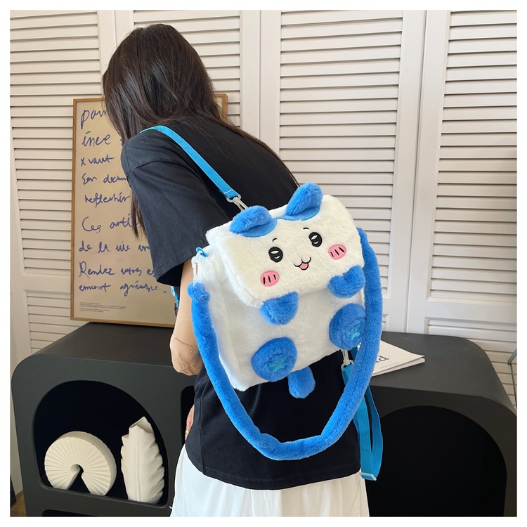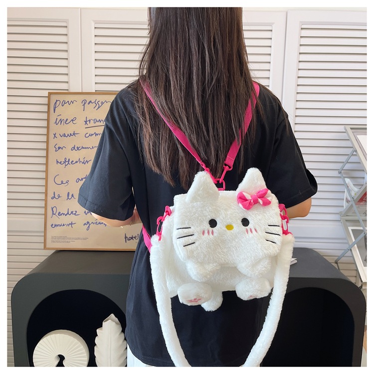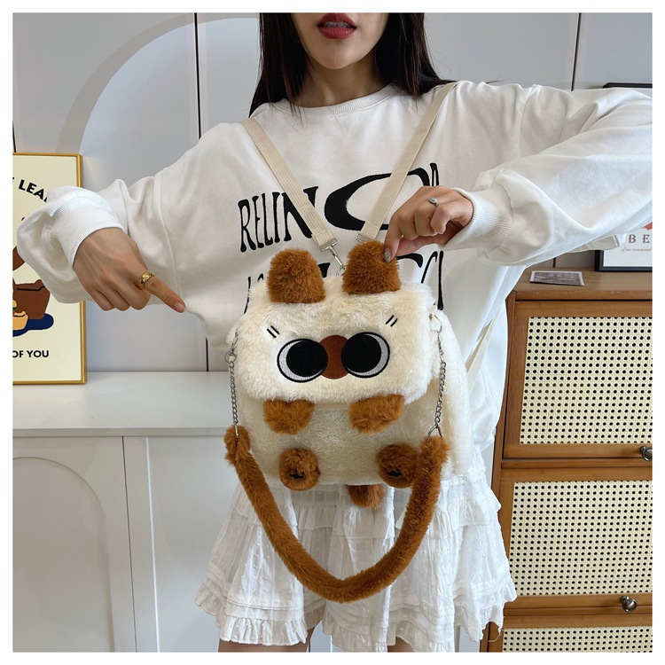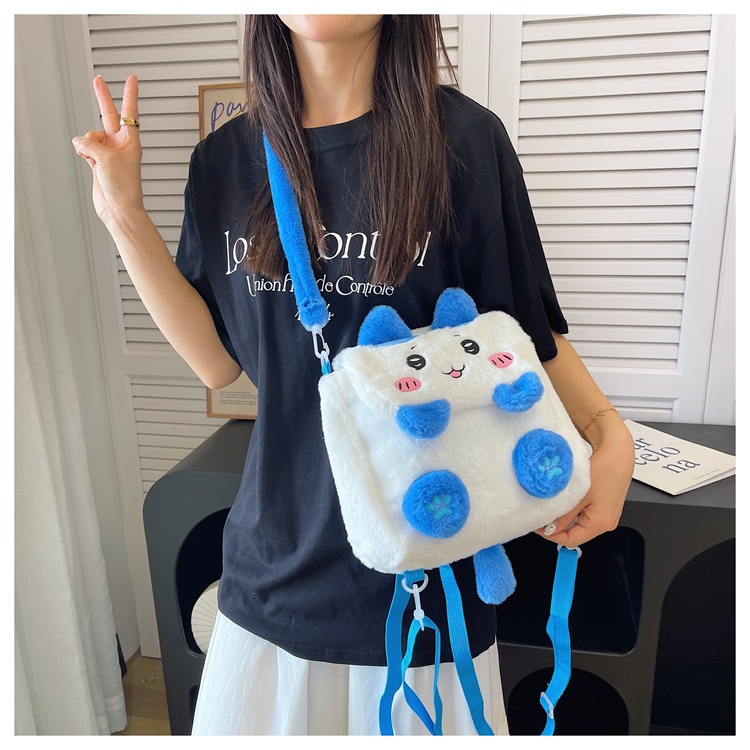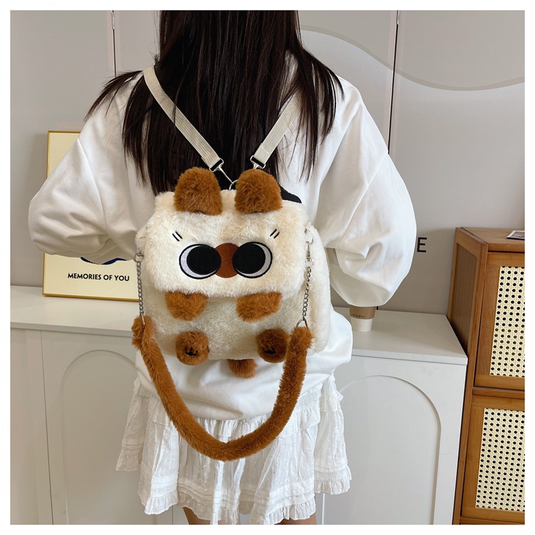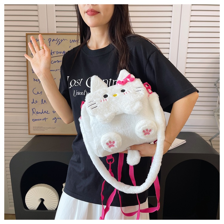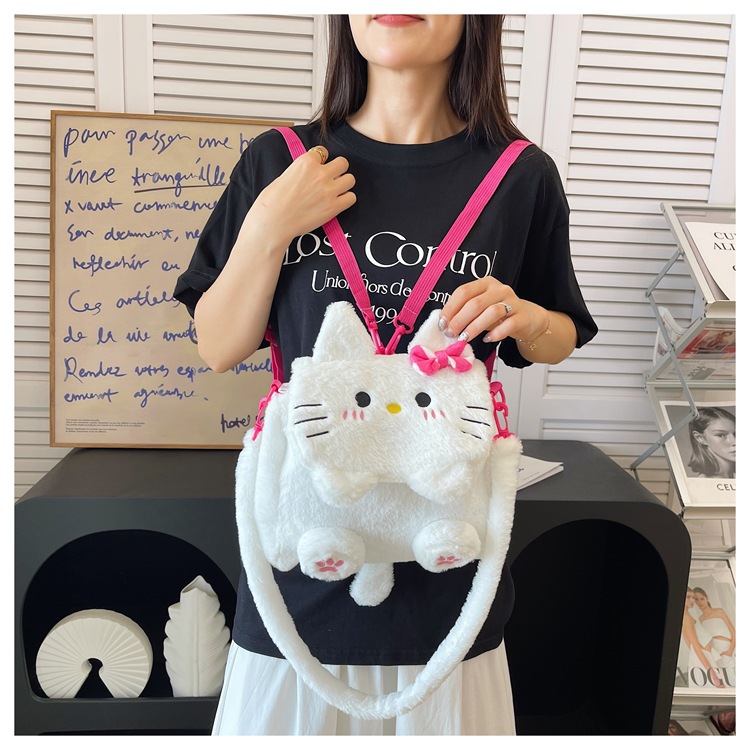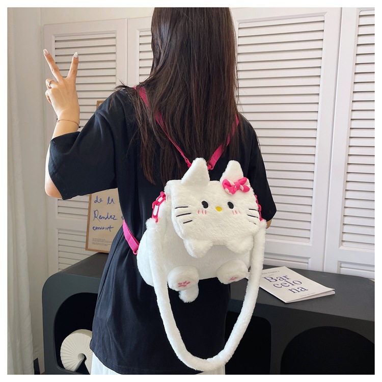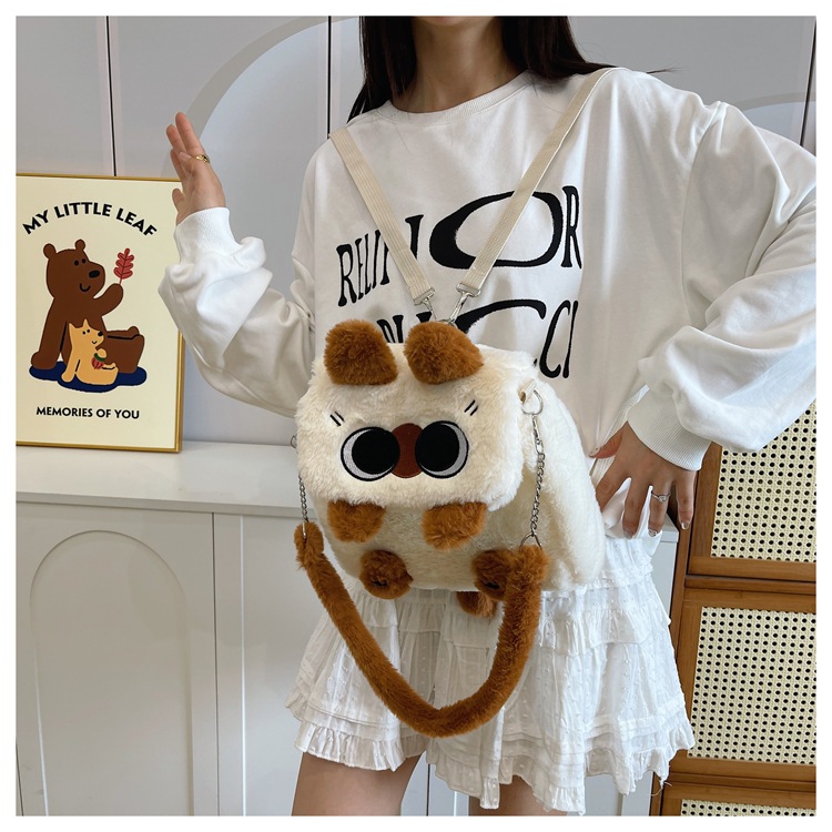 귀여운 작은 콩 고양이 봉제 배낭 2024 새로운 대용량 모든 학생 배낭 통근 만화 크로스 바디 백